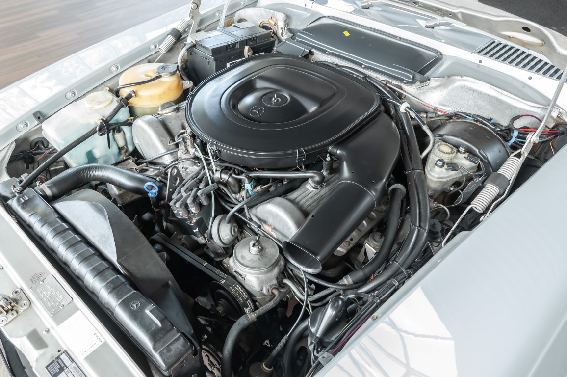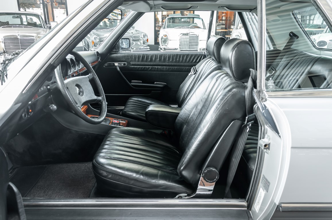 Gemäß der Werks-Datenkarte wurde das in edlem silber-metallic gehaltene Coupé an F. von Thun-Hohenstein in München ausgeliefert. Die Mercedes-Benz SLC-Reihe galt Anfang der 1980er Jahre in den Kreisen der Reichen und Schönen als besonders „in“ und wenn es gar ein Modell mit dem 5.0 Liter V8-Motor war, dann war man schon ganz oben dabei. So verblieb dieser 450SLC 5.0 in der vermögenden Adelsfamilie bis 1986. Sein neues Zuhause fand er in 1986 in den USA. Ein vermögender Kaufmann aus Kalifornien holte das Coupé nach Kalifornien/USA. Ein uns vorliegender Carfax-Ausdruck belegt eindrucksvoll die gemeldeten Kilometerstände von 1992 – 2009, die letztendlich eine Laufleistung von 90.482km dokumentierten. Zu dieser Zeit erwarb den Wagen Robert Schilling aus Menlo Park, einer Gegend neben Palo Alto in der San Francisco Bay Area. In 2013 wurde das Coupé an John P. Matthews in Gelen Ellen, etwa 50 Meilen von San Francisco entfernt, verkauft. John Matthews behielt den Wagen bis wir ihn in 2016 erwarben und nach Deutschland zurückholten.
