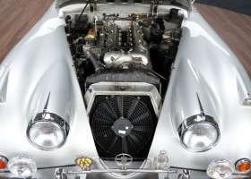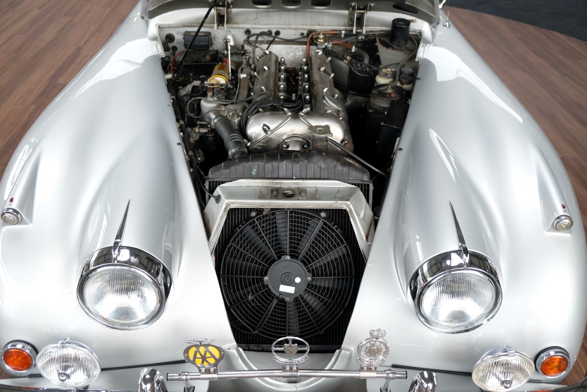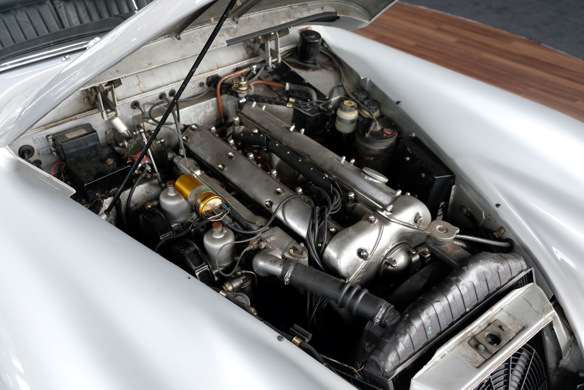 In 1996 wurde der Jaguar von einem deutschen Oldtimer Restaurateur entdeckt, nach Deutschland geholt und einer umfangreichen Überarbeitung unterzogen. In diesem Zug wurde er in elegantem silber-metallic lackiert. Schon bald hatte sich ein neuer Besitzer gefunden. Er setzte den Jaguar für schöne Ausfahrten, Gleichmäßigkeitsrallyes oder auch lange Strecken ein. Er ließ ihn, mittlerweile 22 Jahre in seinem Besitz, regelmäßig warten und instand halten. Das alte Getriebe wurde durch ein angenehm zu schaltendes 5-Gang Getriebe ersetzt, eine Servolenkung sorgt für ein angenehmes Fahren, auch in engen Straßen oder der Stadt. Ein toller „daily driver“ mit etwas Lebensspuren, mit denen man aber gut Leben kann.