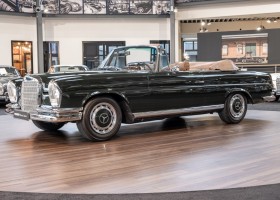Ein sensationelles Fahrzeug ist dieser Mercedes-Benz 250 SE Werkscabriolet. In 1967 an seinen Erstbesitzer ausgeliefert verblieb das Cabriolet bis 2006 in den USA. Ein deutscher Geschäftsmann und Mercedes-Enthusiast erwarb anschließend diesen „Rohdiamanten“ um etwas ganz Besonderes daraus entstehen zu lassen: der Wagen wurde komplett bis auf die Rohkarosse zerlegt und Stück für Stück neu aufgebaut. Ein leistungsstarkes 8-Zylinder-Aggretgat aus der Zeit wurde verbaut und das Getriebe darauf abgestimmt. Die länger übersetzte Hinterachse der zu der Zeit stärksten Limousinenmodells rundete das Kraftpaket entsprechend ab und verrichtet mit erstaunlicher Harmonie seine Arbeit. Mit nur 954 gebauten Einheiten präsentiert sich dieses einmalige Hochkühler-Werkscabriolet in Bestform – mit einem rundum gelungenen Umbau, der selbst eingefleischte Originalitätsliebhaber in seinen Bann ziehen wird.