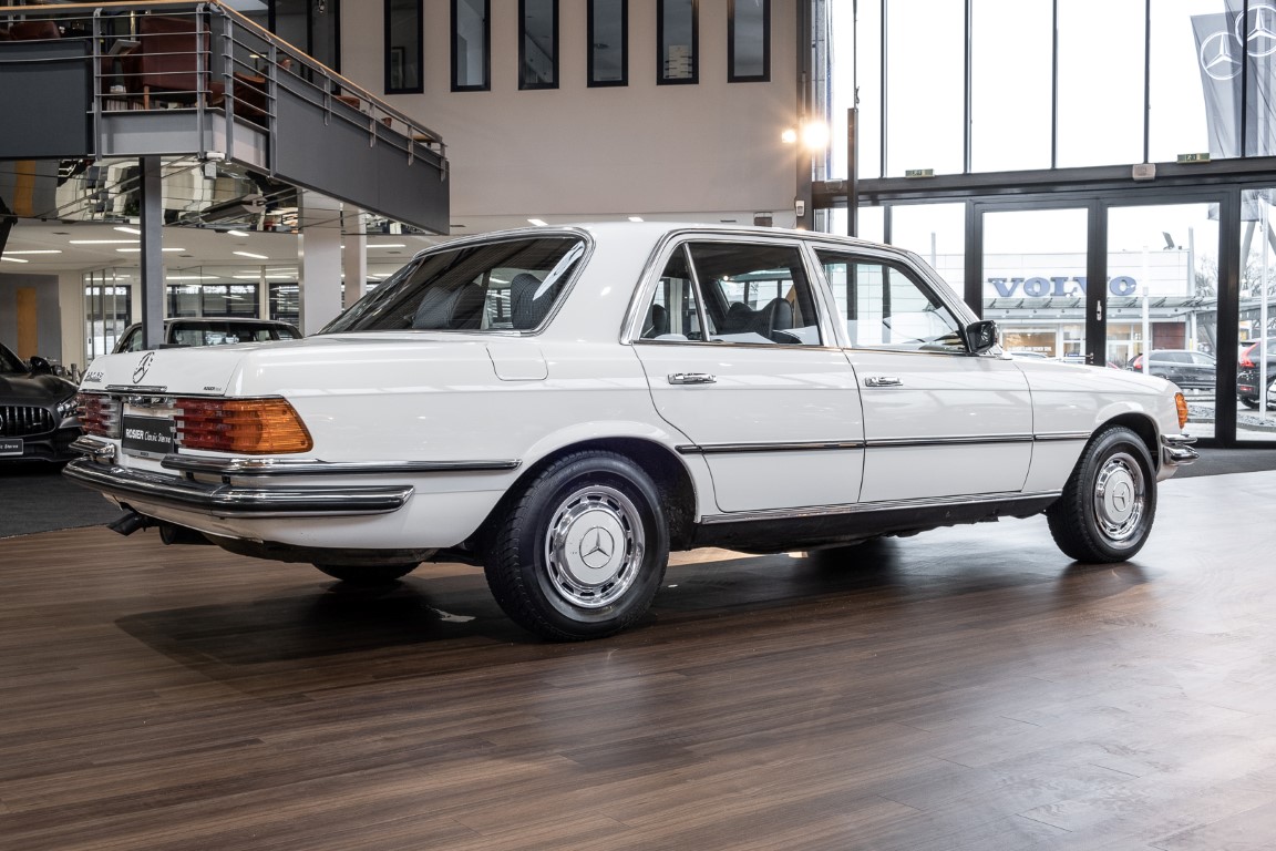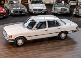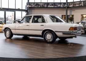 Der von uns angebotene Mercedes-Benz 280SE wurde am 28.09.1979 auf seinen Erstbesitzer in Japan zugelassen. Am 28.11.1980 wurde der Wagen auf seinen 2. Besitzer in Japan eingetragen. Er behielt den Wagen für die nächsten rund 28 Jahre in seinem Besitz. Am 30.04.2008 erwarb die elegante Limousine der bisher erst 3. Besitzer und behielt sie bis 2012. Ein deutscher Liebhaber klassischer Automobile war lange auf der Suche nach einer Mercedes-Benz Limousine aus der Baureihe W116. Sein Wunsch war, ein Fahrzeug mit möglichst geringer Laufleistung und optimalem Zustand zu finden. Bei seiner Suche stieß er auf das hier von uns angebotene Fahrzeug und war begeistert ob seiner Originalität und dem überdurchschnittlich guten Zustand. Er entschloss sich sofort zum Kauf und holte den Wagen zurück in sein Geburtsland, nach Deutschland. Er genoss es, die nächsten 3 Jahre den Wagen hier und da zu bewegen und erfreute sich an seiner Zuverlässigkeit. Sein Perfektionsanspruch war so hoch, dass er zur Zustandsoptimierung noch so manchen Euro in den Wagen investierte. Nun soll ein neuer eventuell offener Klassiker angeschafft und für diese Limousine ein neues liebevolles Zuhause gefunden werden. Ihre Chance auf einen zuverlässigen Alltagsklassiker mit den Fahreigenschaften einer Oberklasse-Limousine. Eben eine echte S-Klasse. Erfahren Sie Komfort und Luxus der 70er-Jahre.