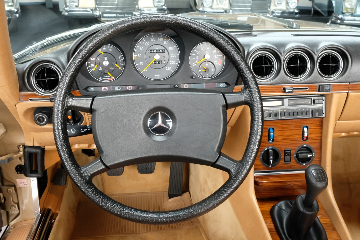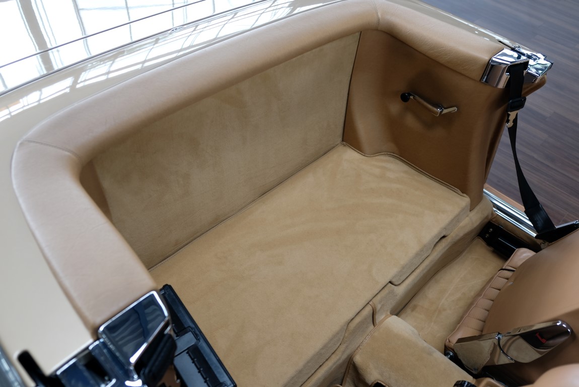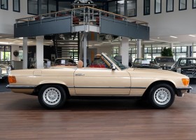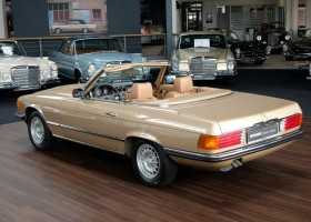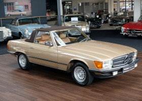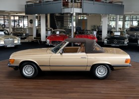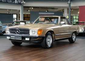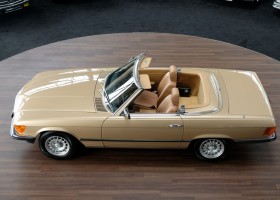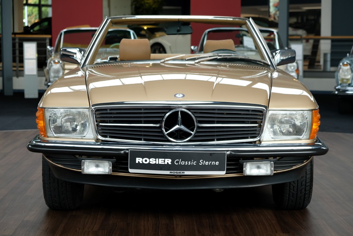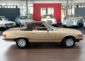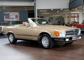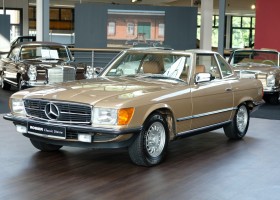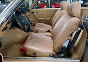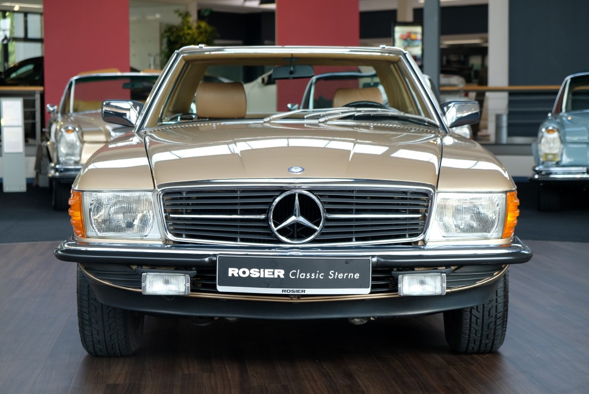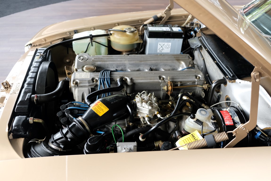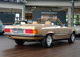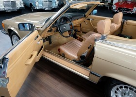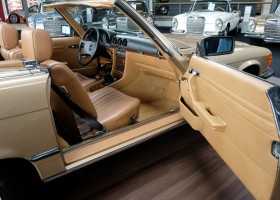 Am 01. Oktober 1981 wurde der elegante Roadster in der damals hochaktuellen Farbe Champagner-metallic ausgeliefert. Er war ausgestattet mit beigem Echtleder, einem 5-Gang Schaltgetriebe und Sitzheizung für Fahrer und Beifahrer. Der Wagen war bestimmt für Wochenendausflüge an sonnigen Tagen. Das herrliche Maintal, in dem der Wagen sein Zuhause hatte, lud förmlich dazu ein. In 2012 kam der Wagen erstmalig in unseren Besitz, er hatte gerade einmal 14.000 km gelaufen. Wir verkauften den Roadster an einen Sammler klassischer Fahrzeuge, der ihn in den Folgejahren ab und an bewegte, um Standschäden zu vermeiden. Heute hat der Wagen gerade einmal 16.200 Originalkilometer gelaufen und befindet sich in sensationellem neuwagenähnlichen Bestzustand.