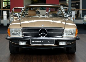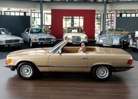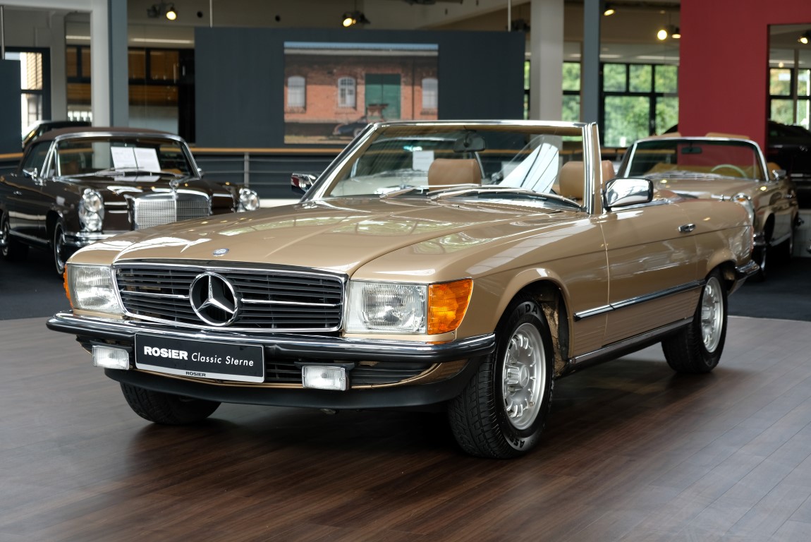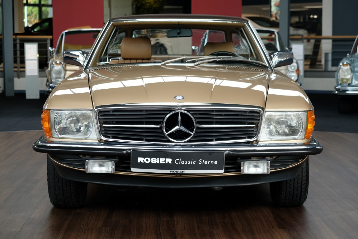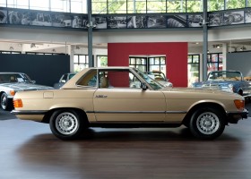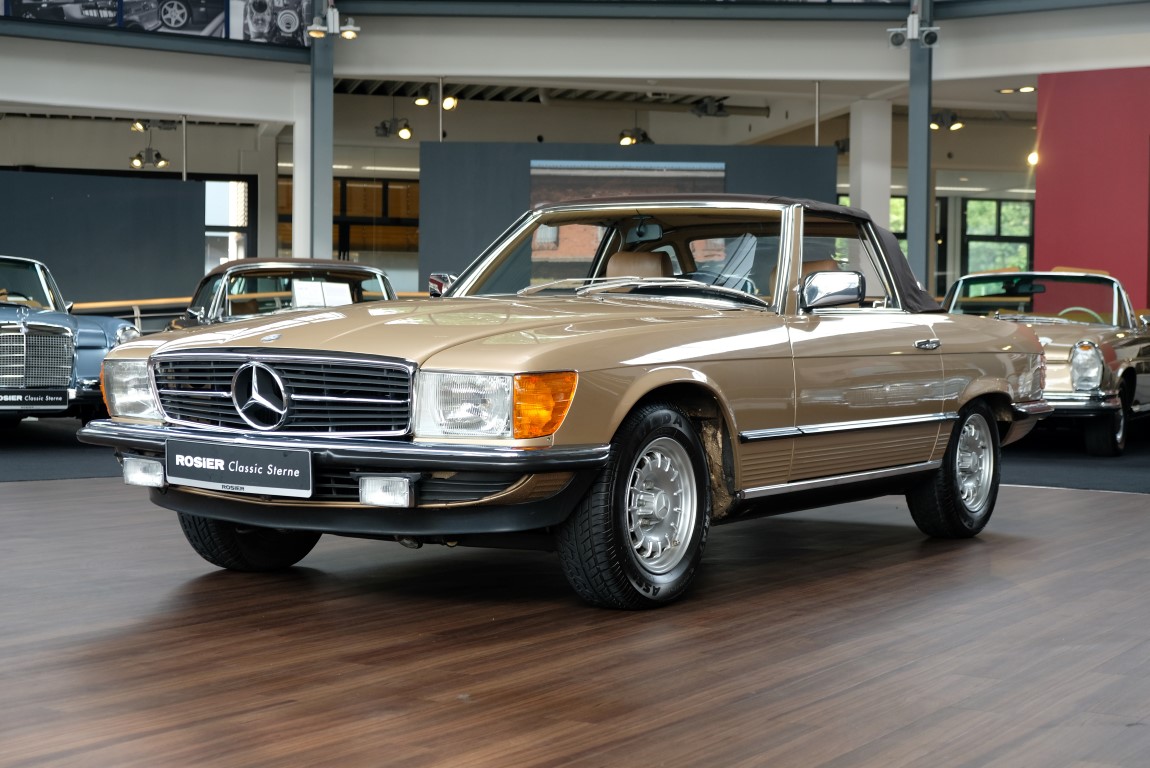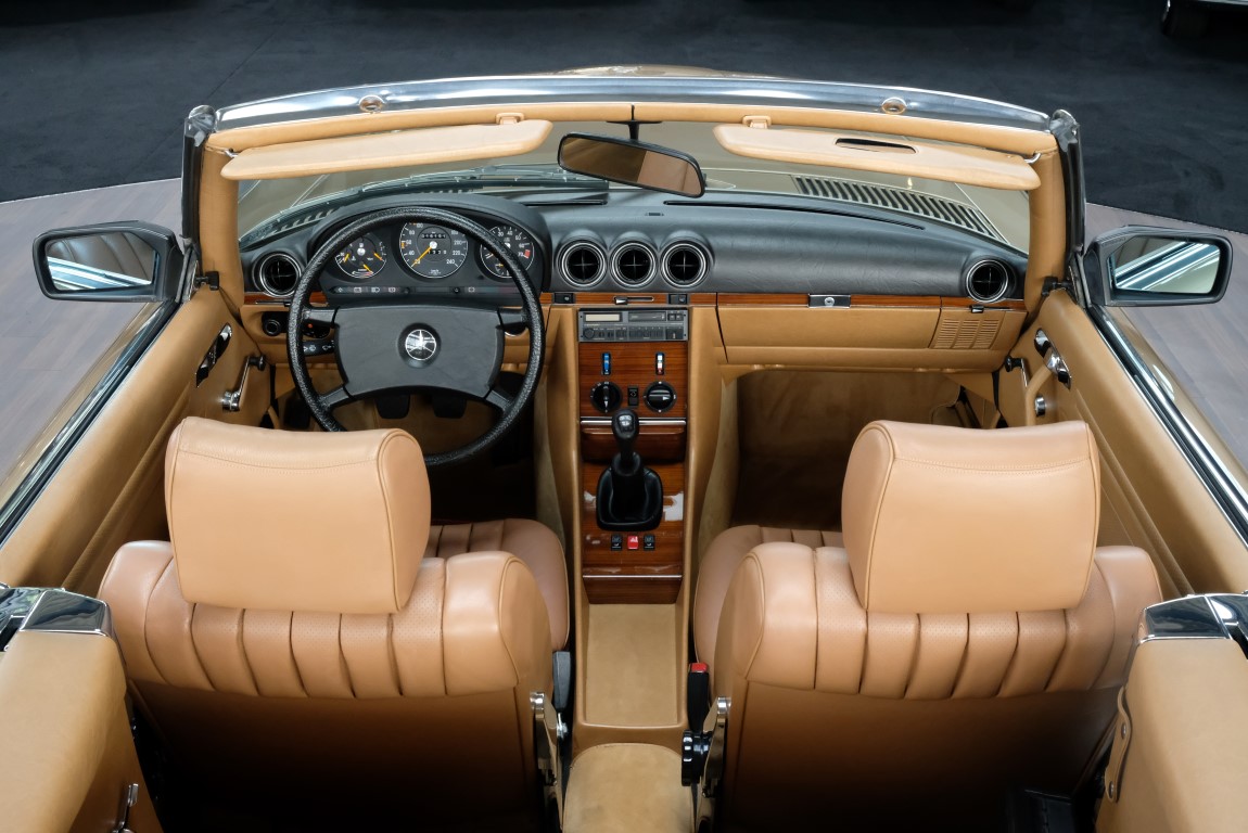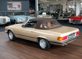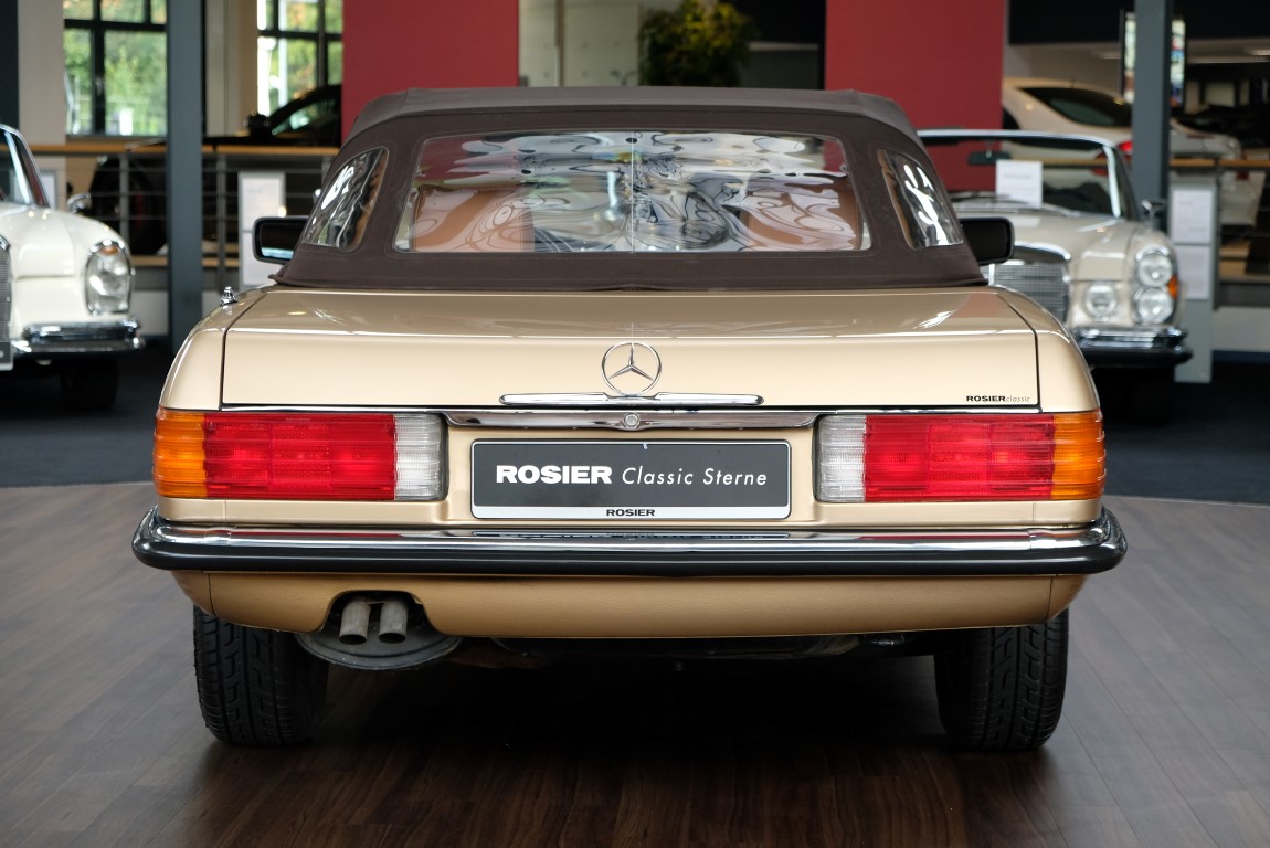 Am 01. Oktober 1981 wurde der elegante Roadster in der damals hochaktuellen Farbe Champagner-metallic ausgeliefert. Er war ausgestattet mit beigem Echtleder, einem 5-Gang Schaltgetriebe und Sitzheizung für Fahrer und Beifahrer. Der Wagen war bestimmt für Wochenendausflüge an sonnigen Tagen. Das herrliche Maintal, in dem der Wagen sein Zuhause hatte, lud förmlich dazu ein. In 2012 kam der Wagen erstmalig in unseren Besitz, er hatte gerade einmal 14.000 km gelaufen. Wir verkauften den Roadster an einen Sammler klassischer Fahrzeuge, der ihn in den Folgejahren ab und an bewegte, um Standschäden zu vermeiden. Heute hat der Wagen gerade einmal 16.200 Originalkilometer gelaufen und befindet sich in sensationellem neuwagenähnlichen Bestzustand.