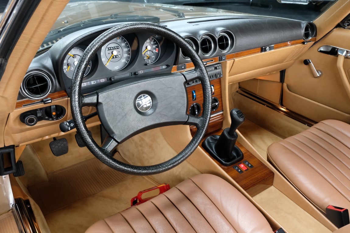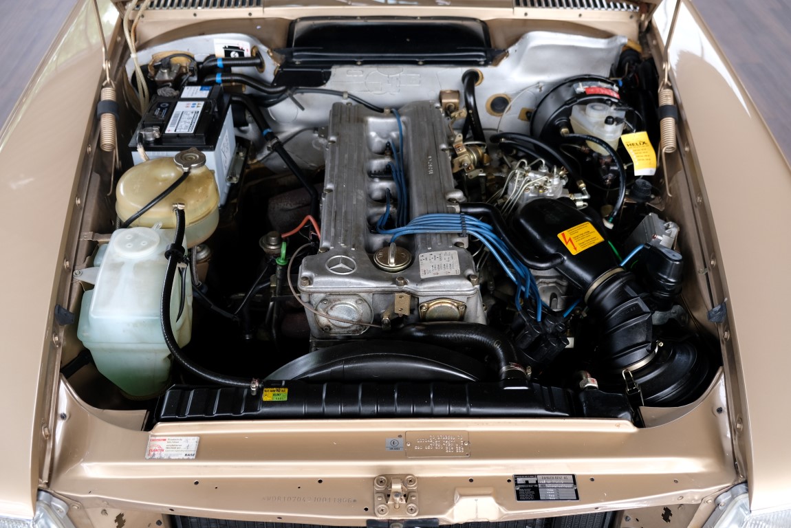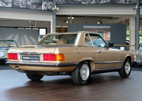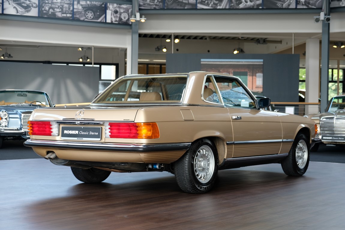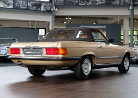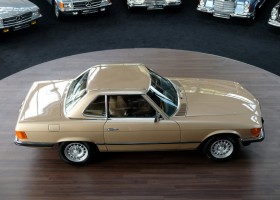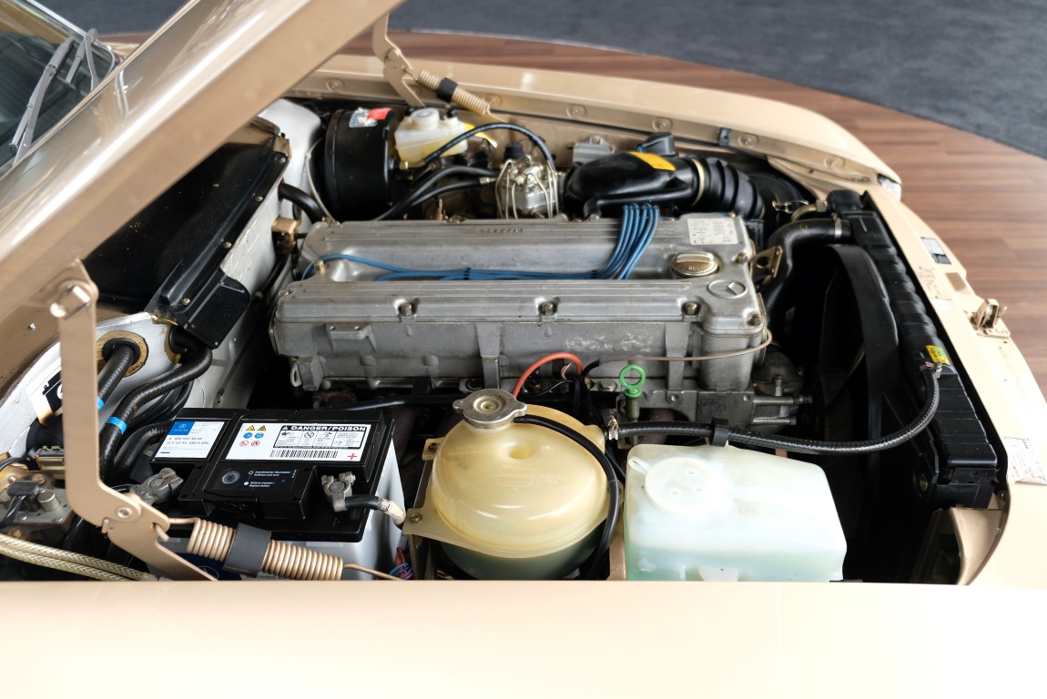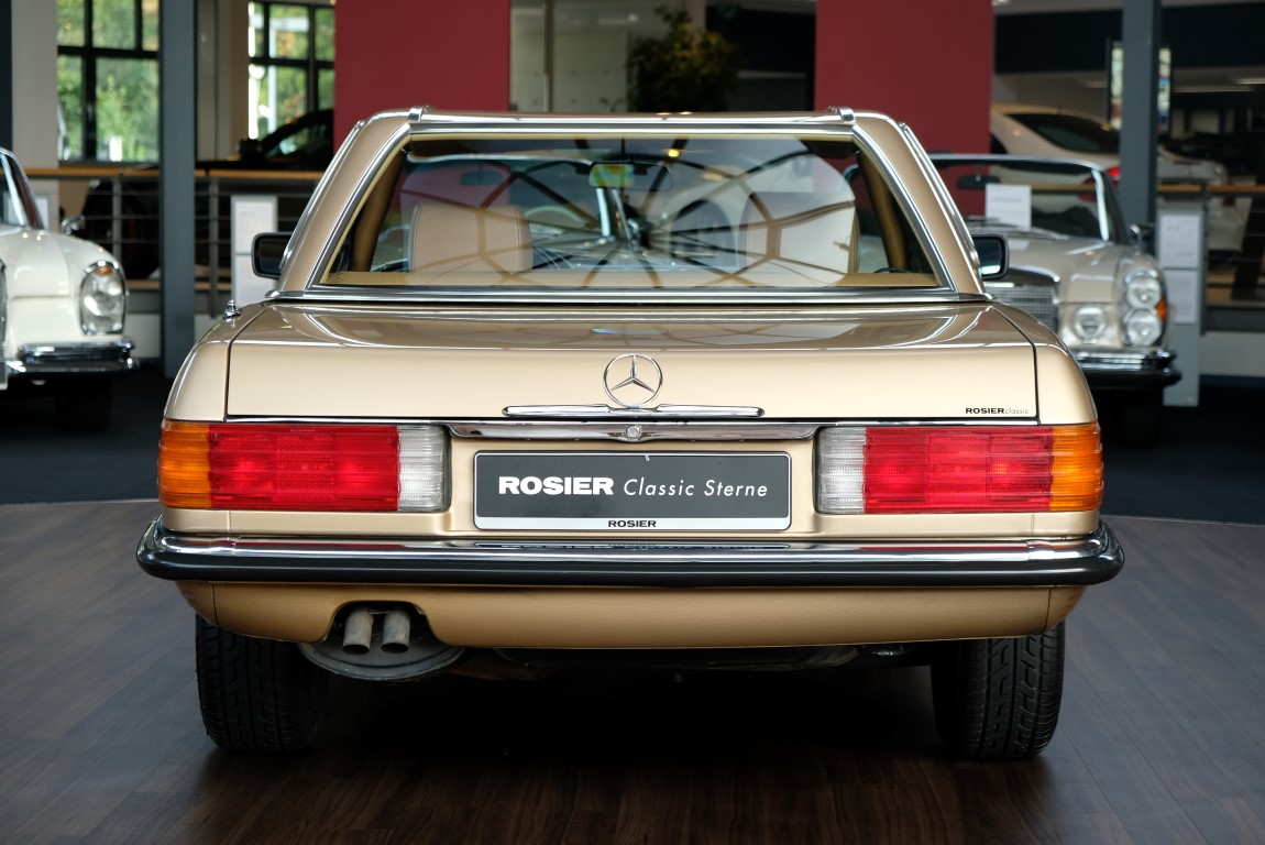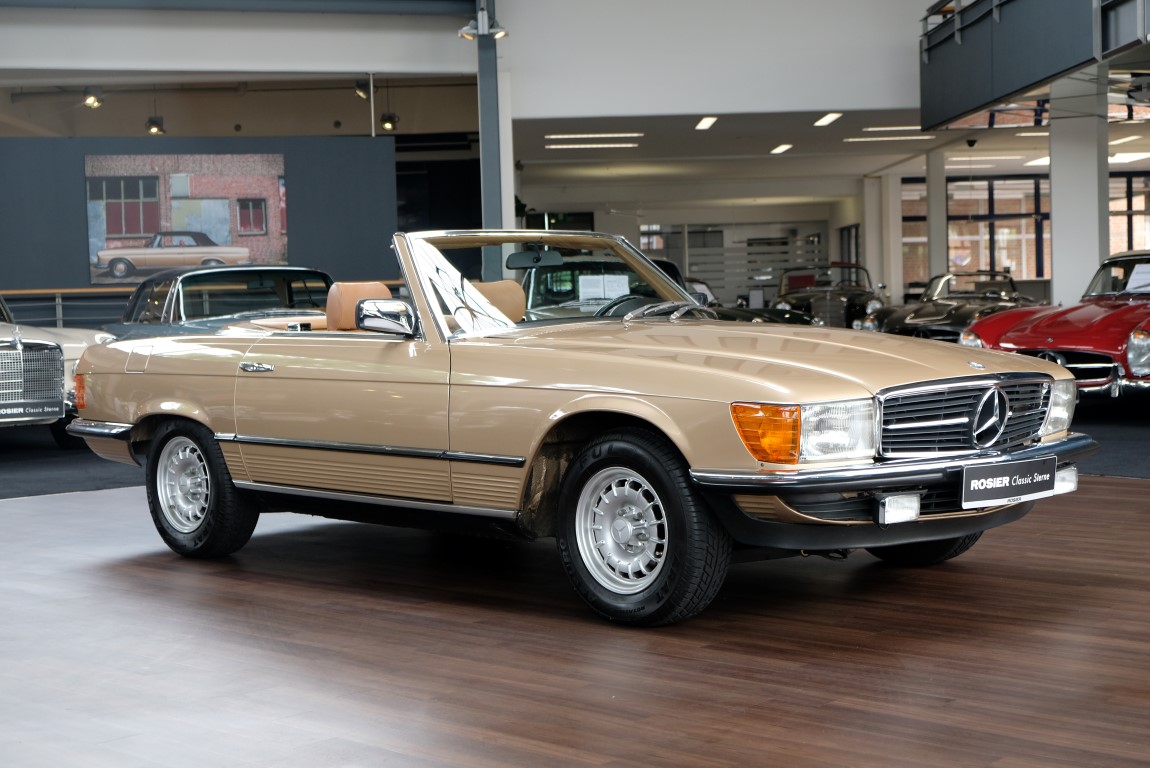 Am 01. Oktober 1981 wurde der elegante Roadster in der damals hochaktuellen Farbe Champagner-metallic ausgeliefert. Er war ausgestattet mit beigem Echtleder, einem 5-Gang Schaltgetriebe und Sitzheizung für Fahrer und Beifahrer. Der Wagen war bestimmt für Wochenendausflüge an sonnigen Tagen. Das herrliche Maintal, in dem der Wagen sein Zuhause hatte, lud förmlich dazu ein. In 2012 kam der Wagen erstmalig in unseren Besitz, er hatte gerade einmal 14.000 km gelaufen. Wir verkauften den Roadster an einen Sammler klassischer Fahrzeuge, der ihn in den Folgejahren ab und an bewegte, um Standschäden zu vermeiden. Heute hat der Wagen gerade einmal 16.200 Originalkilometer gelaufen und befindet sich in sensationellem neuwagenähnlichen Bestzustand.