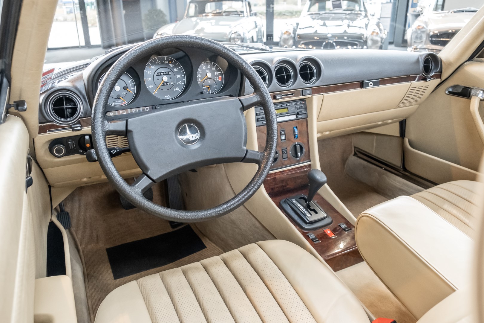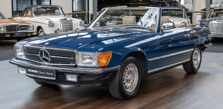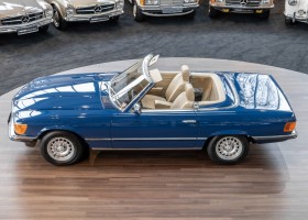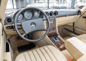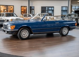 Eine absolute Sensation hält dieser 280 SL der Baureihe 107 aus dem Jahre 1983 für Sie bereit: originale 8.150 km und nur zwei Vorbesitzer! Das Fahrzeug präsentiert sich im absoluten Ausnahmezustand und kann mit gutem Gewissen der Jahreswagenzustand attestiert werden. Optisch und technisch ist der Zustand makellos – fast als habe das Fahrzeug die letzten 37 Jahre in einer Zeitkapsel verbracht. Der alte Fahrzeugbrief, die Fahrzeugrechnung, die Bedienungsanleitung und das Serviceheft. Selbst der damalige Prospekt sowie Sonderausstattungslisten sind vorhanden und befinden sich in ähnlich tollem Zustand wie das Fahrzeug selbst.