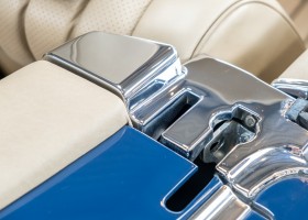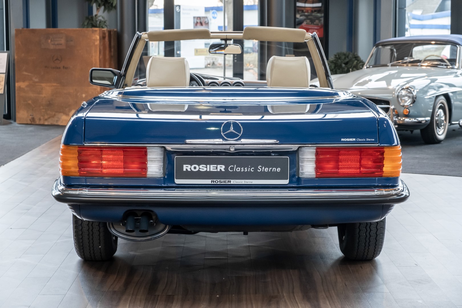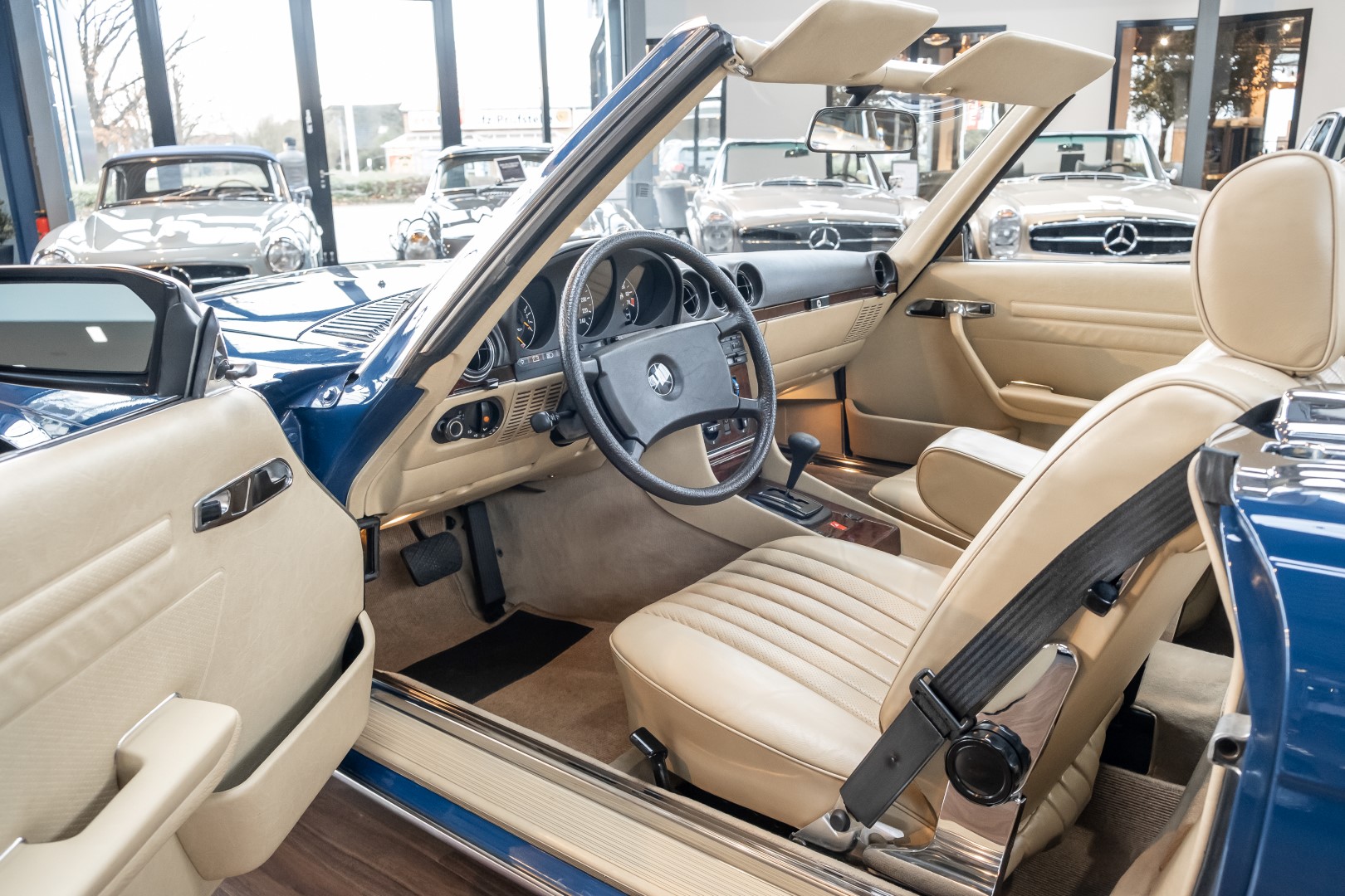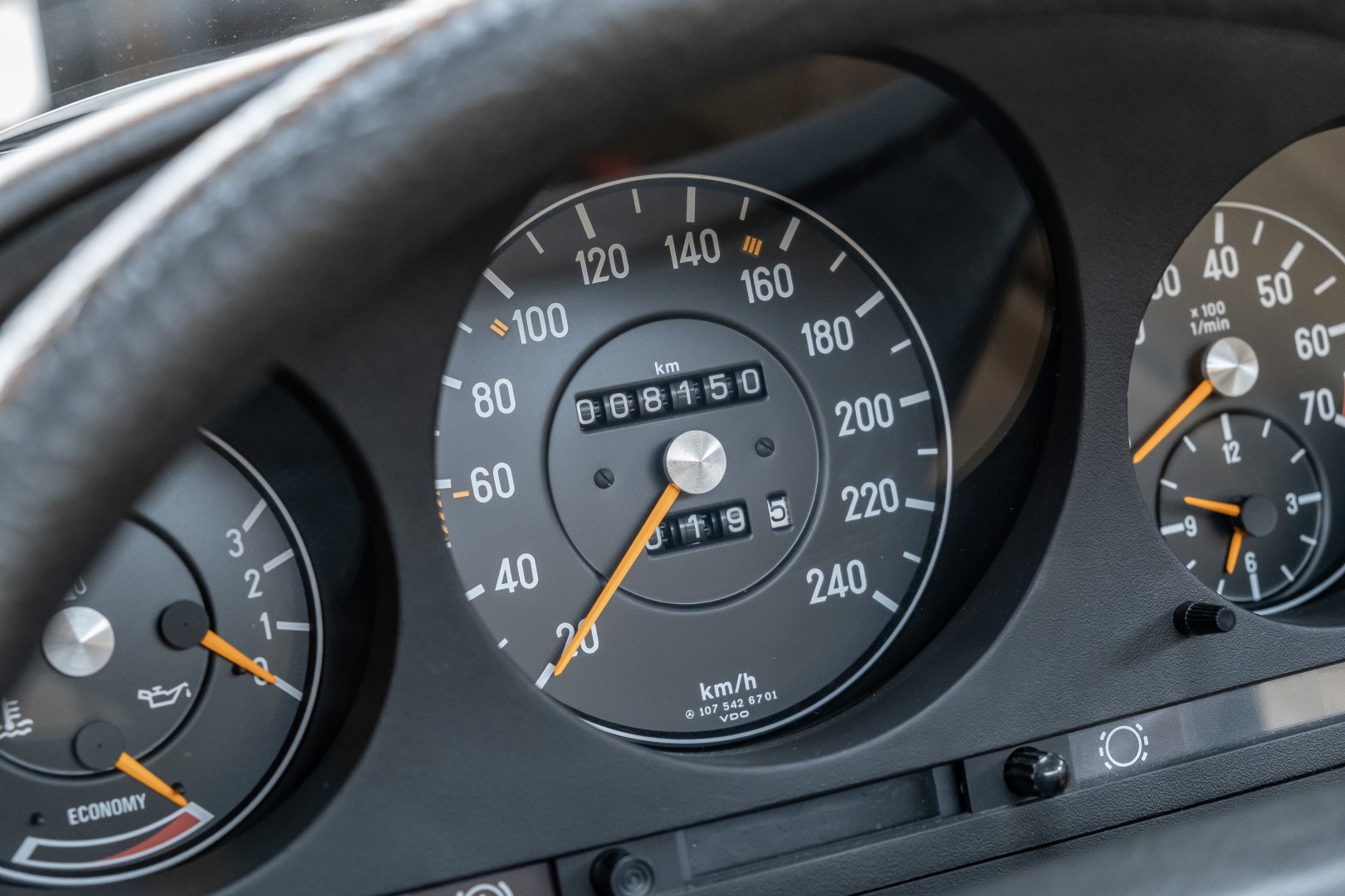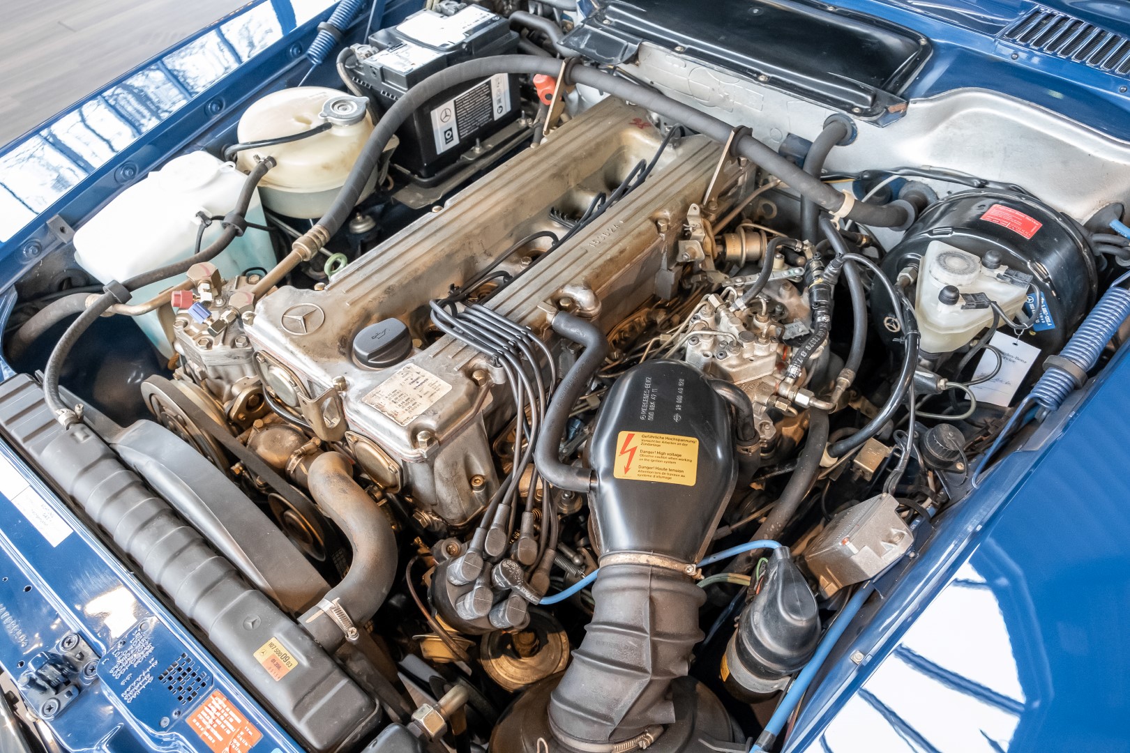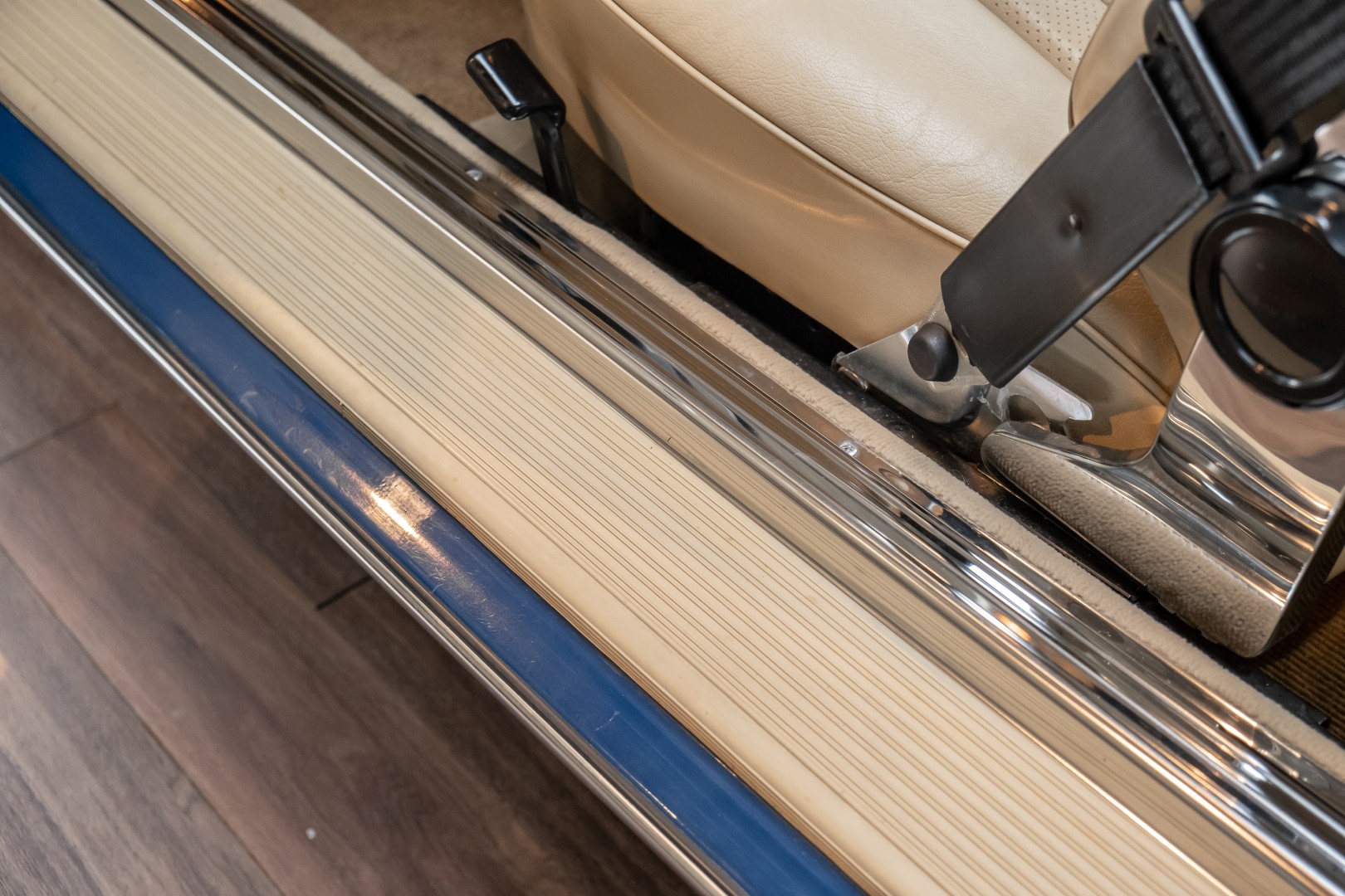 Stolze 62.708,21 DM bezahlte der damalige Besteller – ein erfolgreicher Händler für Landmaschinen und -teile aus Bonn – für den Roadster-Traum in Surfblau (900. Die Liste der Zusatzausstattungen war vergleichsweise lang: Lederausstattung in Creme (255), Automatikgetriebe, Mittelarmlehne, Klimaanlage, elektrische Fensterheber und Leichtmetallräder verliehen dem Roadster das gewisse Etwas und die ganz eigene Note des Besitzers. Das Kassettenradio Becker Grand Prix war ebenfalls mit an Bord. Natürlich sind auch hier alle Unterlagen vorhanden: von der Bedienungsanleitung über die Demonstrations-Kassette bis hin zum Garantie-Scheckheft und den original Tonkopf-Reinigungsstäbchen!