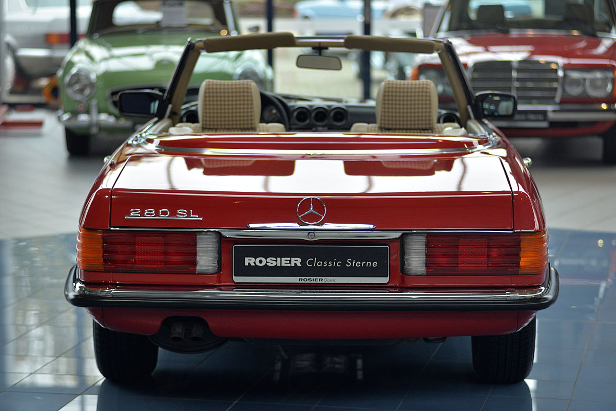 Ein Mercedes-Benz 280SL Roadster (R107) in einem Zustand, von dem man mit Stolz sagen möchte: „Er ist wie neu“.