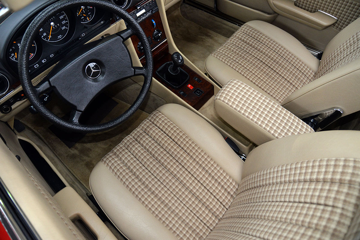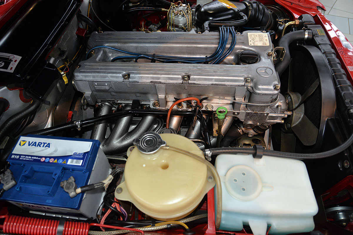 Der Wagen wurde am 17.04.1985 an einen erfolgreichen Handwerksbetrieb an der malerischen Bergstraße ausgeliefert. Ein Jahr später, im März 1986, wurde er in den Odenwaldkreis verkauft und wurde am 31.07.1986 mit gerade einmal 10.000 km von seinem bis heute letzten Besitzer in seine Sammlung übernommen. In seinem Besitz war der Wagen die nächsten 31 Jahre, wurde bestens gepflegt und nur bei schönem Wetter gefahren. Nun konnten wir den Wagen erwerben. Ein Ausnahmefahrzeug, wie es auf dem Markt kaum zu bekommen ist, mit originalen 31.500km. Kenner wissen, dass der als sehr langlebig geltende 280SL mit 5-Gang Schaltgetriebe exzellente Fahrleistungen bietet und enormen Fahrspaß garantiert.