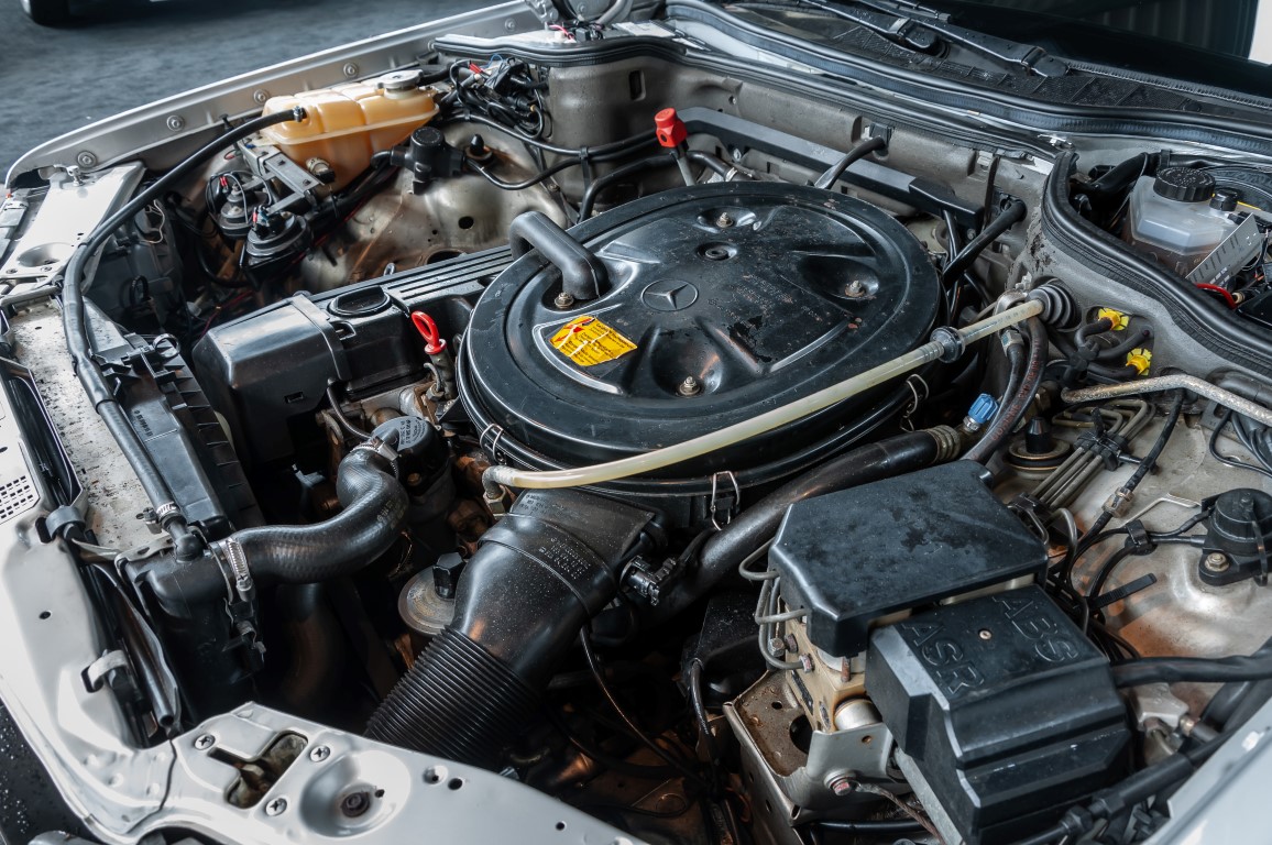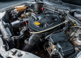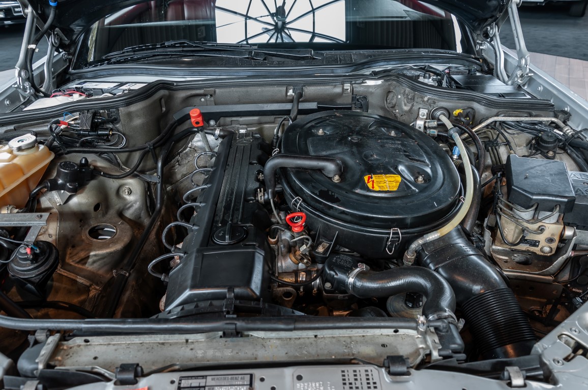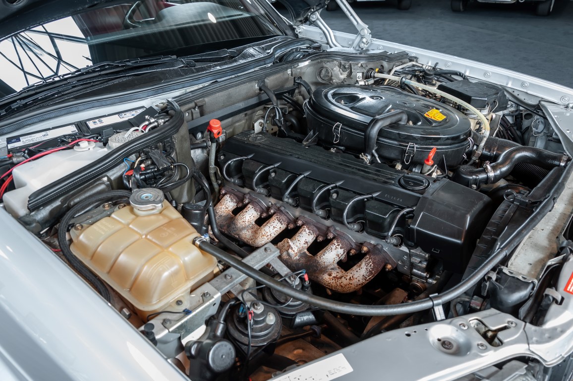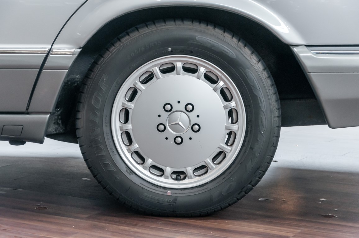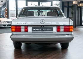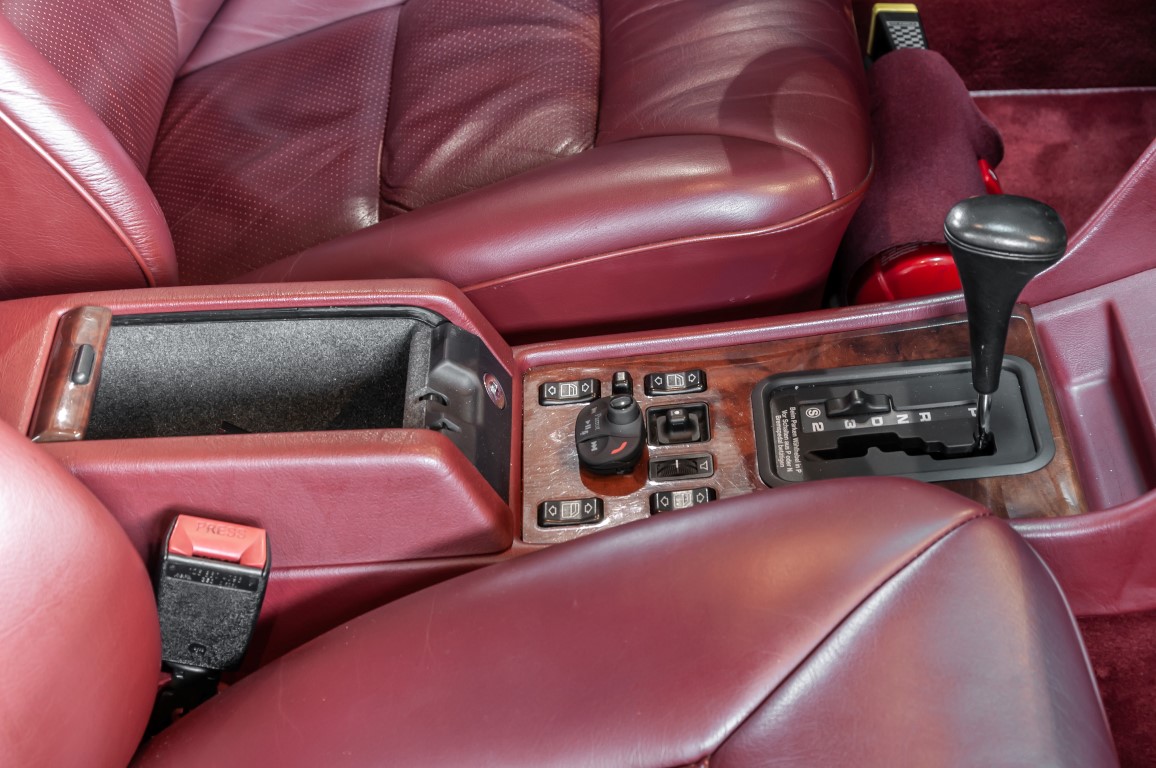Die Ausstattung des als Langversion gebauten Fahrzeugs war umfangreich. So gehörte z.B. eine Antischlupfregelung (ASR) ebenso zum Lieferumfang wie eine Klimatisierungsautomatik, Holzausführung in edlem Wurzelnuss, elektrisch verstellbare Vordersitze, ein hochwertiges Becker Radio und Fußstützen im Fond. Die Farbgebung (735) astralsilber-metallic in Verbindung mit Lederausstattung in (267) Mittelrot wirkt edel und freundlich zugleich. Der Wagen blieb all die Jahre im hohen Norden Deutschlands und gehörte nach seinem Erstbesitzer einem in der gleichen Gegend wohnenden Apotheker Ehepaar und wurde in 2012 Bestandteil einer Sammlung edler Fahrzeuge am gleichen Ort. Aufgrund einer Verkleinerung der Sammlung kam nun der Wagen in unseren Besitz.
