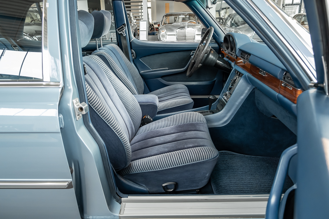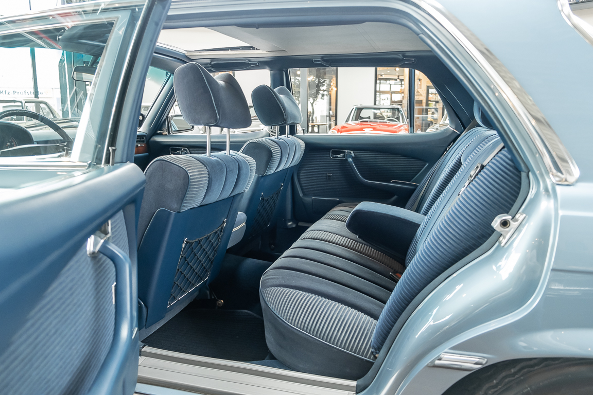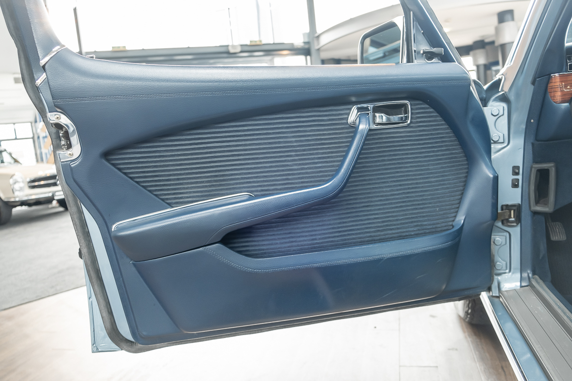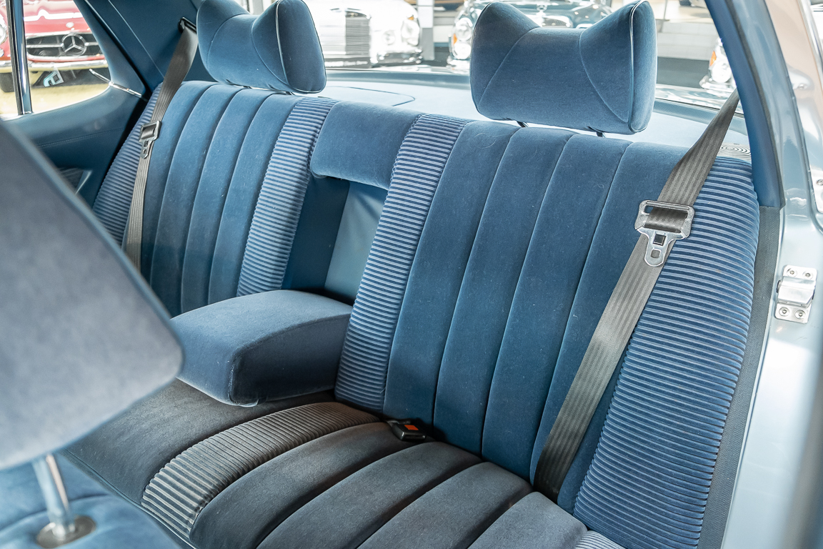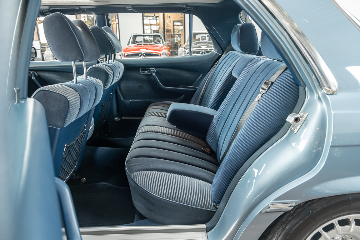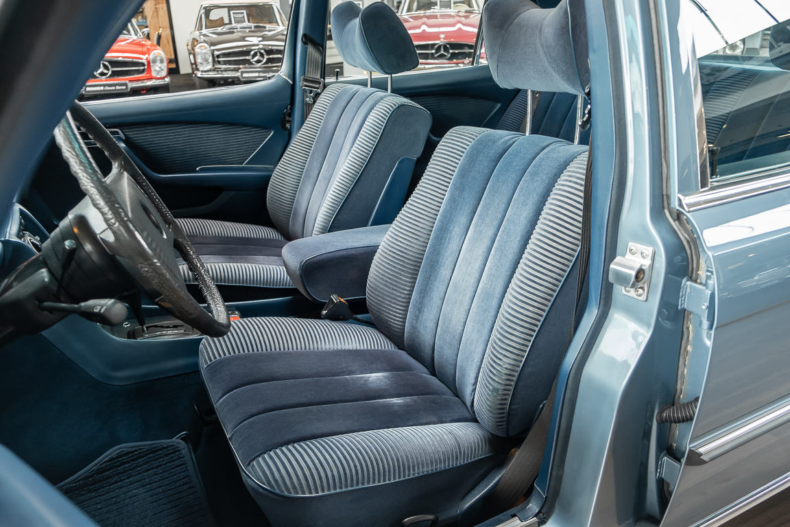Als repräsentatives Luxusgefährt sorgte dieser 450 SEL 6.9 in den späten 1970er Jahren bis in die 1980er sicherlich für viel Aufsehen – auch wegen der tollen Farbgebung in Graublau Metallic. Mit einer Sensationellen Laufleistung von etwas über 130.000 km präsentiert sich das Fahrzeug von seiner allerbesten Seite und zeugt von seltener Benutzung und bester Wartung. Auch der Innenraum zeugt von bester Pflege. Die seltene Velours-Ausstattung ist unbeschädigt und lädt zum verweilen ein. Ein seltenschöner 6.9er, den Sie sich nicht entgehen lassen sollten.