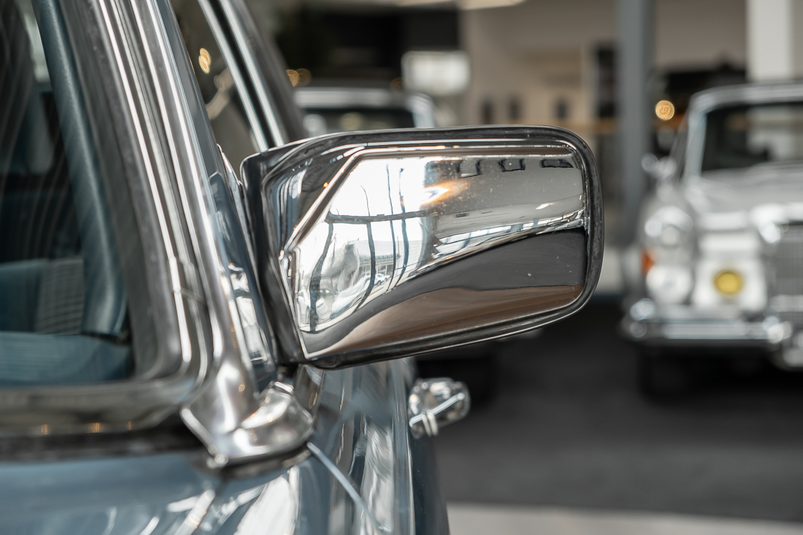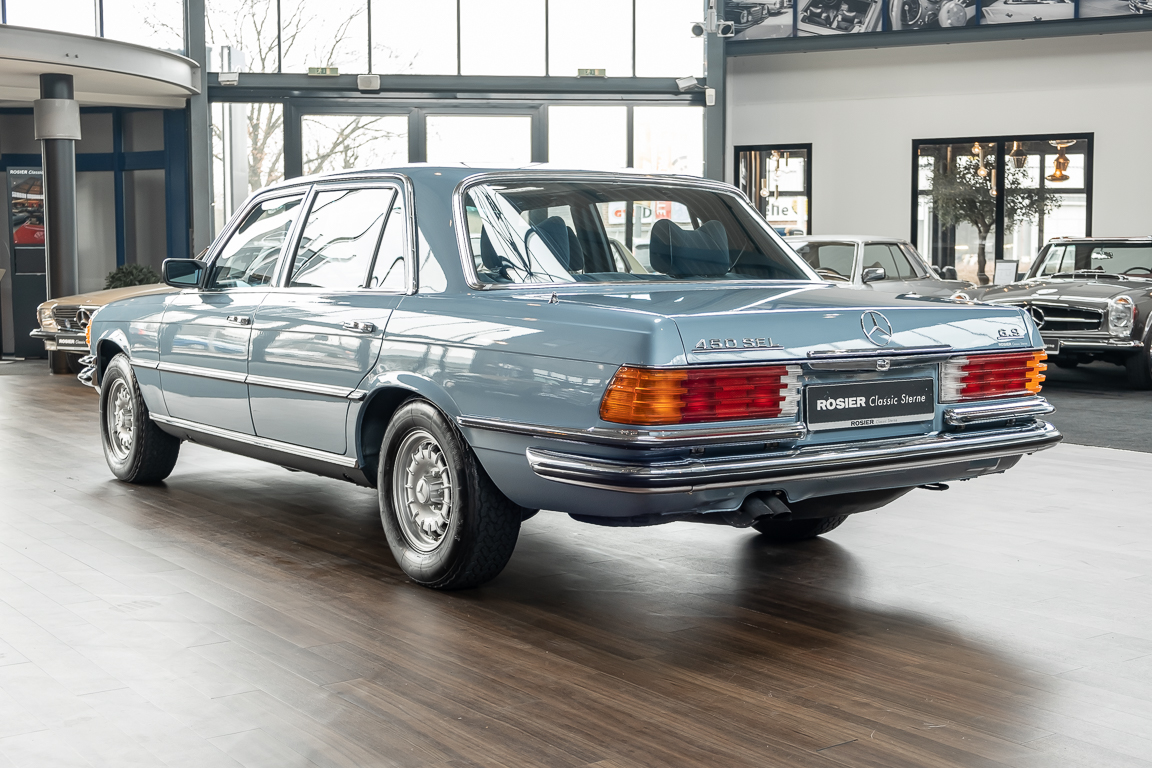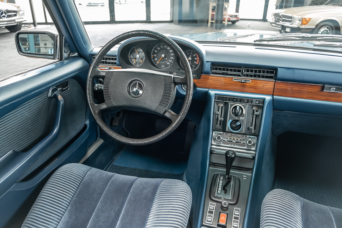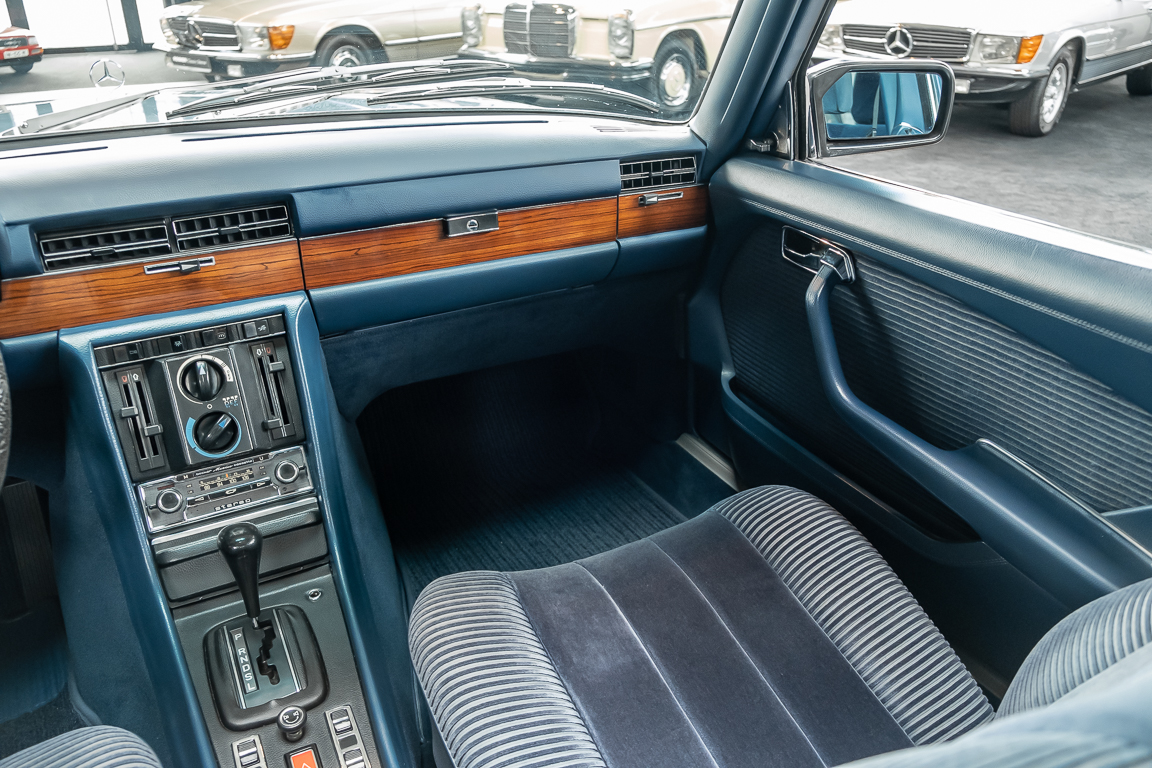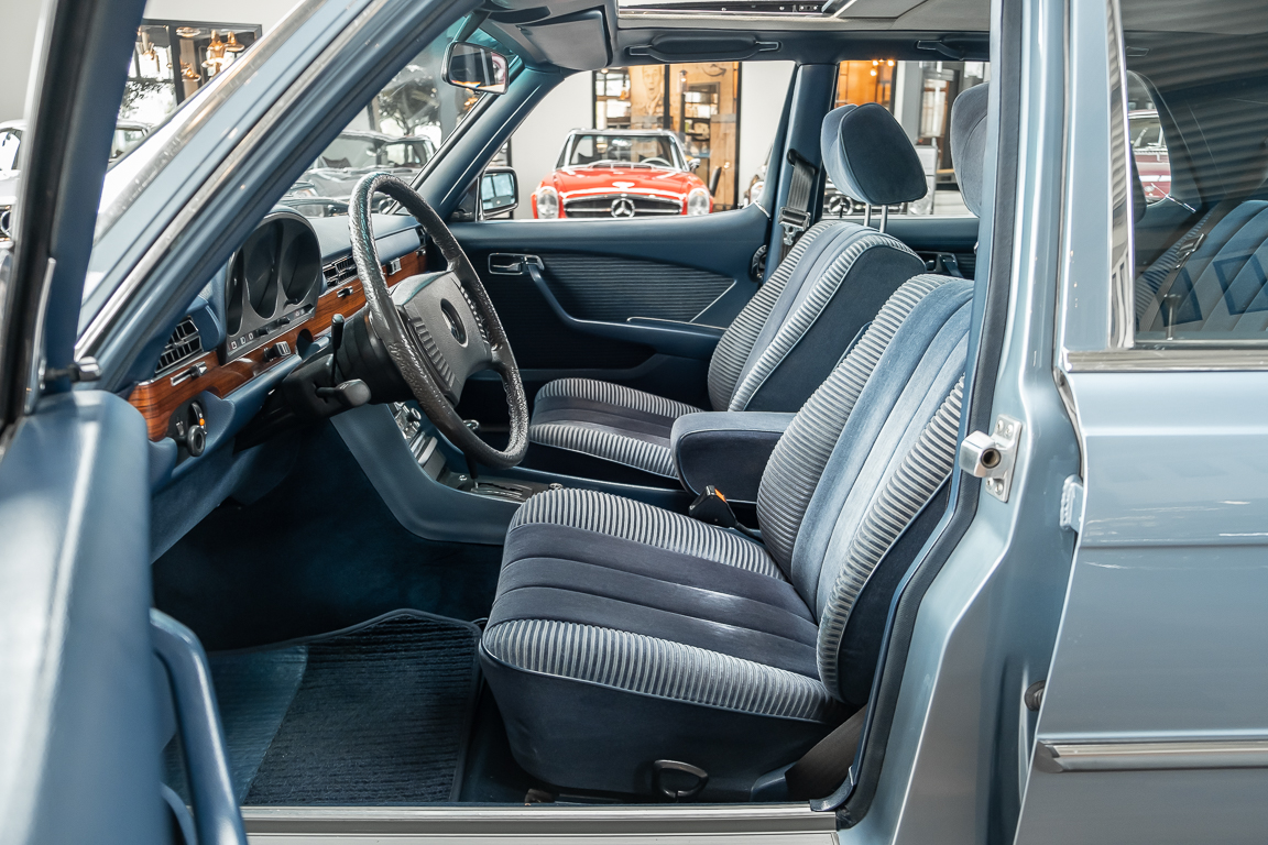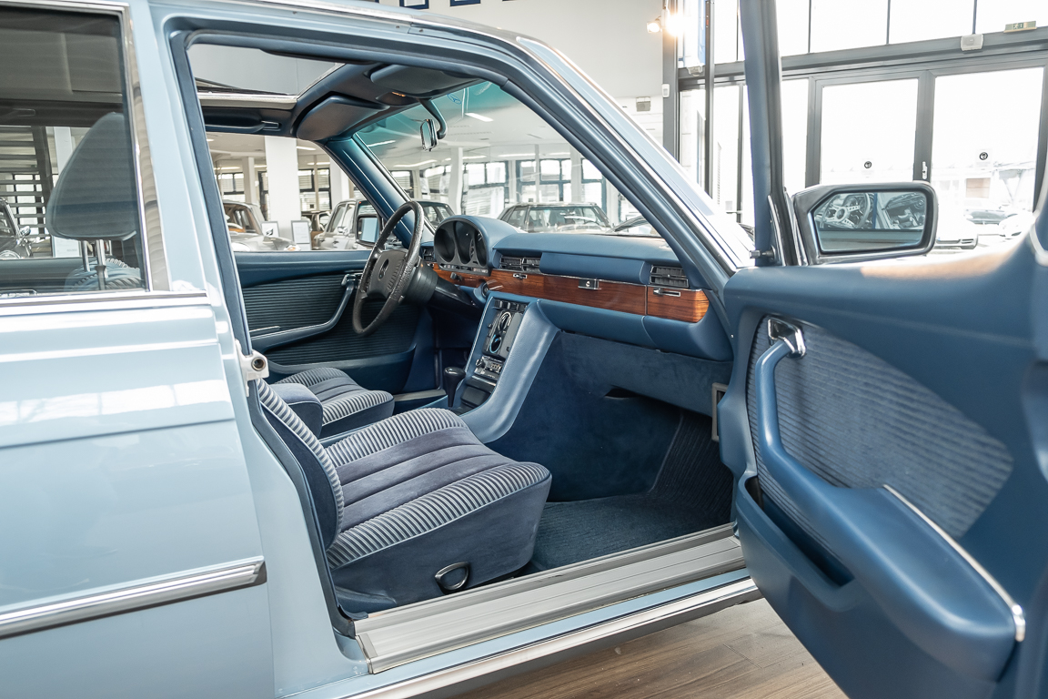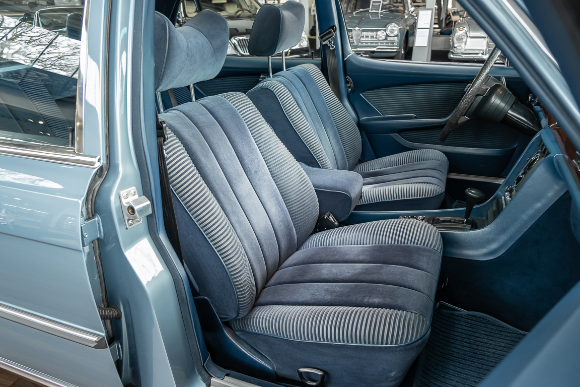 Als repräsentatives Luxusgefährt sorgte dieser 450 SEL 6.9 in den späten 1970er Jahren bis in die 1980er sicherlich für viel Aufsehen – auch wegen der tollen Farbgebung in Graublau Metallic. Mit einer Sensationellen Laufleistung von etwas über 130.000 km präsentiert sich das Fahrzeug von seiner allerbesten Seite und zeugt von seltener Benutzung und bester Wartung. Auch der Innenraum zeugt von bester Pflege. Die seltene Velours-Ausstattung ist unbeschädigt und lädt zum verweilen ein. Ein seltenschöner 6.9er, den Sie sich nicht entgehen lassen sollten.