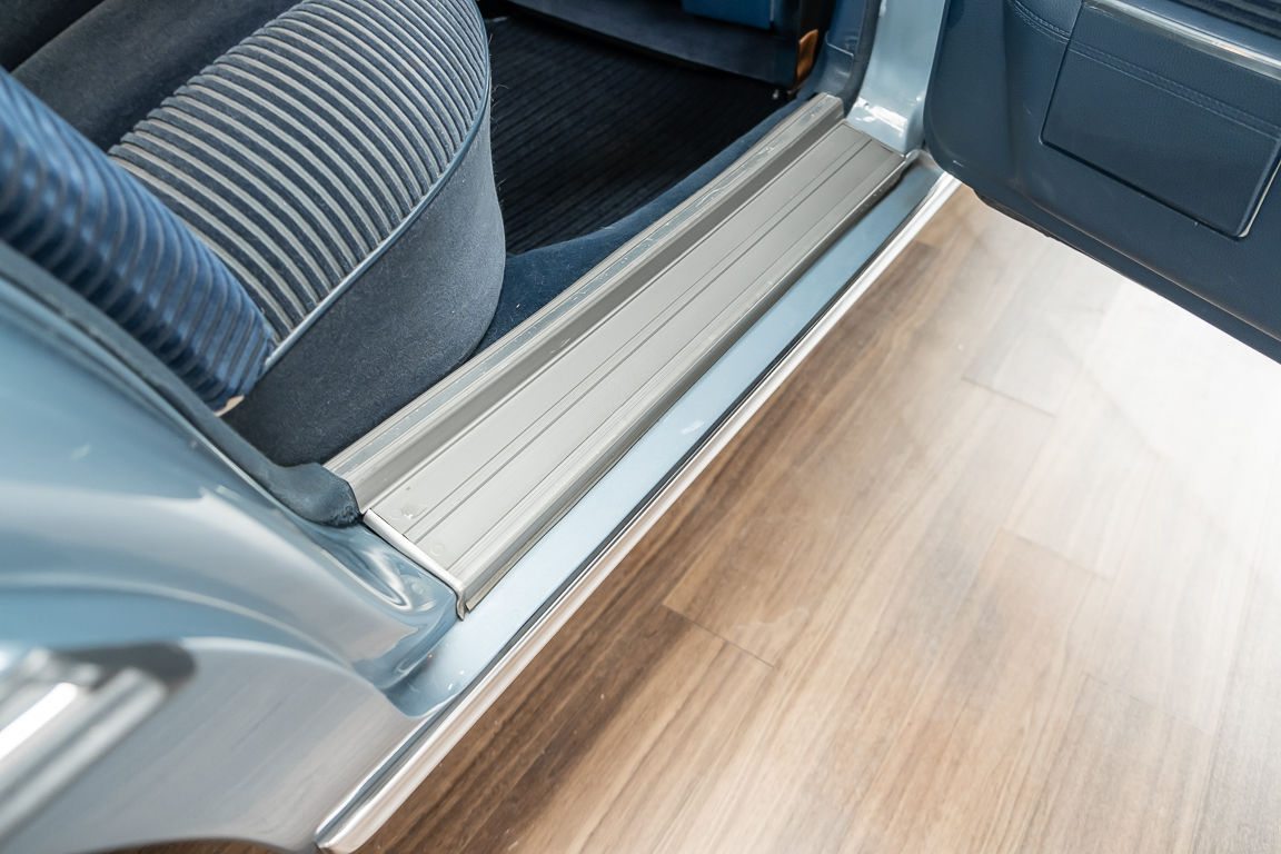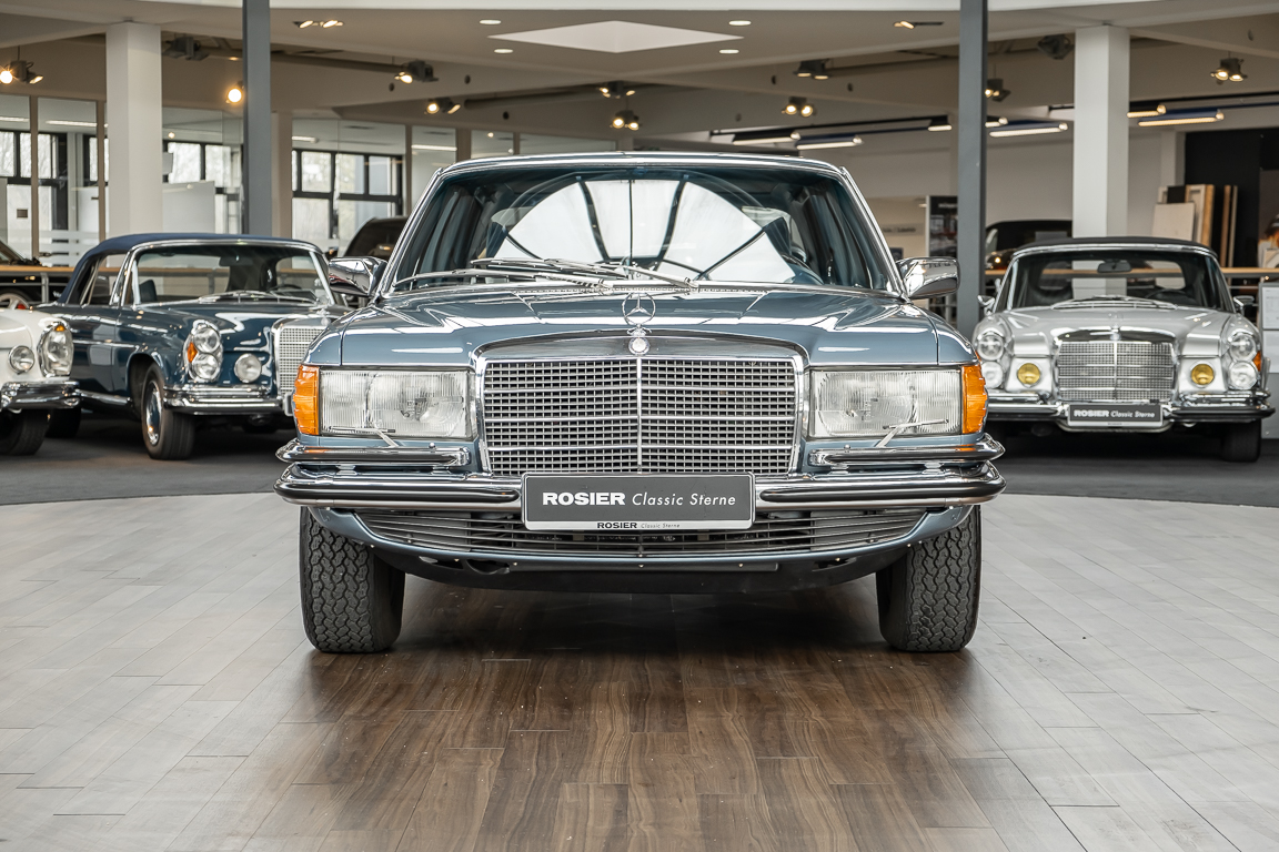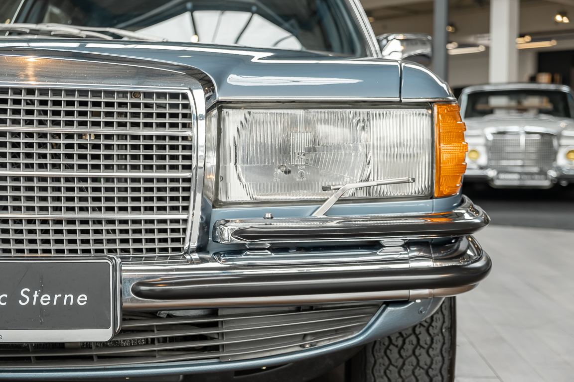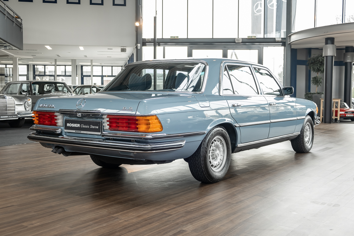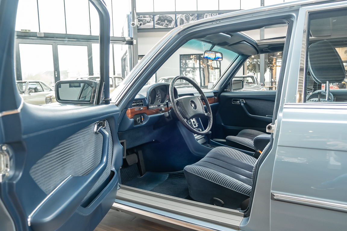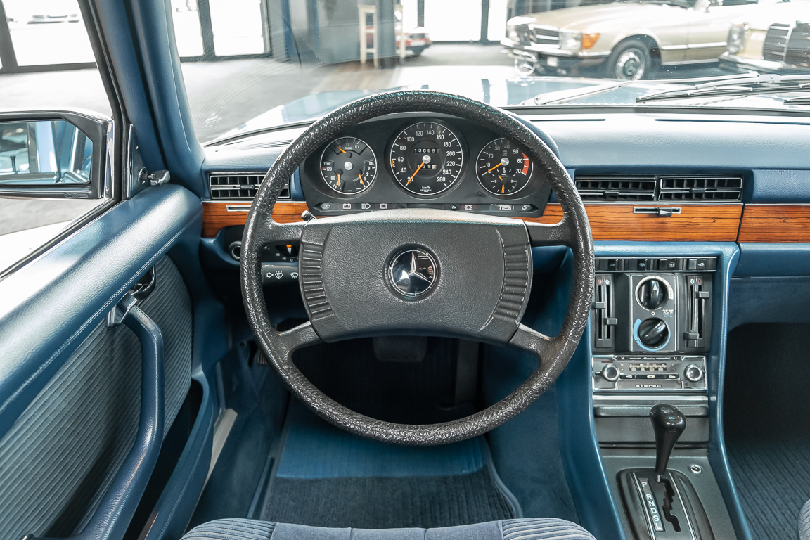 Als repräsentatives Luxusgefährt sorgte dieser 450 SEL 6.9 in den späten 1970er Jahren bis in die 1980er sicherlich für viel Aufsehen – auch wegen der tollen Farbgebung in Graublau Metallic. Mit einer Sensationellen Laufleistung von etwas über 130.000 km präsentiert sich das Fahrzeug von seiner allerbesten Seite und zeugt von seltener Benutzung und bester Wartung. Auch der Innenraum zeugt von bester Pflege. Die seltene Velours-Ausstattung ist unbeschädigt und lädt zum verweilen ein. Ein seltenschöner 6.9er, den Sie sich nicht entgehen lassen sollten.