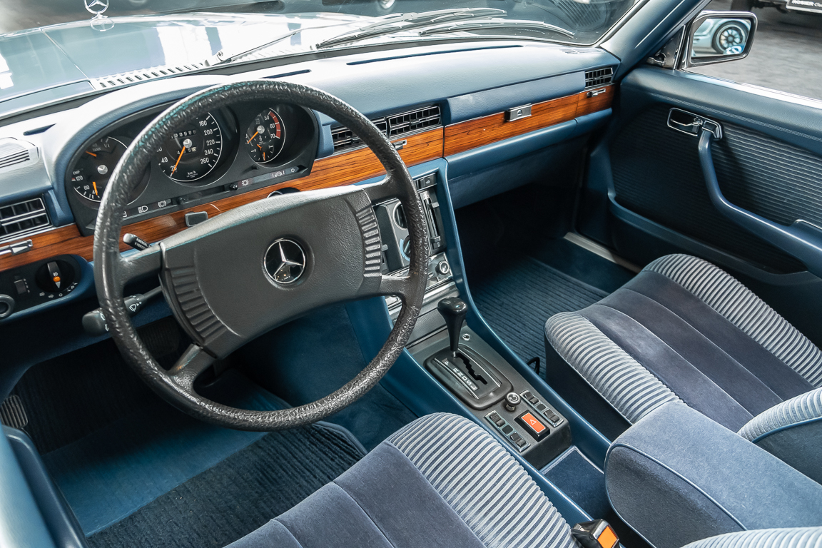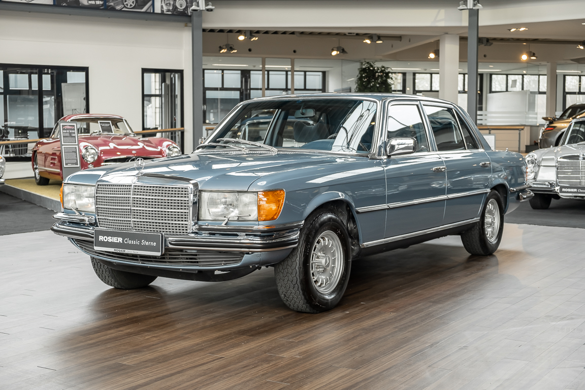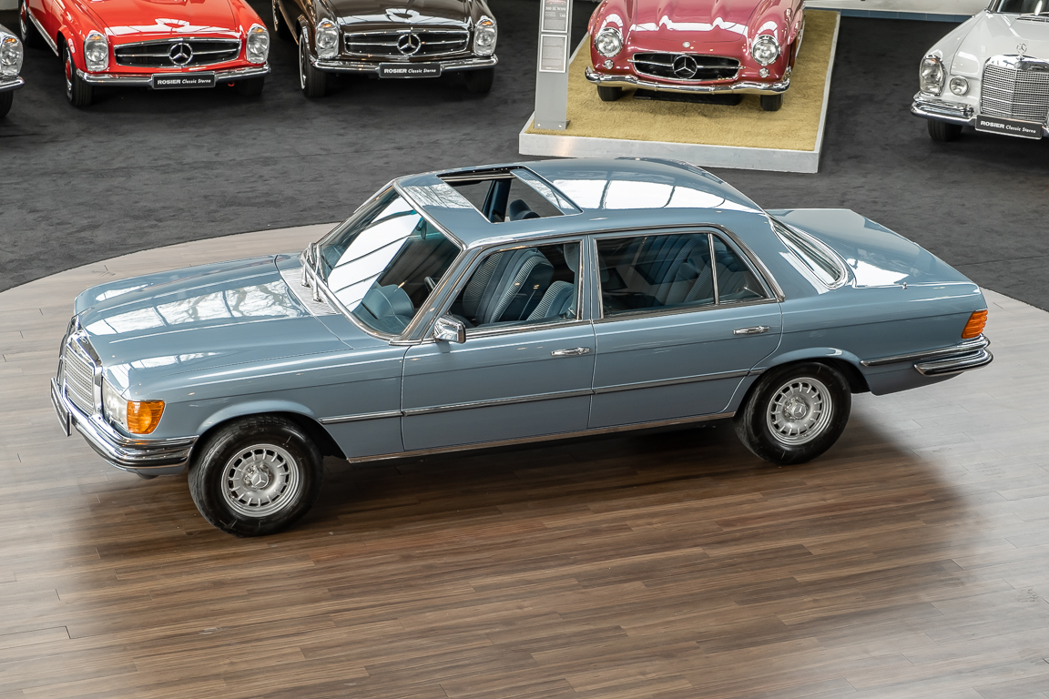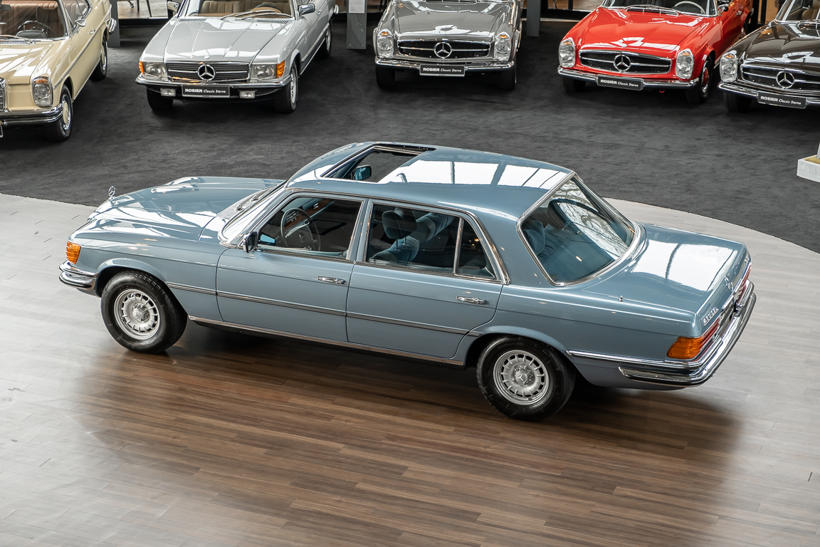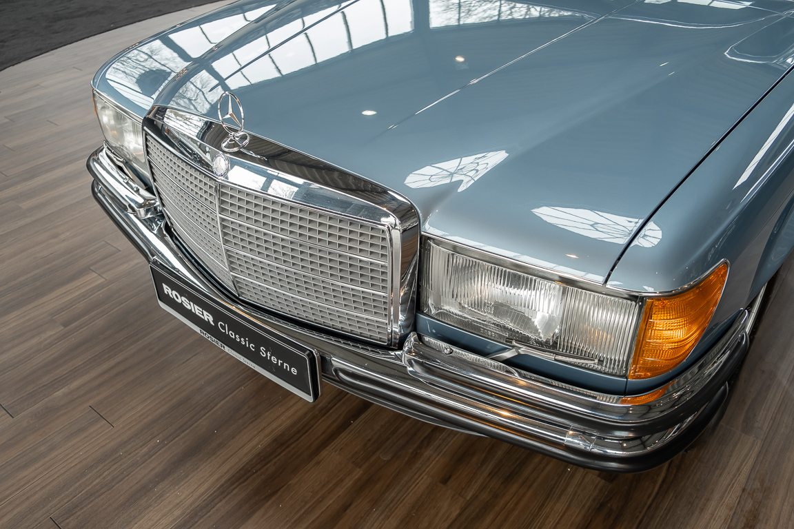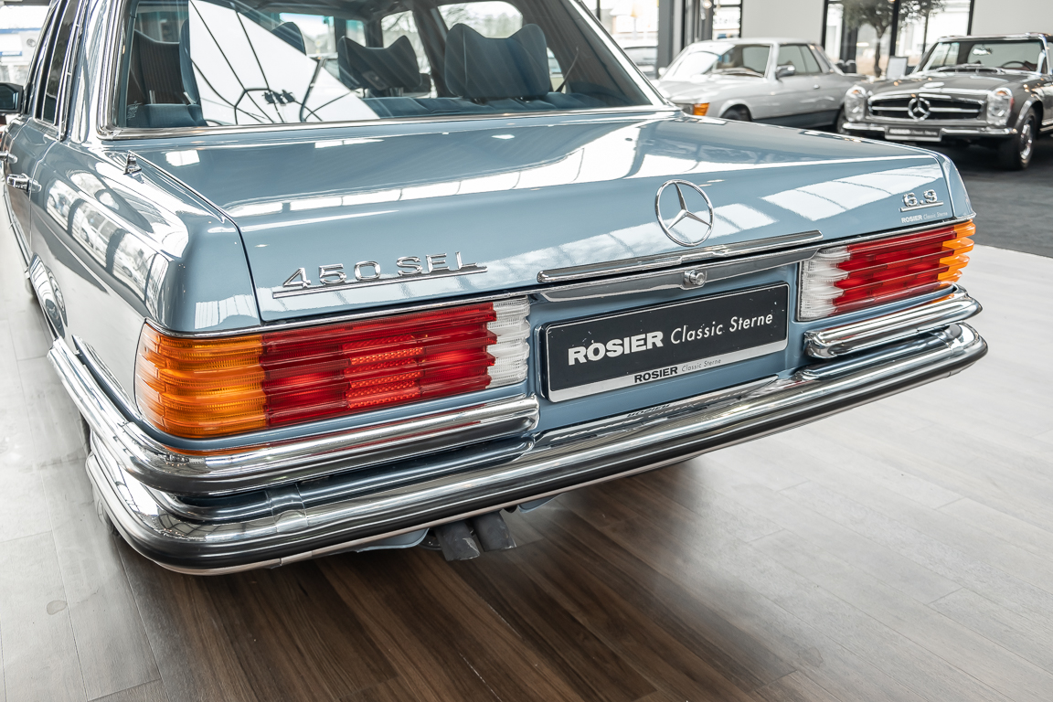 Als repräsentatives Luxusgefährt sorgte dieser 450 SEL 6.9 in den späten 1970er Jahren bis in die 1980er sicherlich für viel Aufsehen – auch wegen der tollen Farbgebung in Graublau Metallic. Mit einer Sensationellen Laufleistung von etwas über 130.000 km präsentiert sich das Fahrzeug von seiner allerbesten Seite und zeugt von seltener Benutzung und bester Wartung. Auch der Innenraum zeugt von bester Pflege. Die seltene Velours-Ausstattung ist unbeschädigt und lädt zum verweilen ein. Ein seltenschöner 6.9er, den Sie sich nicht entgehen lassen sollten.