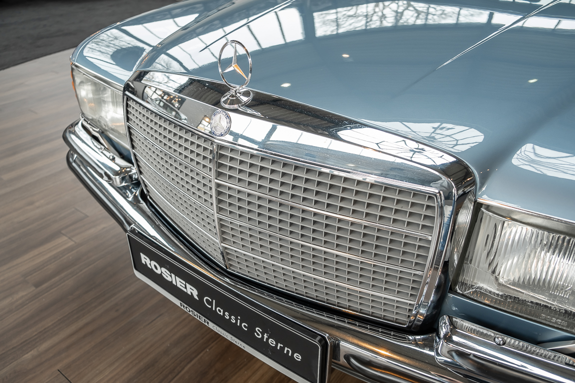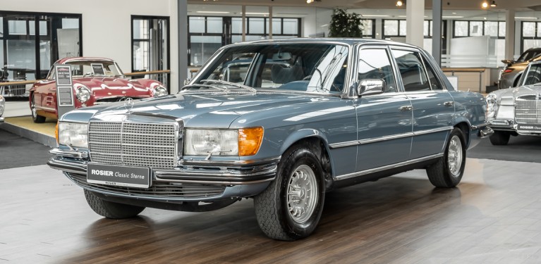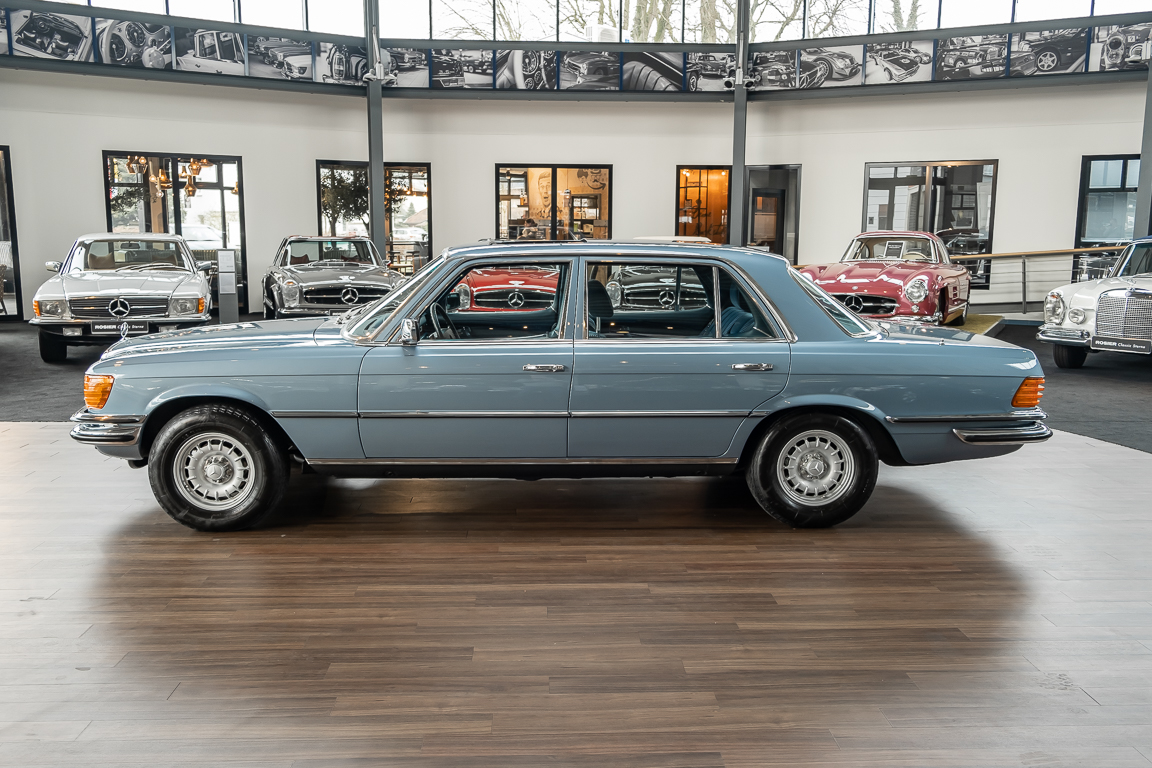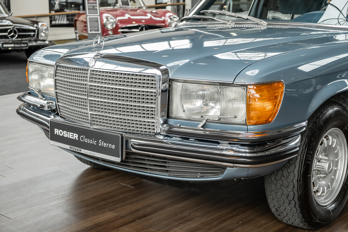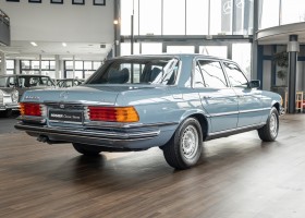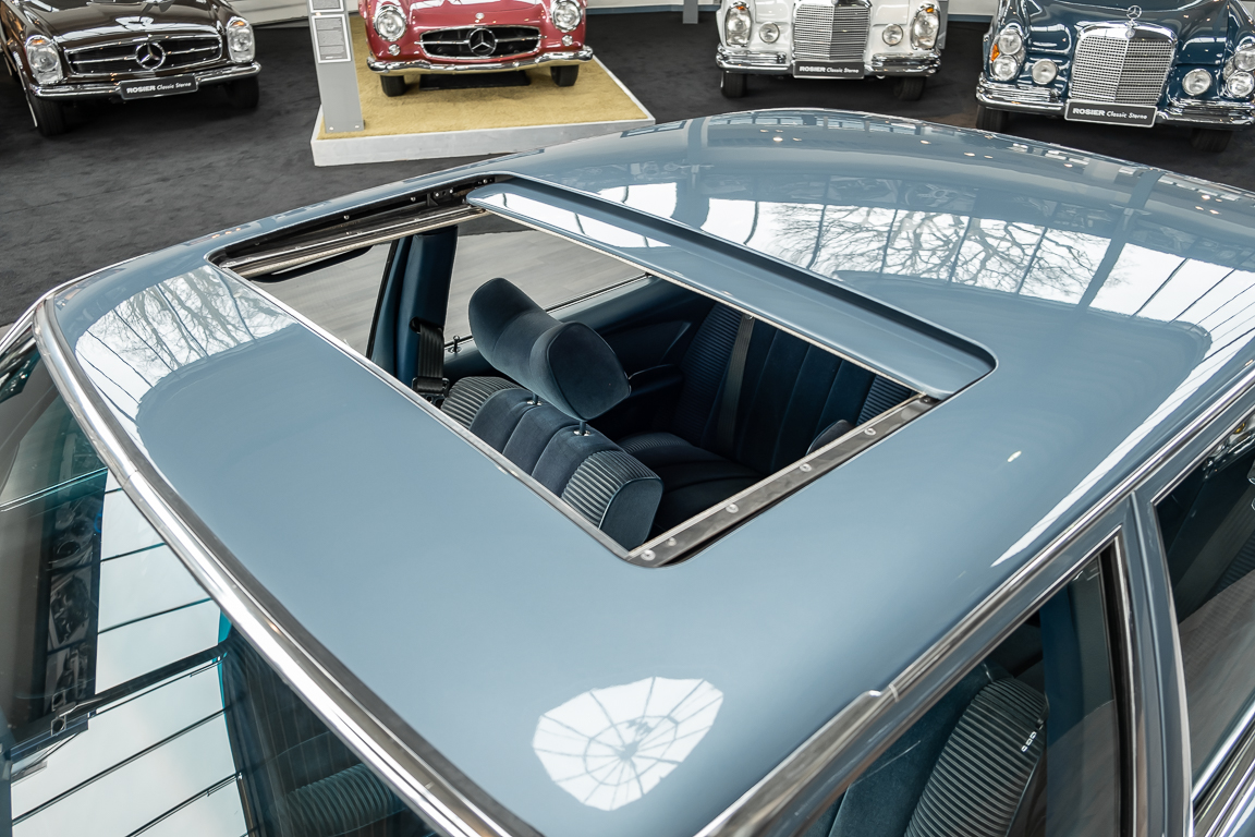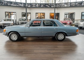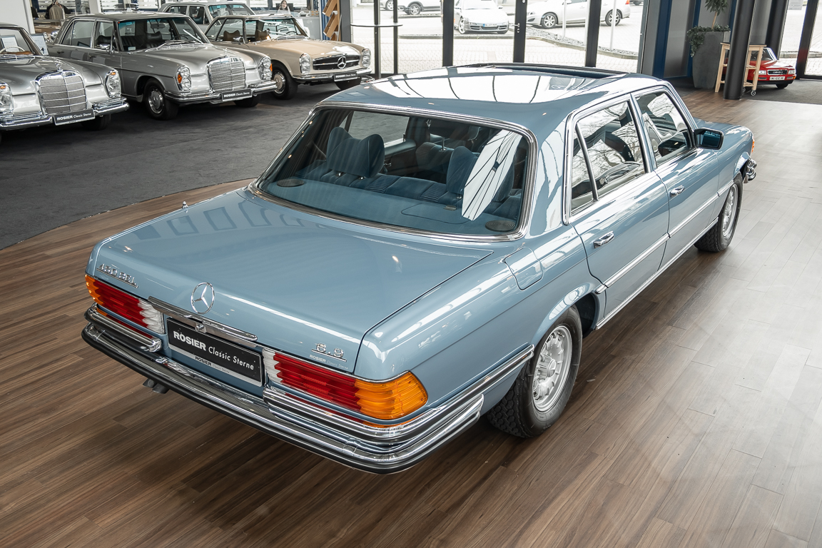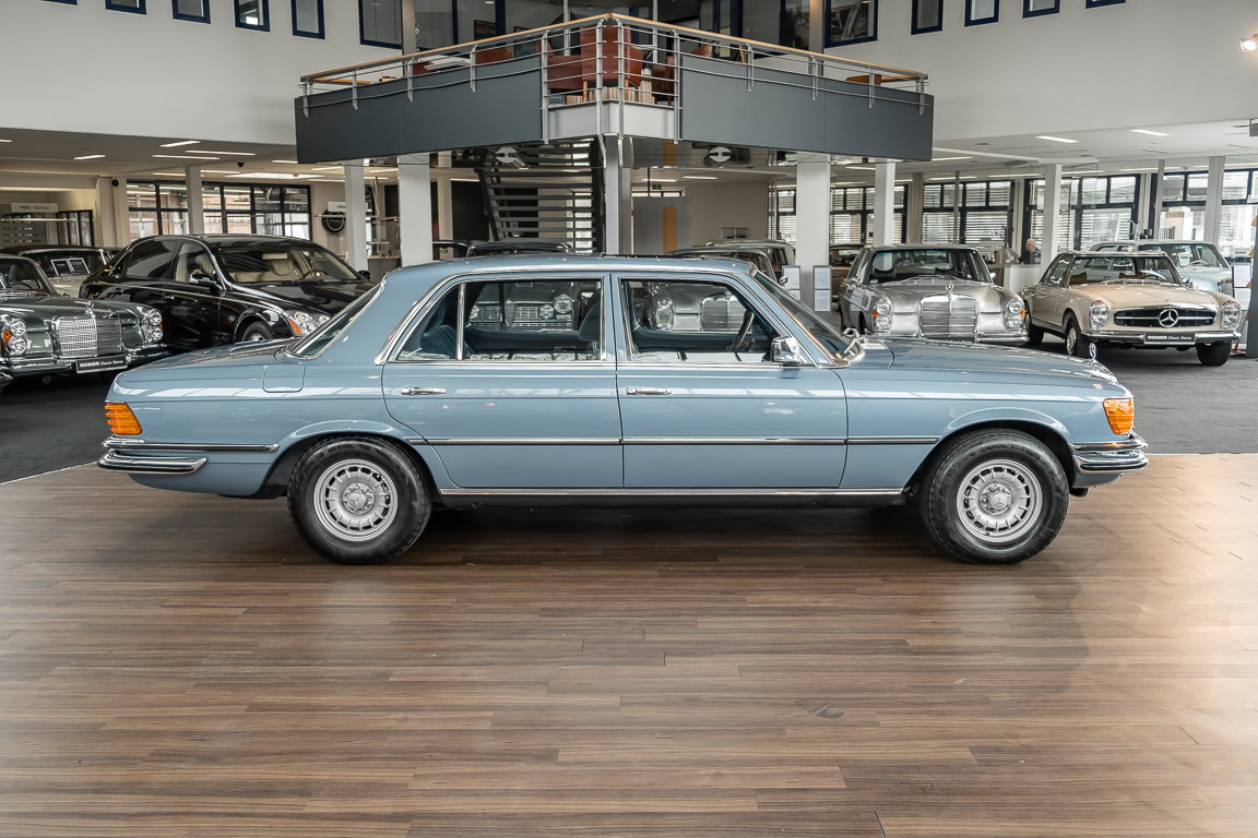 Als repräsentatives Luxusgefährt sorgte dieser 450 SEL 6.9 in den späten 1970er Jahren bis in die 1980er sicherlich für viel Aufsehen – auch wegen der tollen Farbgebung in Graublau Metallic. Mit einer Sensationellen Laufleistung von etwas über 130.000 km präsentiert sich das Fahrzeug von seiner allerbesten Seite und zeugt von seltener Benutzung und bester Wartung. Auch der Innenraum zeugt von bester Pflege. Die seltene Velours-Ausstattung ist unbeschädigt und lädt zum verweilen ein. Ein seltenschöner 6.9er, den Sie sich nicht entgehen lassen sollten.