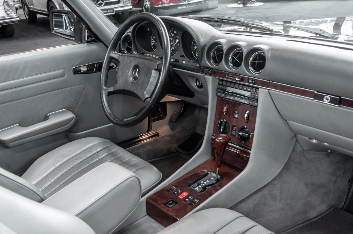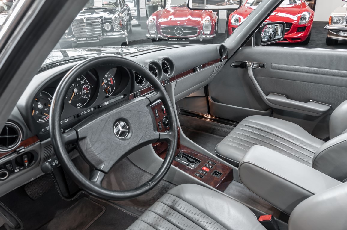 Eine echte Rarität: ein 500 SL mit originalen 14.500 Kilometern. 1987 wurde dieses Fahrzeug im edlen Anthrazitgrau Metallic in die Niederlassung München ausgeliefert, somit ist es in deutscher Spezifikation gebaut worden und war ursprünglich für den deutschen Markt bestimmt.
