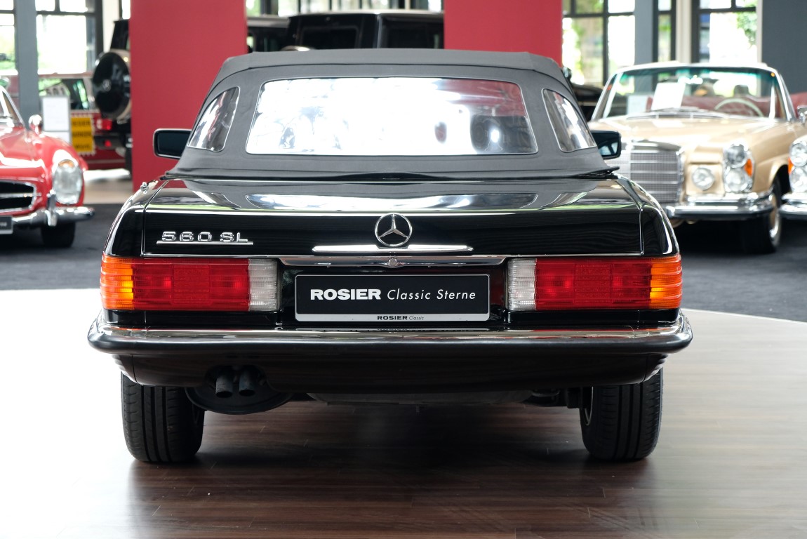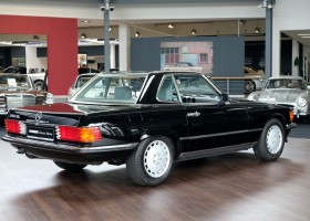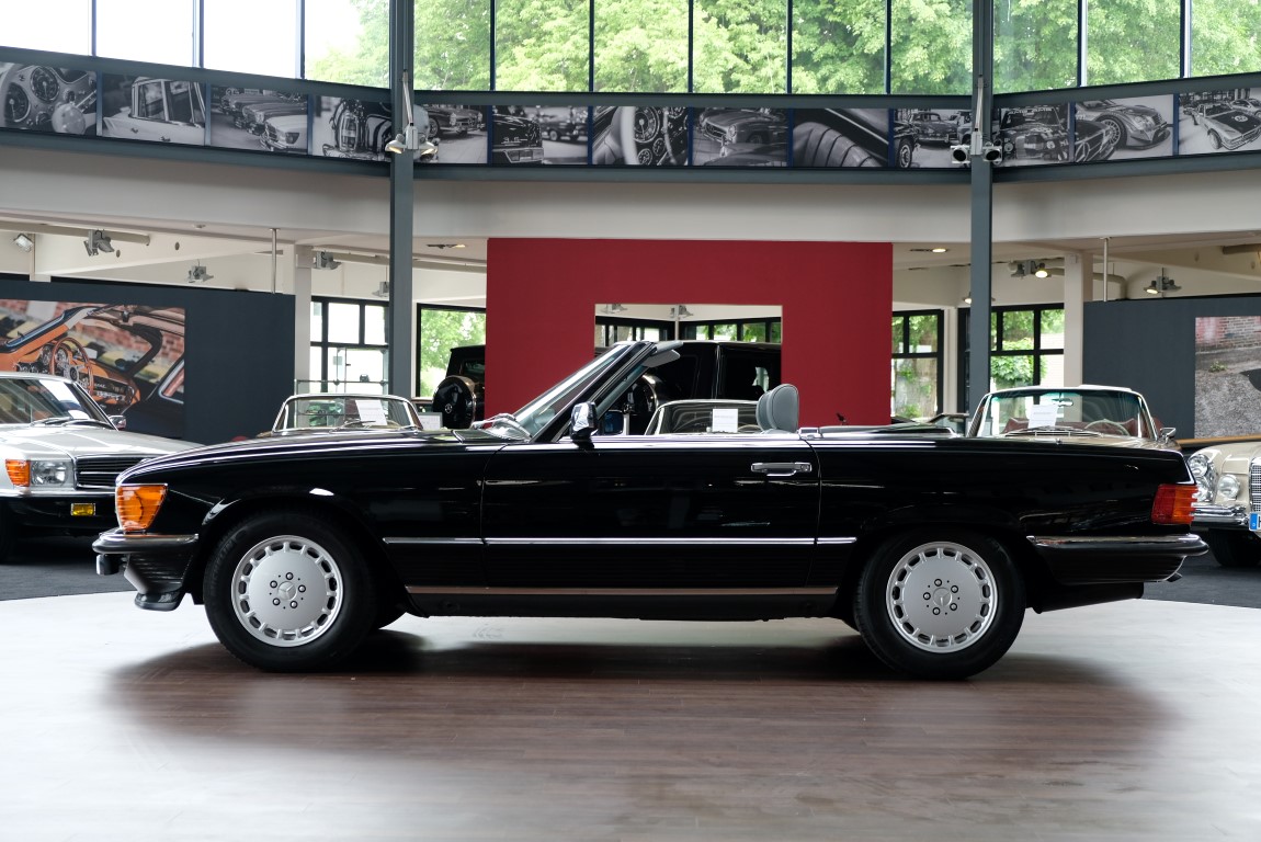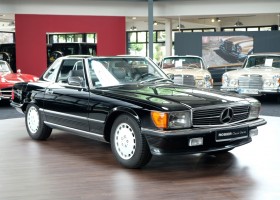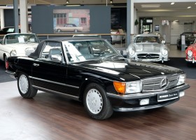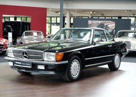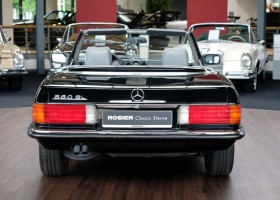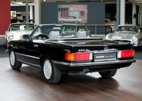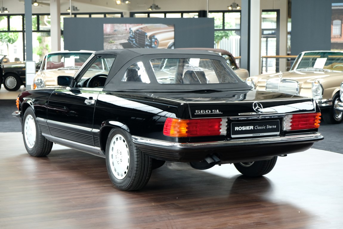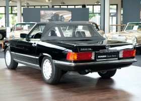 Der Roadster wurde am 10.09.1988 an ein vermögendes Ehepaar im sonnigen Kalifornien /USA ausgeliefert. Sie fuhren den Roadster bis Ende 1992 und verkauften ihn mit etwa 20.000 Meilen an ein befreundetes Ehepaar ebenfalls in Glendora/Kalifornien/USA. Dort verblieb der Wagen für die nächsten 22 Jahre. Alle Servicearbeiten wurden ordnungsgemäß gemacht, wie man der History Mappe des jetzigen Besitzers eindrucksvoll entnehmen kann. In 2014 hatte ein deutscher, auf Mercedes-Benz R 107 Modelle spezialisierter Händler, den zum Verkauf stehenden Wagen dem Ehepaar in Glendora abgekauft. Er holte den 560 SL mit erst 53.228 Meilen nach Norddeutschland. Das Erscheinungsbild wurde den deutschen Käuferwünschen entsprechend angepasst, der so ungeliebte Heckspoiler und das dicke 3. Bremslicht wurden entfernt. Ein Traum von einem Roadster, schwarz mit grauem Leder, gepflegt und stets gewartet. Gerade die stärksten 8 Zylinder Versionen der R107er Reihe erfreuen sich bei Sammlern und Liebhabern klassischer Automobile größter Beliebtheit. Sie gelten als zuverlässig, langlebig und wertstabil mit Potential nach oben.