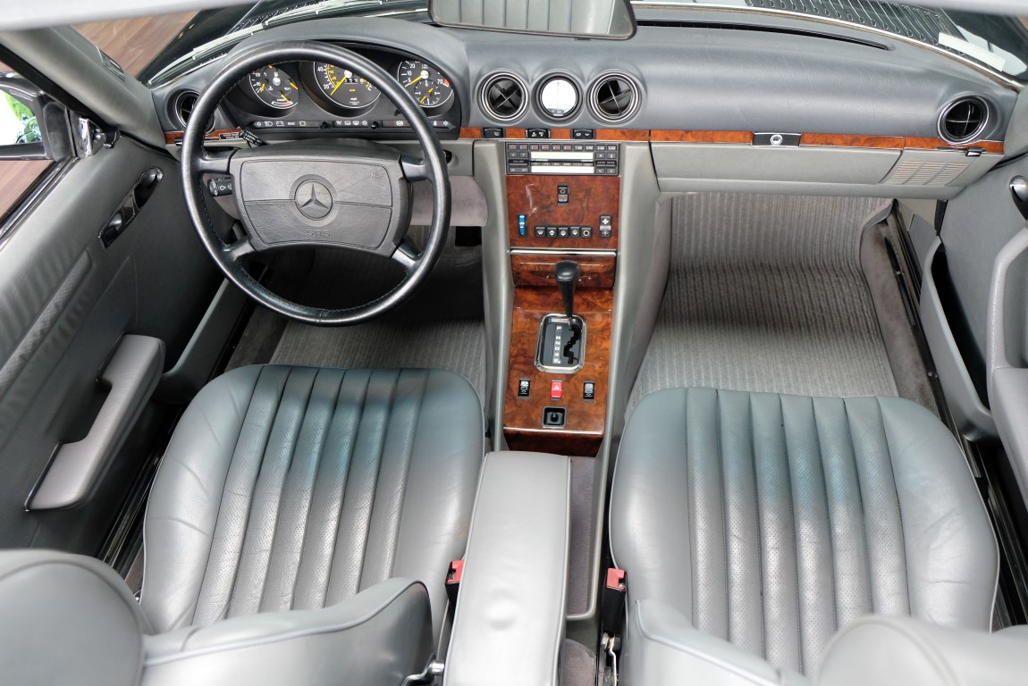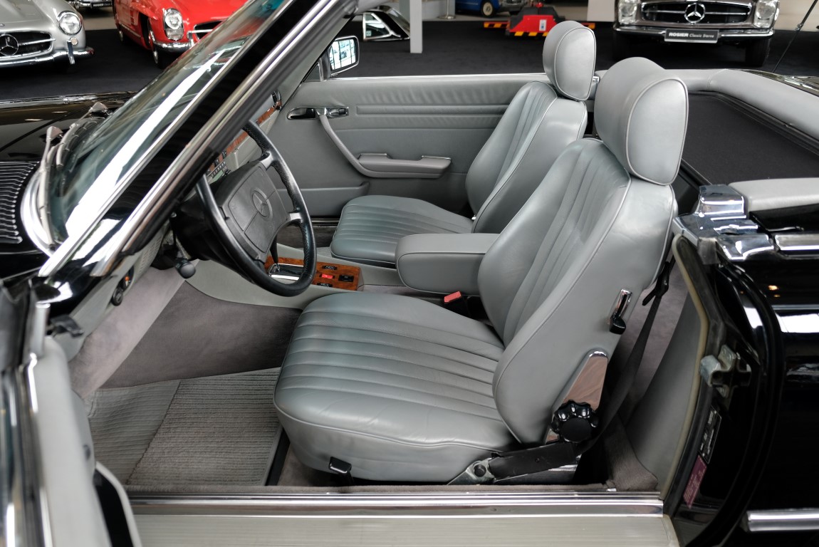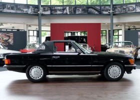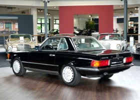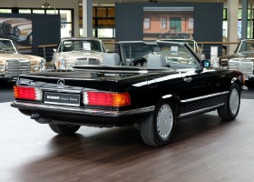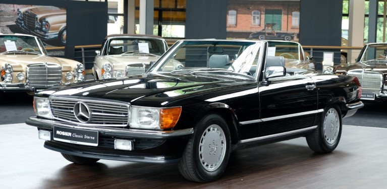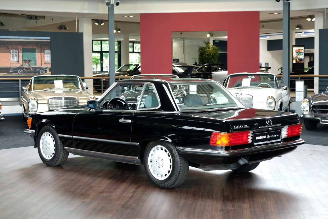 Der Roadster wurde am 10.09.1988 an ein vermögendes Ehepaar im sonnigen Kalifornien /USA ausgeliefert. Sie fuhren den Roadster bis Ende 1992 und verkauften ihn mit etwa 20.000 Meilen an ein befreundetes Ehepaar ebenfalls in Glendora/Kalifornien/USA. Dort verblieb der Wagen für die nächsten 22 Jahre. Alle Servicearbeiten wurden ordnungsgemäß gemacht, wie man der History Mappe des jetzigen Besitzers eindrucksvoll entnehmen kann. In 2014 hatte ein deutscher, auf Mercedes-Benz R 107 Modelle spezialisierter Händler, den zum Verkauf stehenden Wagen dem Ehepaar in Glendora abgekauft. Er holte den 560 SL mit erst 53.228 Meilen nach Norddeutschland. Das Erscheinungsbild wurde den deutschen Käuferwünschen entsprechend angepasst, der so ungeliebte Heckspoiler und das dicke 3. Bremslicht wurden entfernt. Ein Traum von einem Roadster, schwarz mit grauem Leder, gepflegt und stets gewartet. Gerade die stärksten 8 Zylinder Versionen der R107er Reihe erfreuen sich bei Sammlern und Liebhabern klassischer Automobile größter Beliebtheit. Sie gelten als zuverlässig, langlebig und wertstabil mit Potential nach oben.