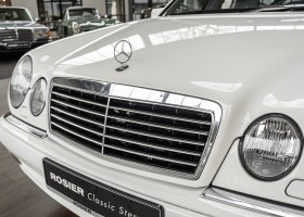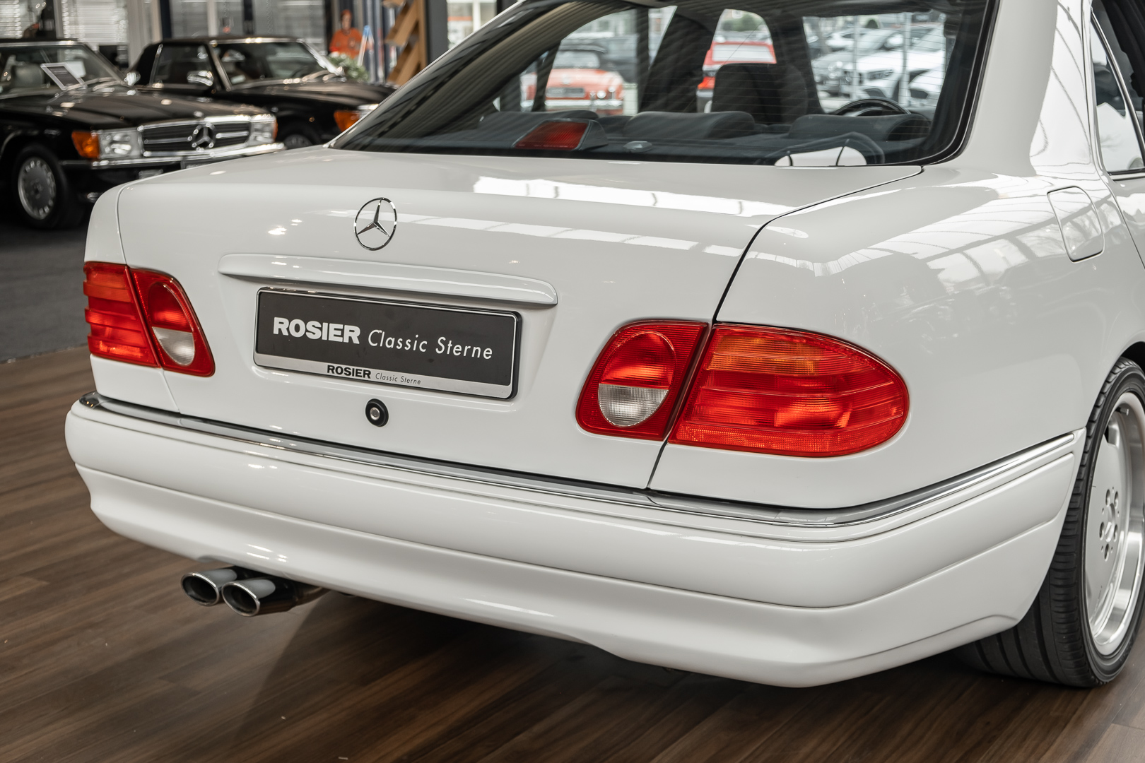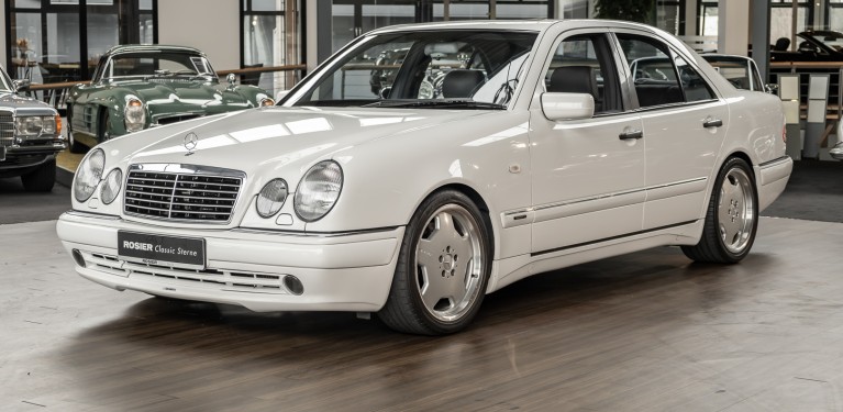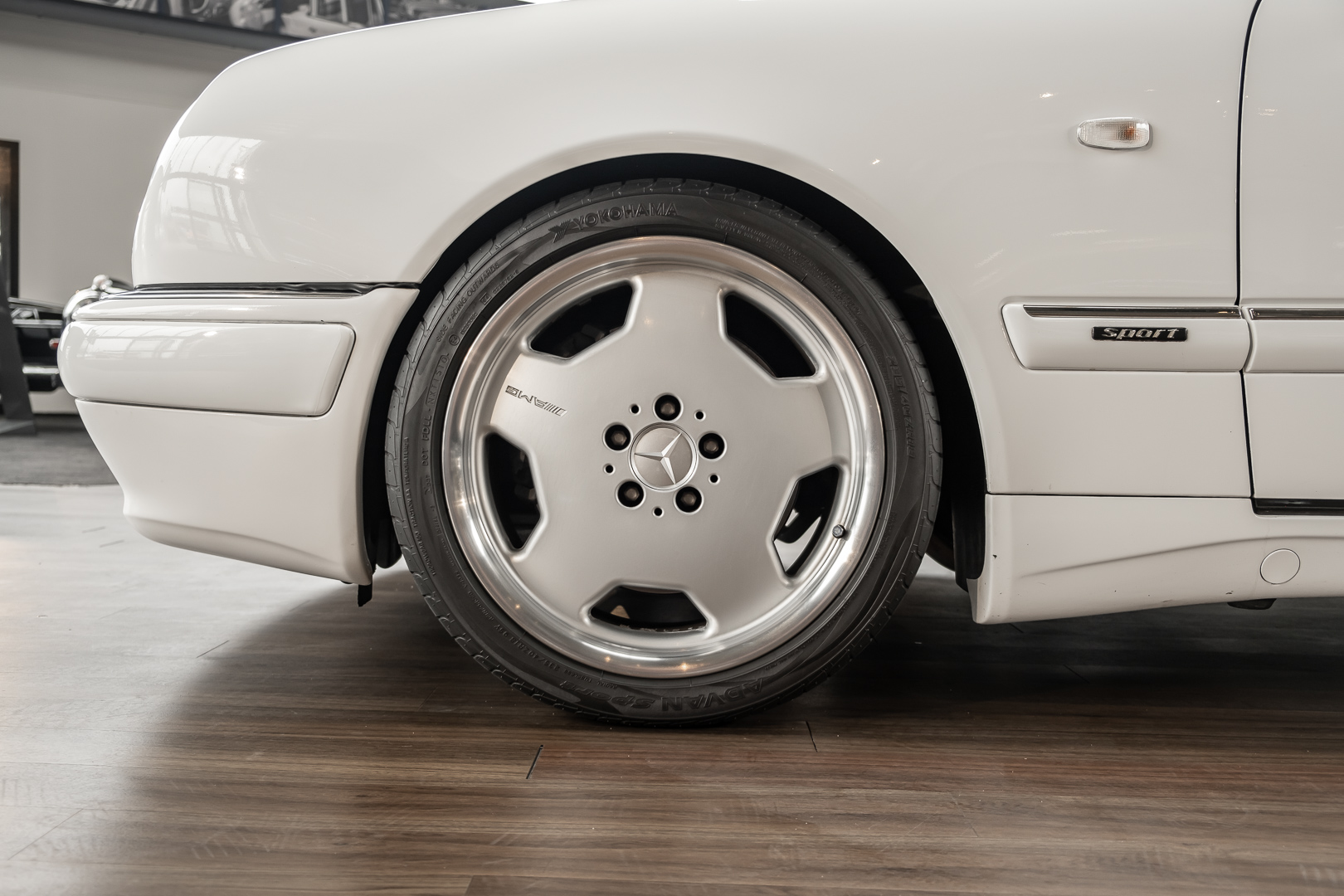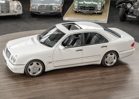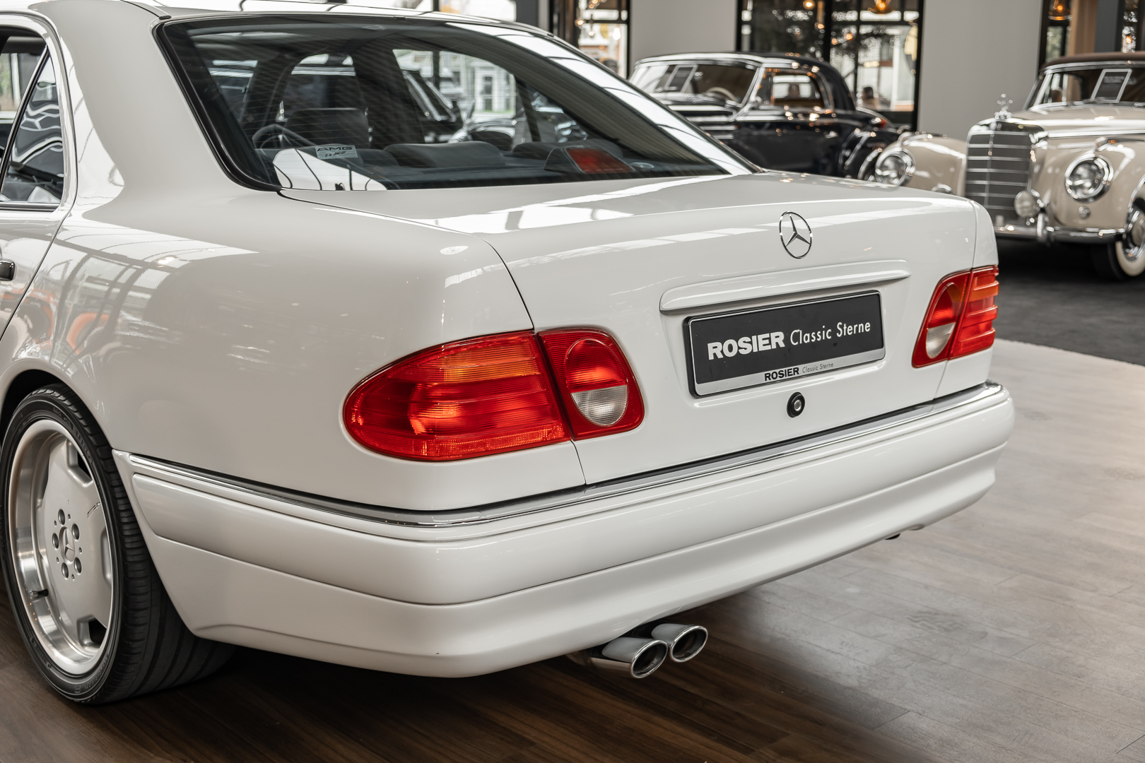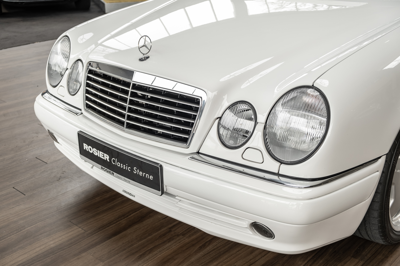 Wir freuen uns, Ihnen dieses 210er-Schmuckstück aus dem Hause AMG anbieten zu können. Zunächst verließ diese AMG-Rarität das Werk in Sindelfingen als E 50 AMG, der mit 347 PS bereits ausreichend Kraftreserven bereithielt. Bestimmt war die vollausgestattete Sport-Limousine in firnweiß für einen japanischen Kunden, der das Exklusive liebte. Genau das war der Grund, warum das Fahrzeug – vor der langen Reise nach Japan – erst noch nach Affalterbach gelang, wo die AMG-Experten auf die besondere Anfrage hin, den Umbau auf den leistungsgesteigerten E 60 AMG vornahmen. Der Umbau umfasste eine Leistungssteigerung durch AMG auf den hubraumvergrößerten Motor M 119-6.0 Kat, eine geänderte Achsübersetzung sowie angepasstes Getriebesteuergerät sowie ein AMG Holz-/Leder-Airbaglenkrad.