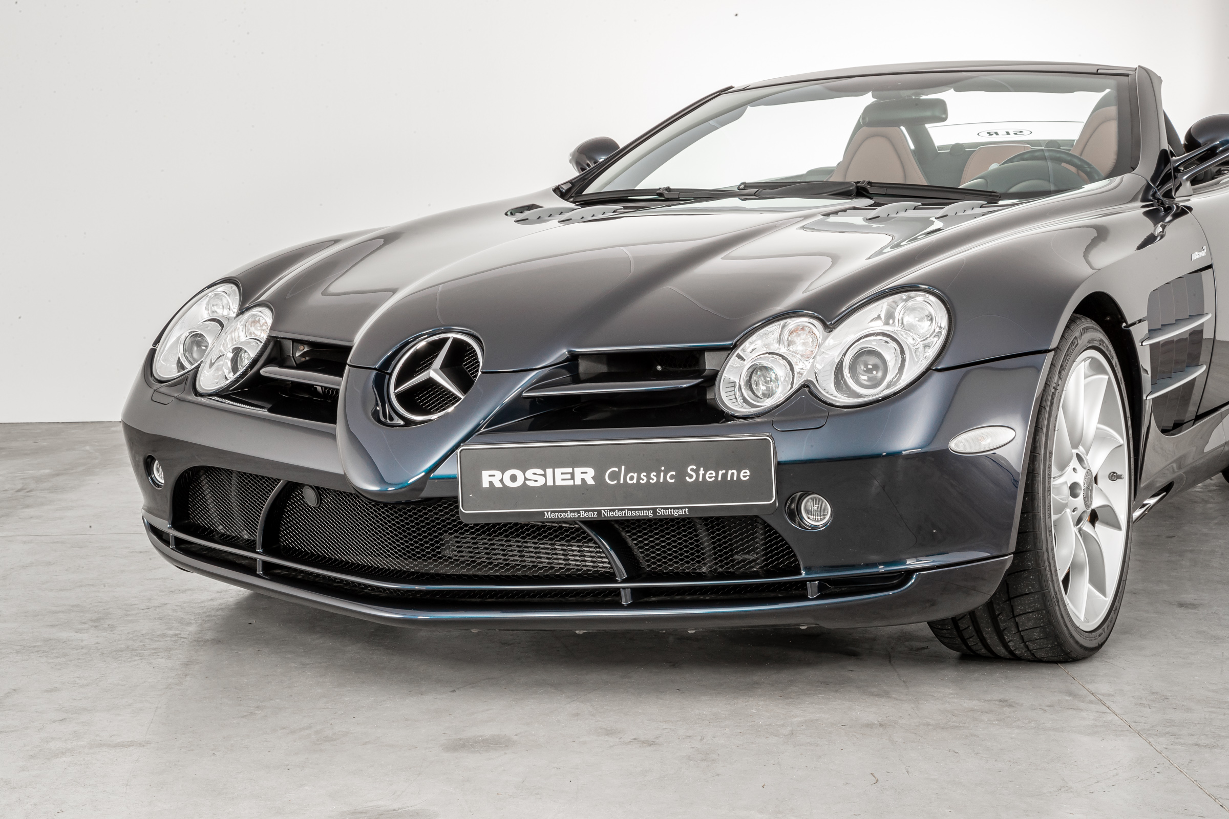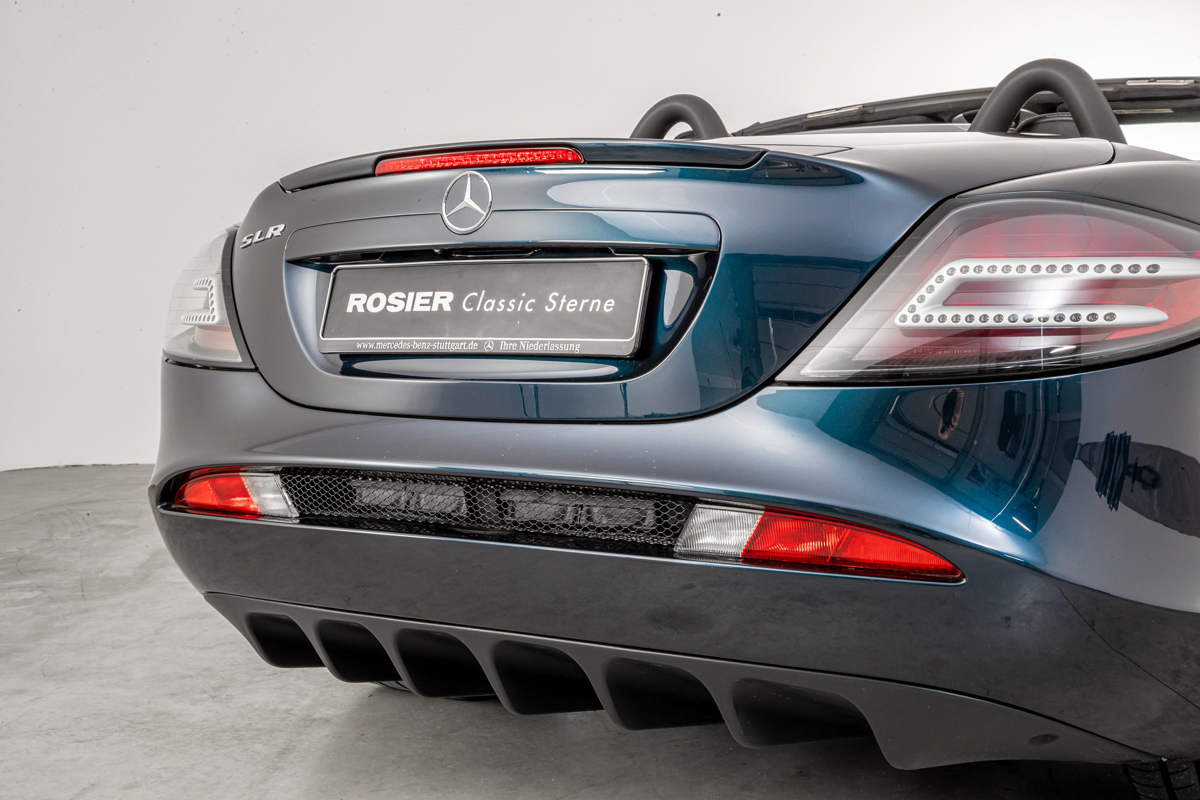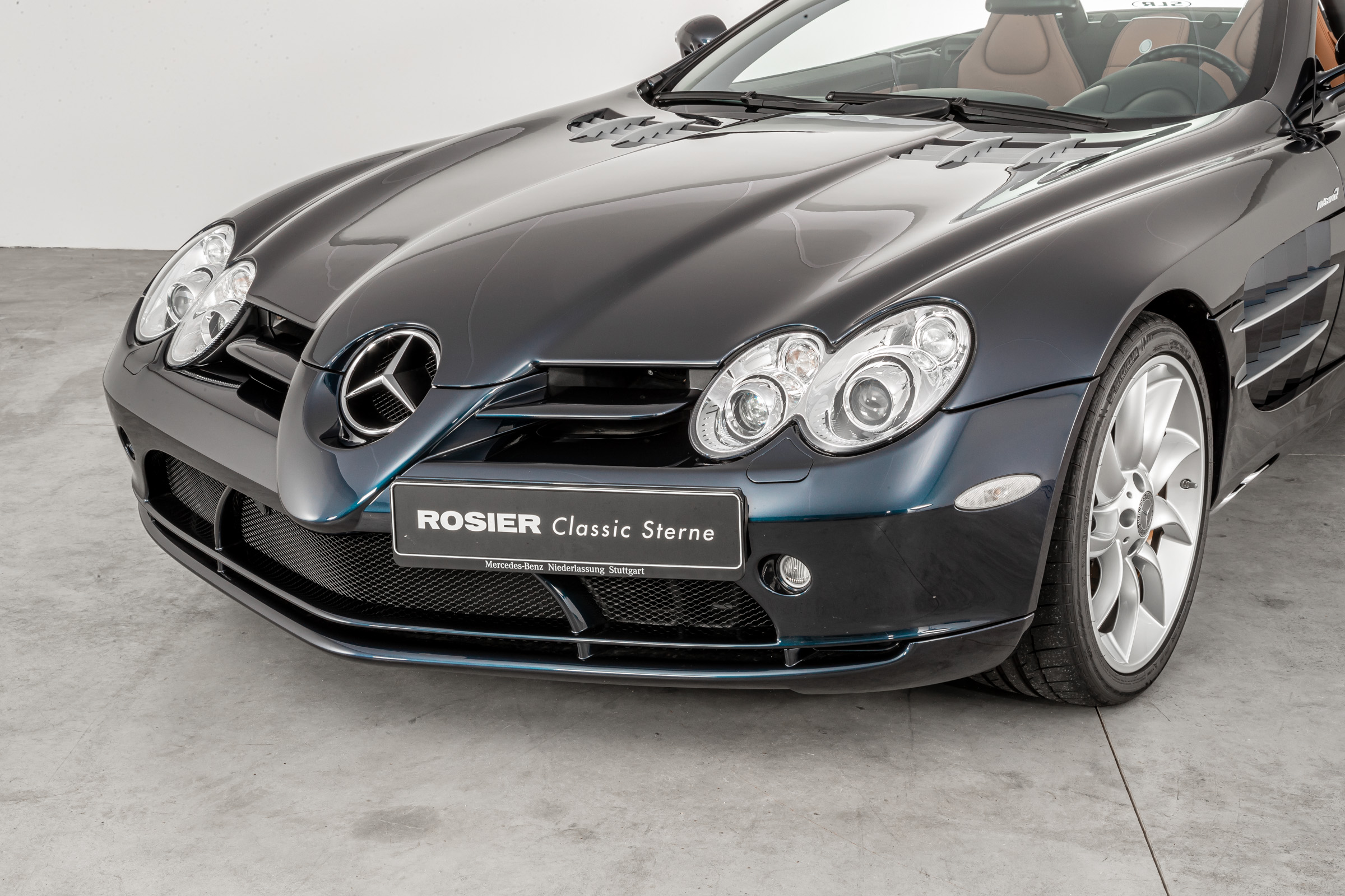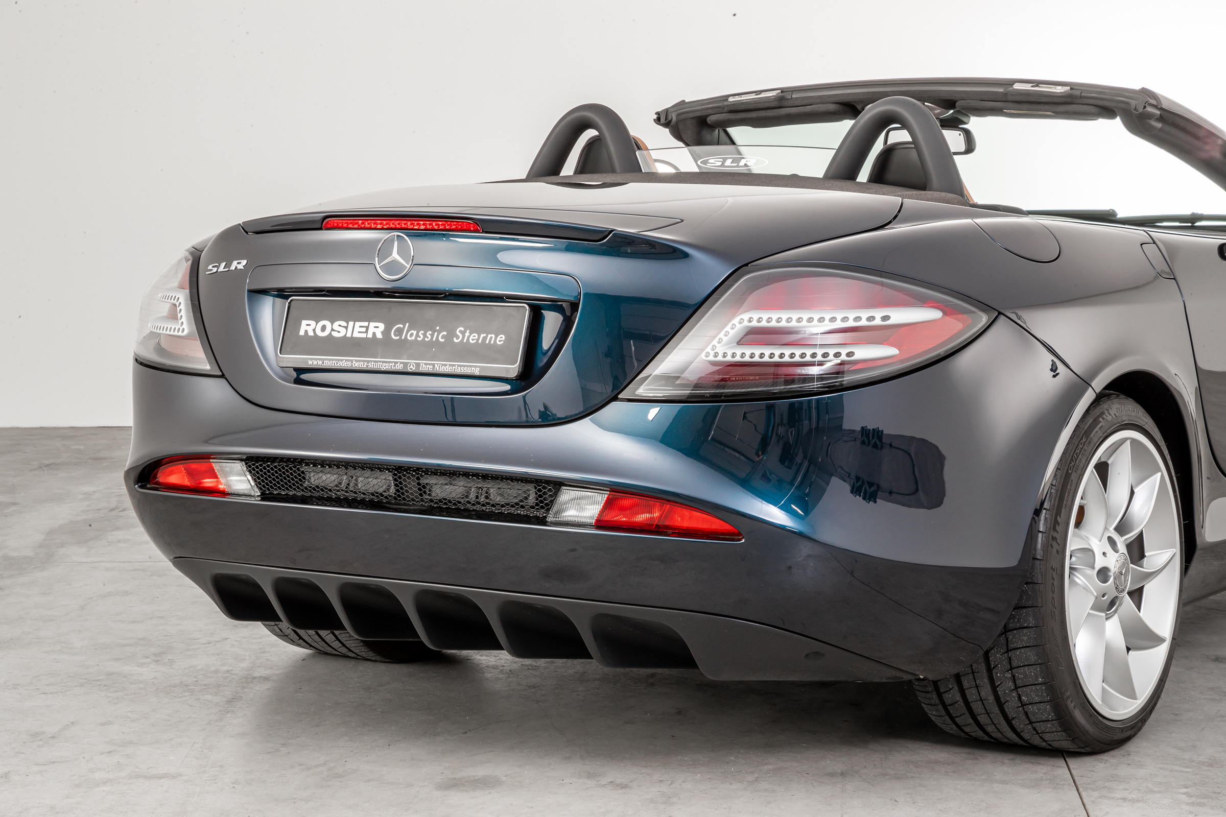 Traumhafter Ausnahme Mercedes-Benz SLR Roadster in seltener Farbkombination (Crystal Blue Metallic/Leder Silberpfeil Beige), deutsches Fahrzeug aus zweiter Hand mit nur 3.100 km und Mehrwertsteuerwausweis, absolutes Sammlerstück