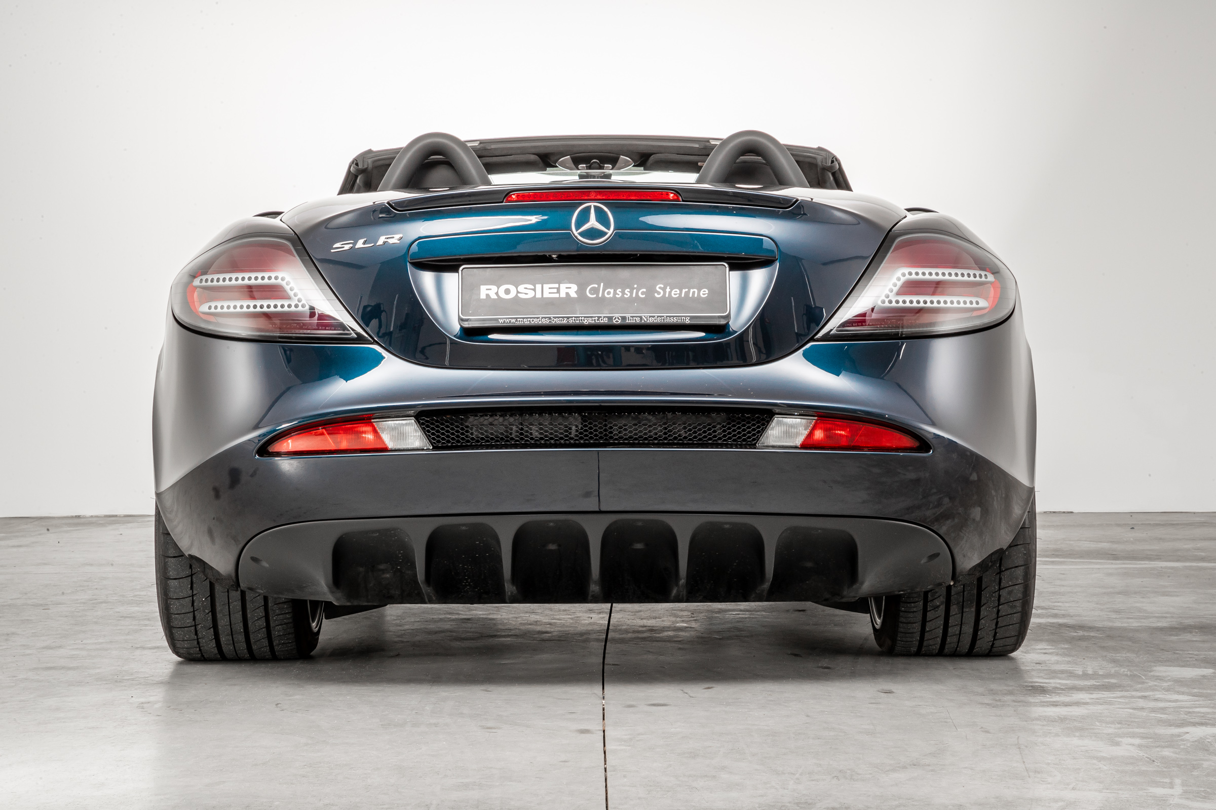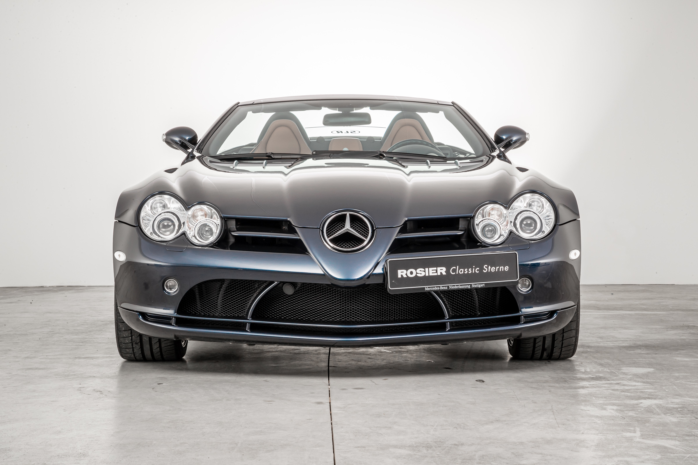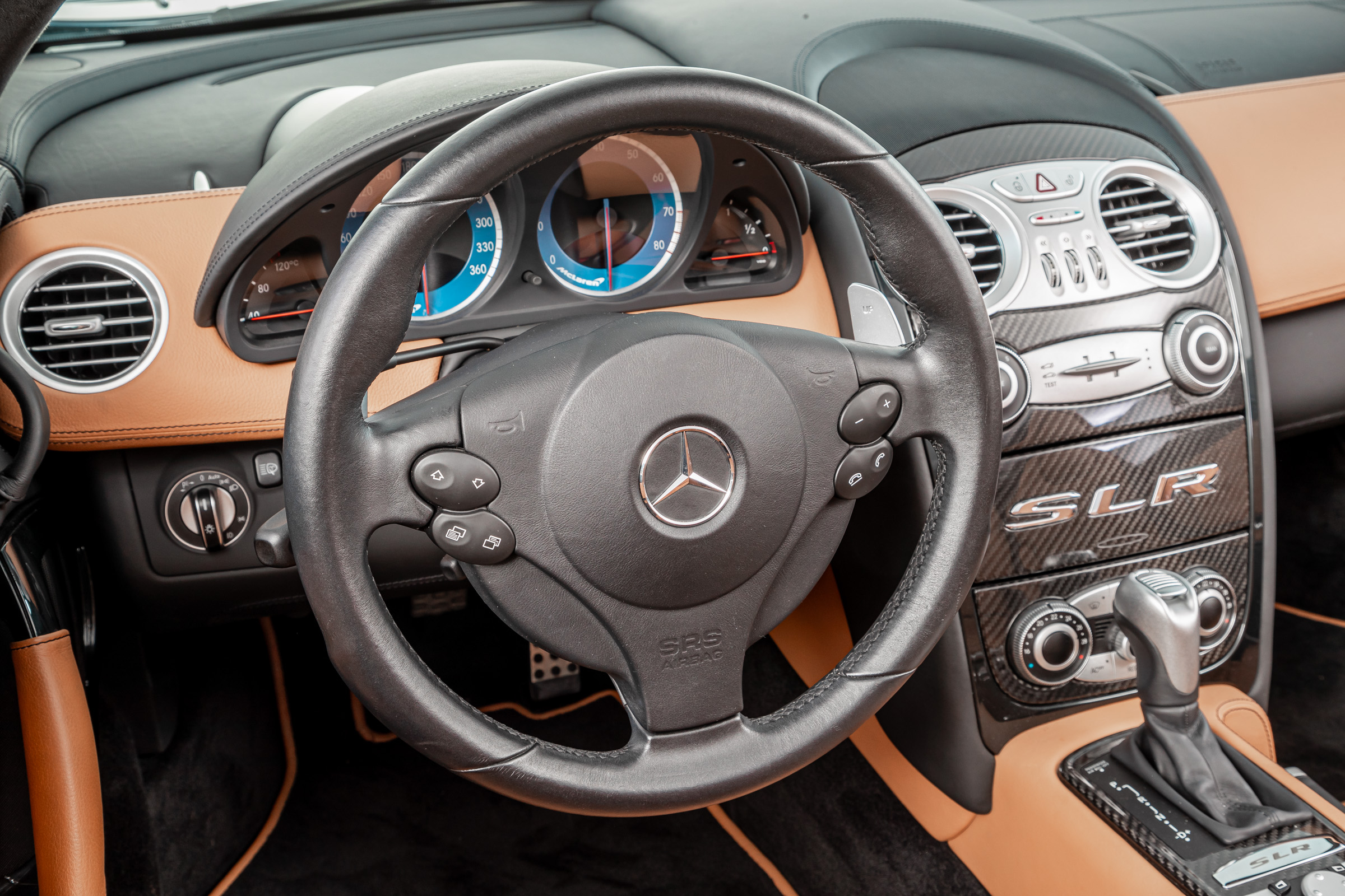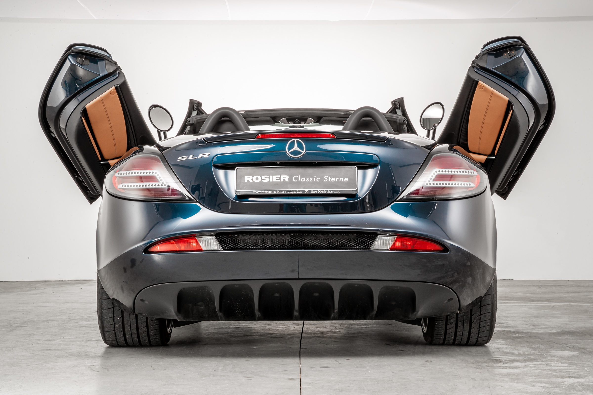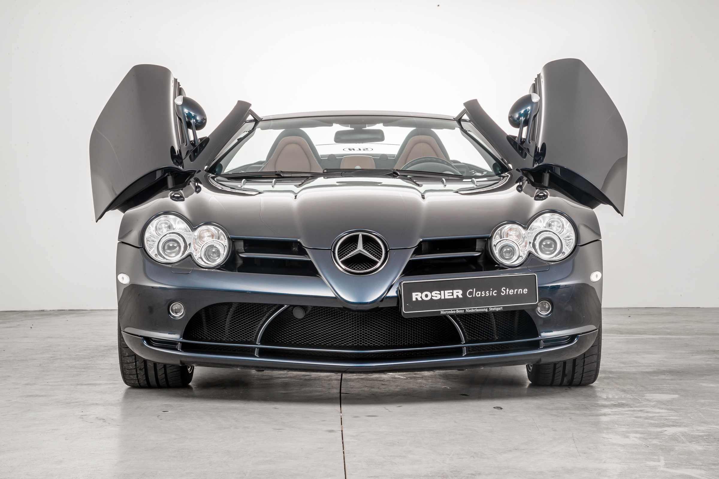 Traumhafter Ausnahme Mercedes-Benz SLR Roadster in seltener Farbkombination (Crystal Blue Metallic/Leder Silberpfeil Beige), deutsches Fahrzeug aus zweiter Hand mit nur 3.100 km und Mehrwertsteuerwausweis, absolutes Sammlerstück