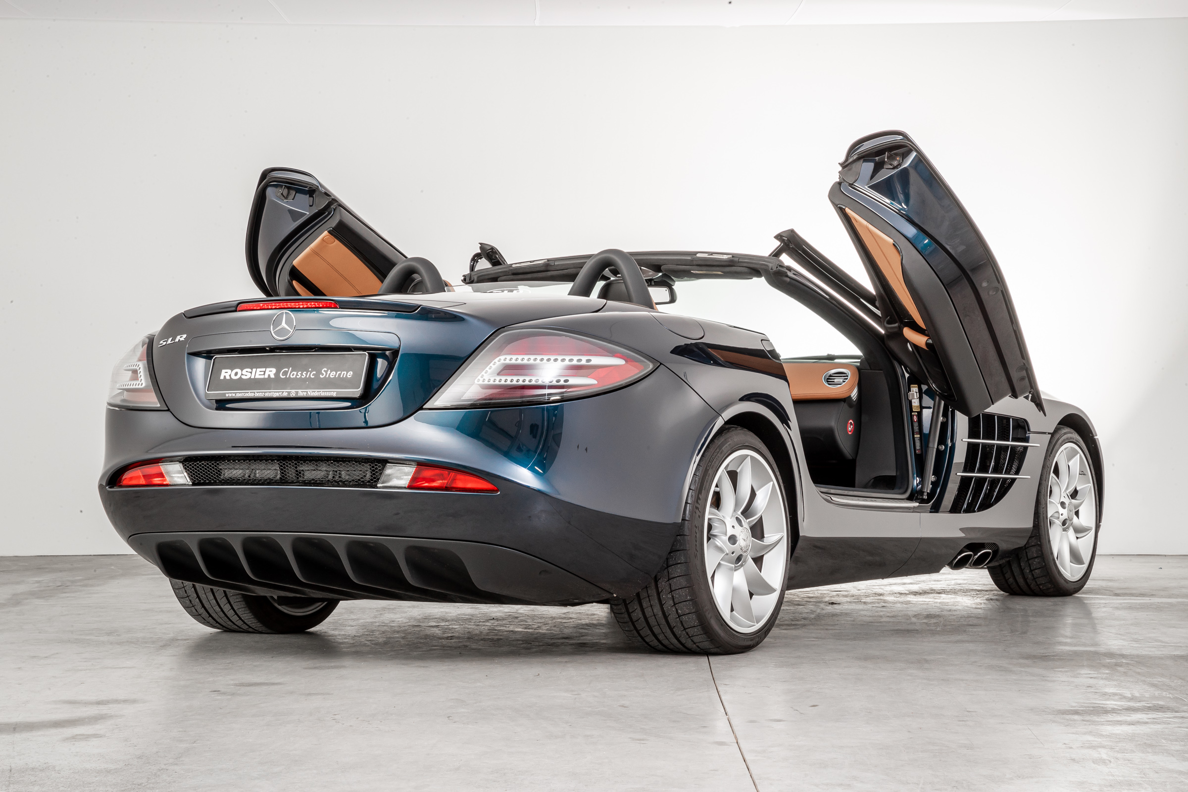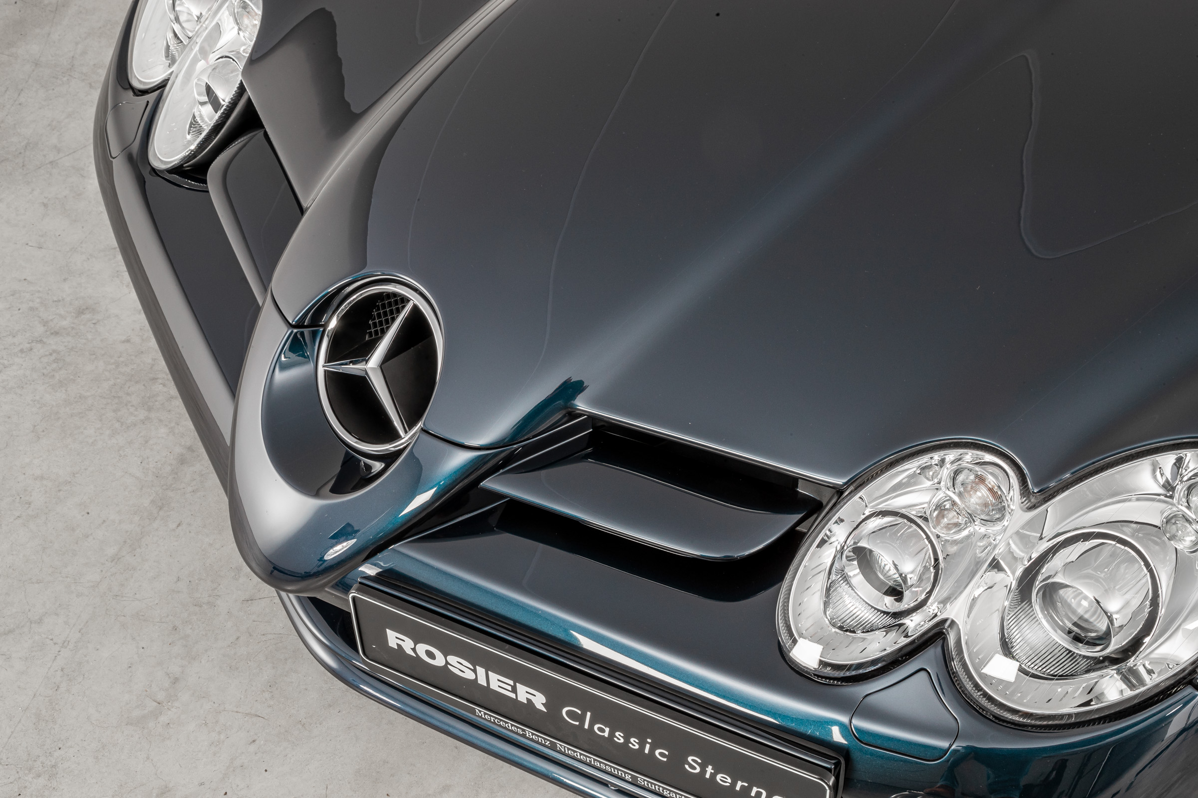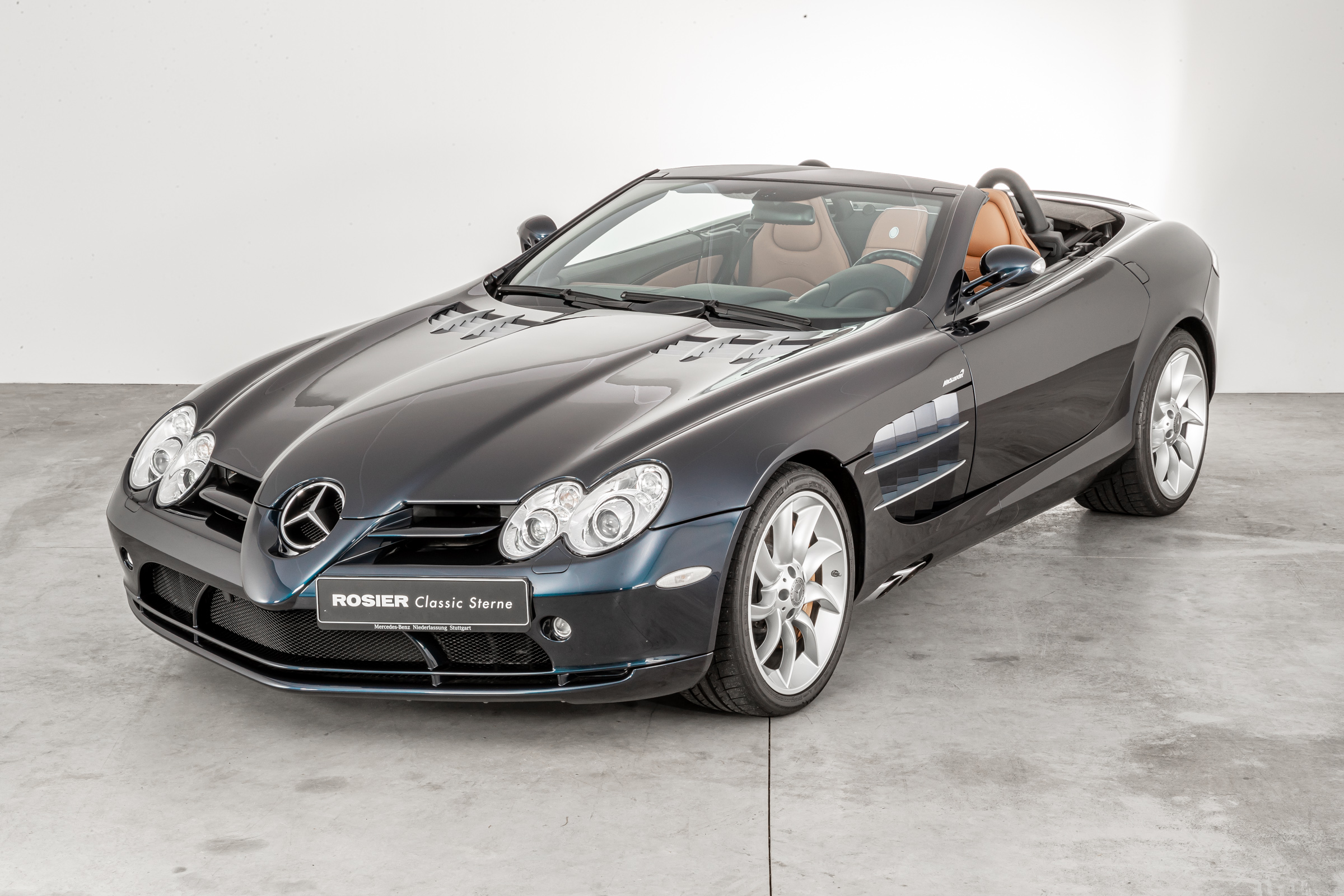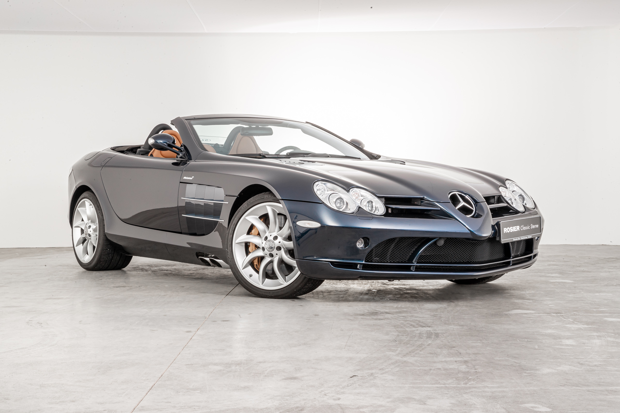 Traumhafter Ausnahme Mercedes-Benz SLR Roadster in seltener Farbkombination (Crystal Blue Metallic/Leder Silberpfeil Beige), deutsches Fahrzeug aus zweiter Hand mit nur 3.100 km und Mehrwertsteuerwausweis, absolutes Sammlerstück