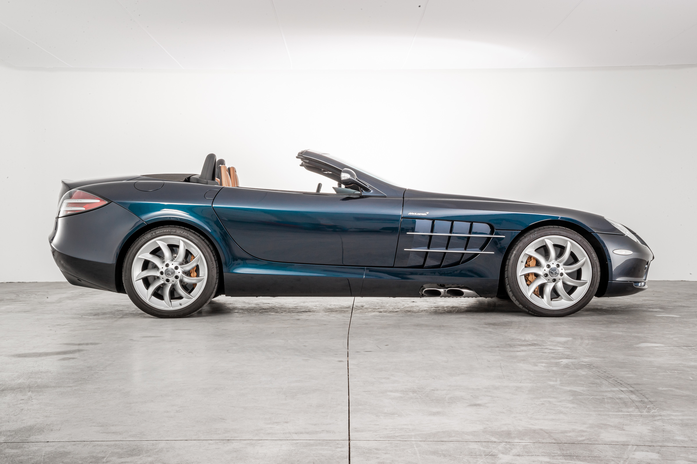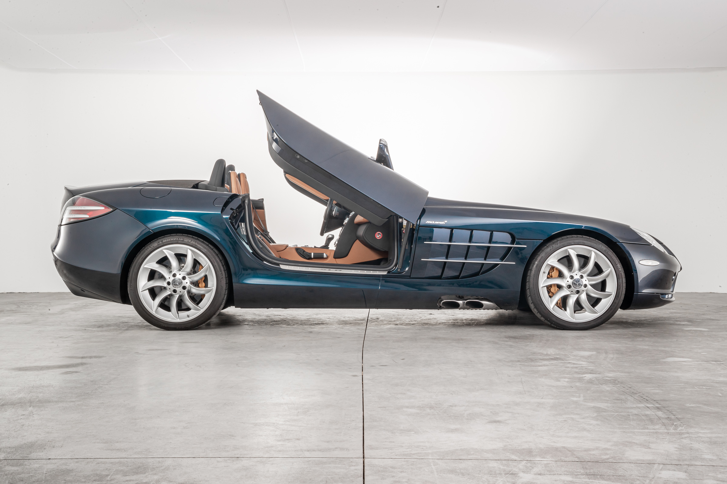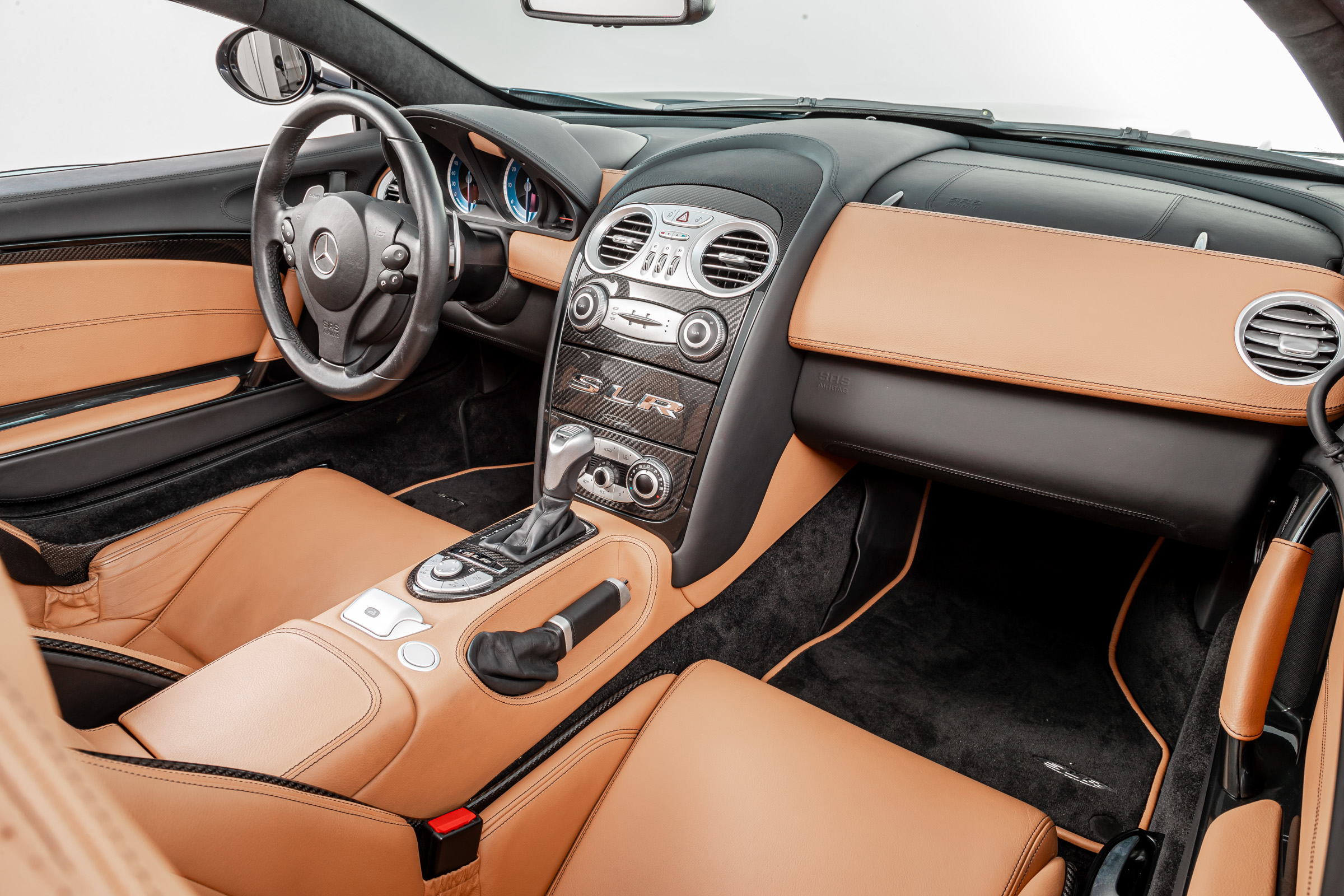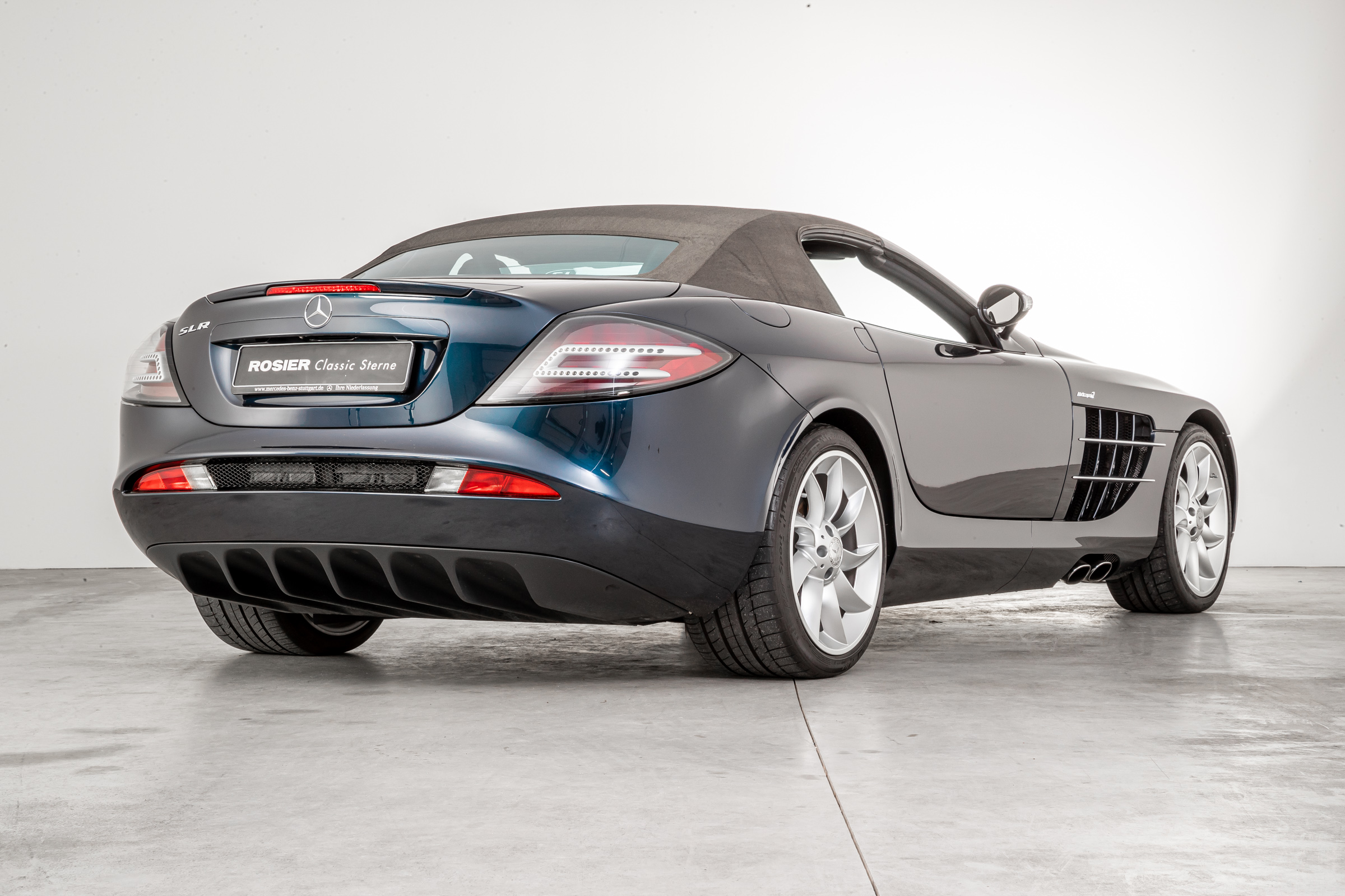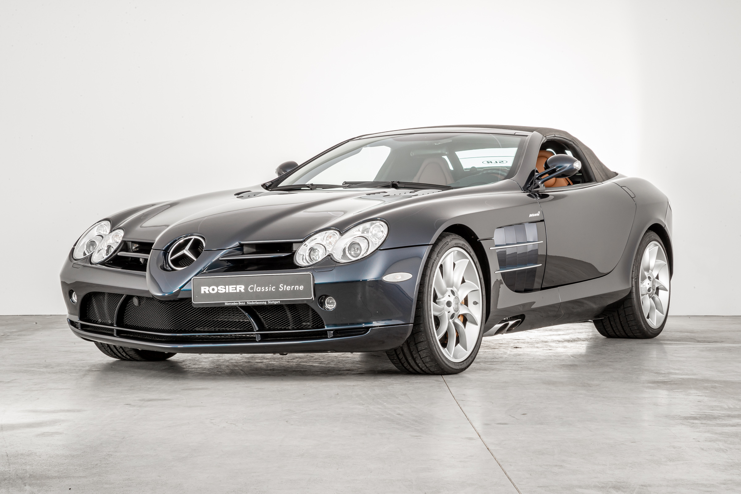 Traumhafter Ausnahme Mercedes-Benz SLR Roadster in seltener Farbkombination (Crystal Blue Metallic/Leder Silberpfeil Beige), deutsches Fahrzeug aus zweiter Hand mit nur 3.100 km und Mehrwertsteuerwausweis, absolutes Sammlerstück