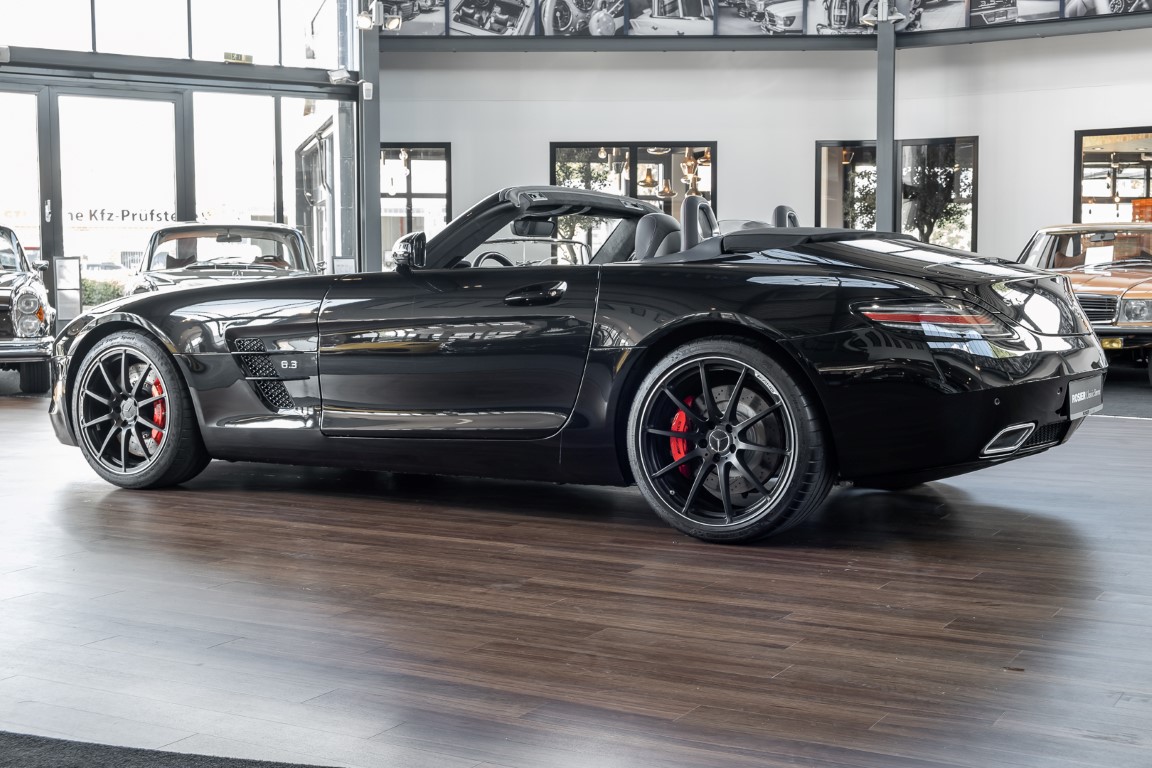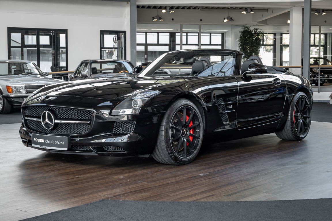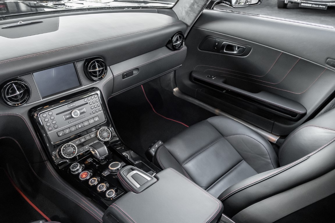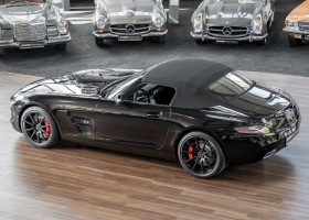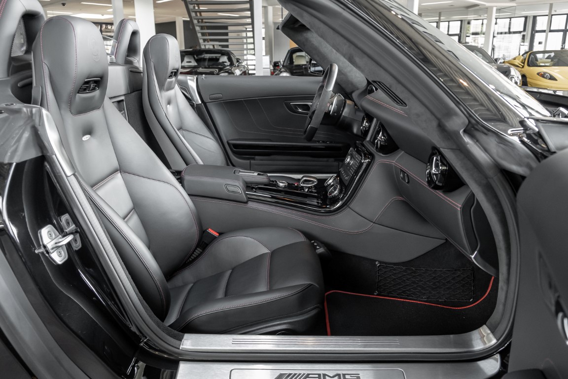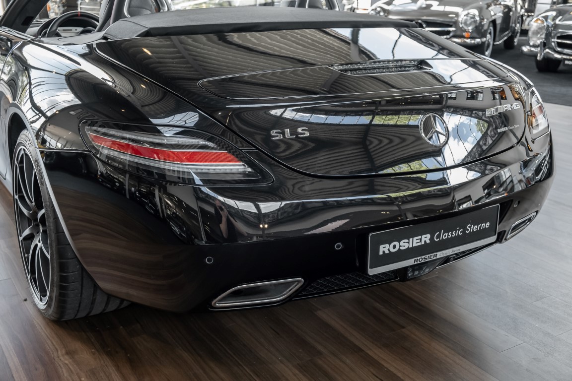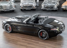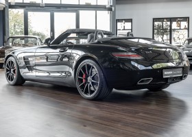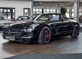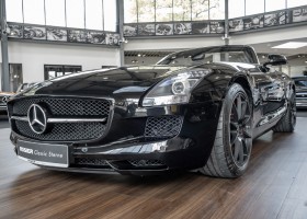 Im Herbst 2011 wurde die Roadster Variante des SLS auf der IAA in Frankfurt vorgestellt. Der Name SLS bedeutet: „Sport Leicht Super“. Der SLS ist das erste von AMG eigenständig entwickelte Fahrzeug. Ein einzelner Spezialist ist damit beschäftigt den Motor von Hand zusammenzusetzen. Auf einer eigens angebrachten Plakette „bürgt“ seine eingravierte Unterschrift für die von Ihm geleistete Qualitätsarbeit. Gebaut wird das Fahrzeug im Werk Sindelfingen. DER SLS AMG GT ist eine überarbeitete Variante des SLS AMG, dessen Motorleistung auf 435 Kw/591PS gesteigert wurde. Das AMG Ride Control Performance Fahrwerk und das Speedshift Automatikgetriebe wurden verbessert. Optische Änderungen durch abgedunkelte Scheinwerfer und Rückleuchten und ein GT-Emblem am Heck sollten den SLS AMG GT nach außen kenntlich machen. Das Interieur wurde mit Alcantara-Streifen auf den Sitzen, roten Nähten und schwarzen Hochglanz-Zierteilen verfeinert. Die Bauzeit war von 10.2012 bis 06.2014. Schon kurz nach Produktionsende der GT-Version stieg die Nachfrage in Sammlerkreisen enorm an. Die Listenpreise wurden schnell überboten. Heute ist ein GT mit wenigen Kilometern so gut wie nicht zu bekommen. Wir freuen uns sehr, Ihnen eines dieser seltenen Fahrzeuge hier anbieten zu können. Nach den bisherigen Erfahrungen ist neben bestem Werterhalt auch ein interessanter Wertzuwachs zu erwarten.