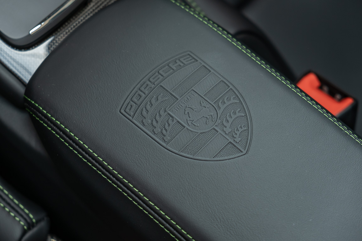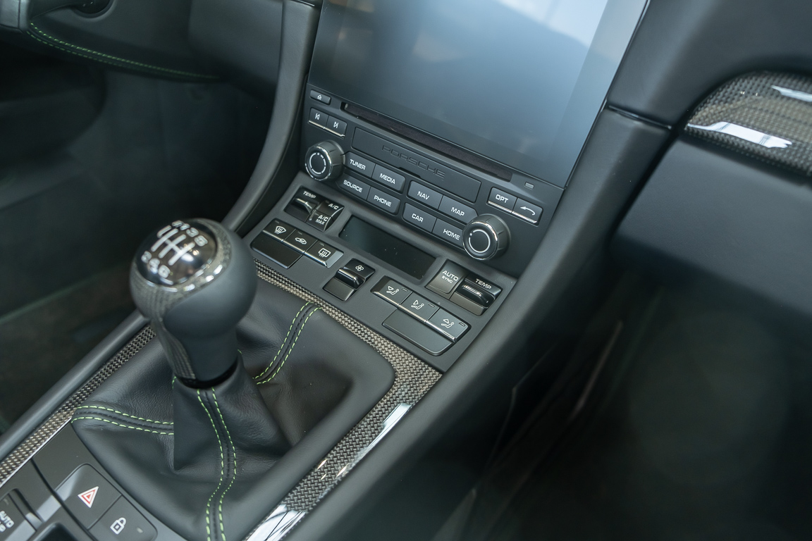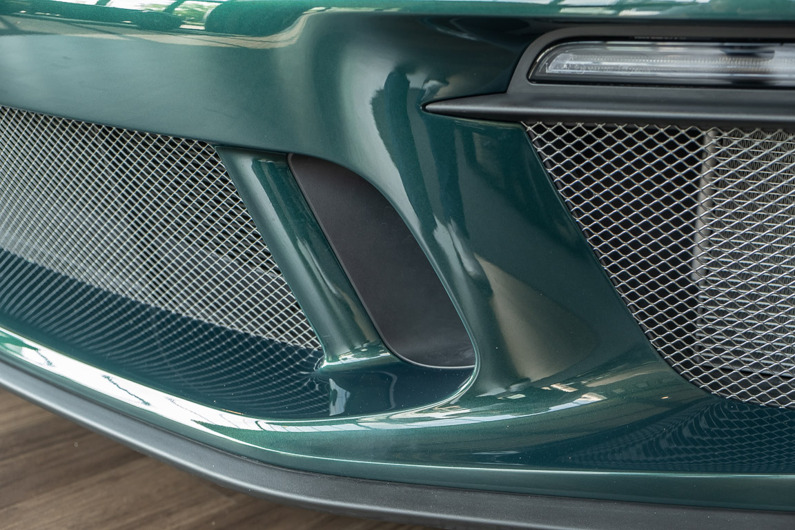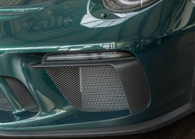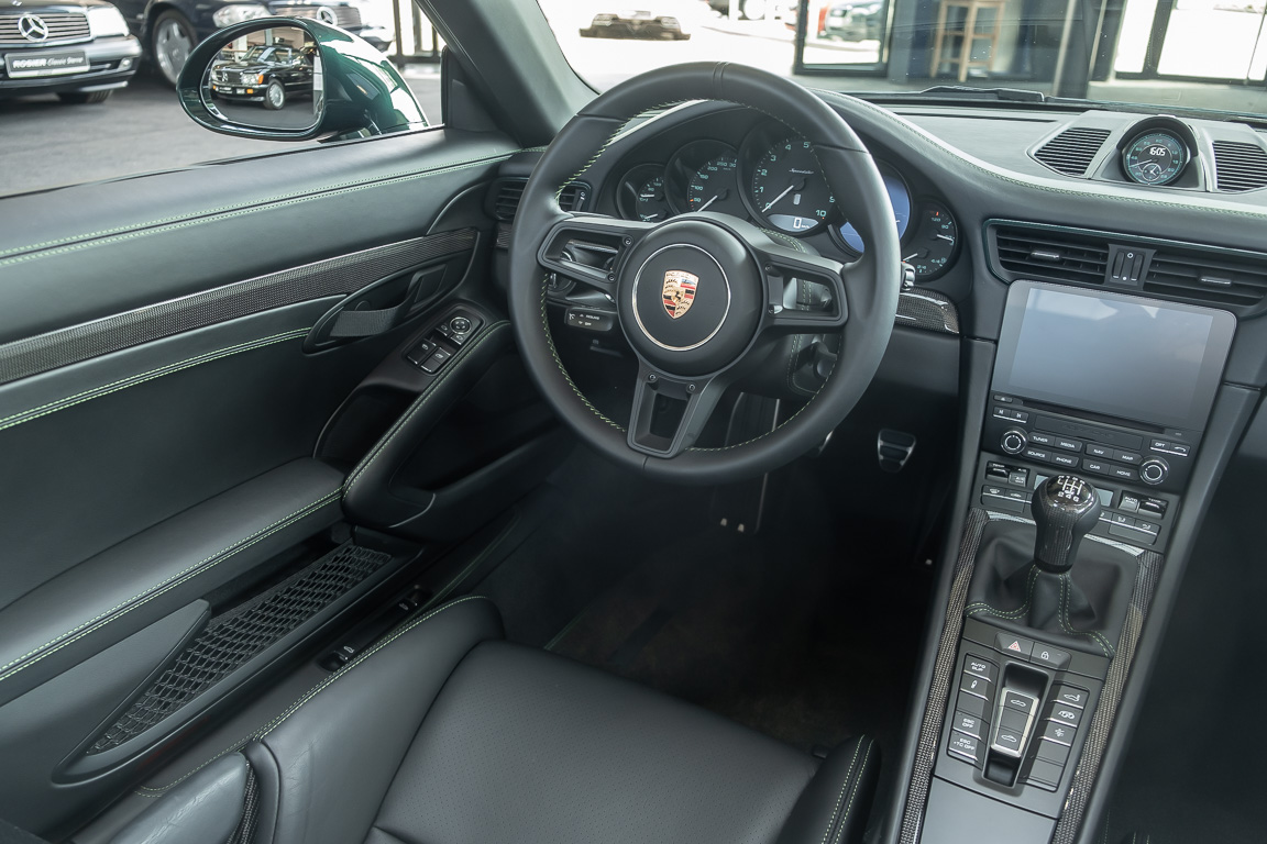 - Luftdüsen lackiert - Rahmen lackiert in Porsche Racinggreen Metallic Lamellen in Leder schwarz