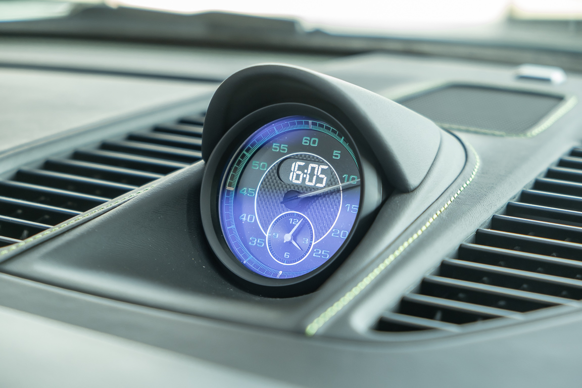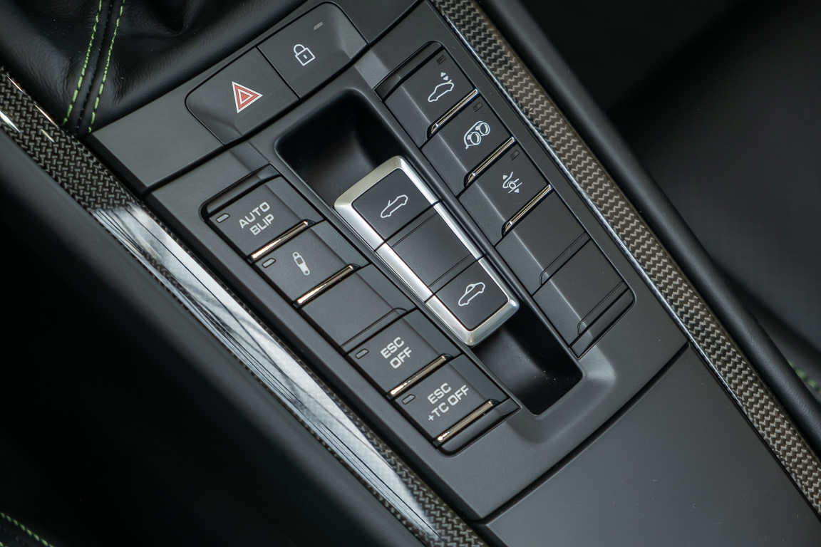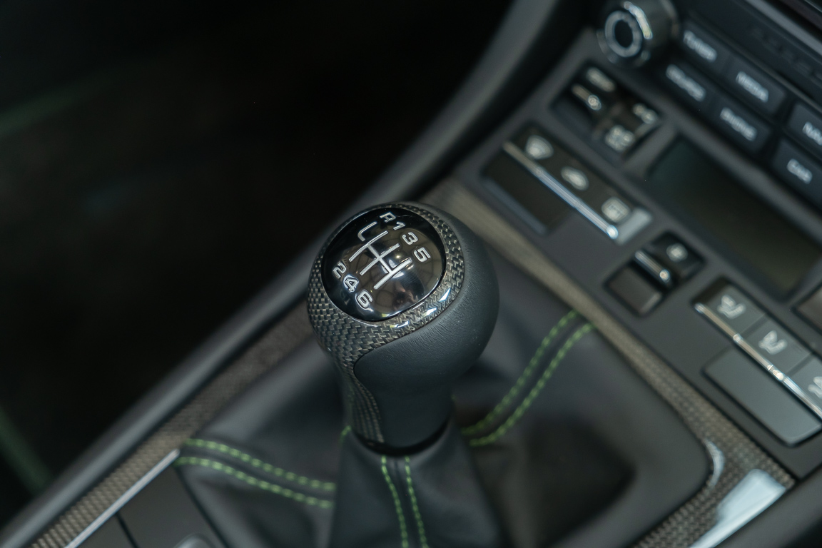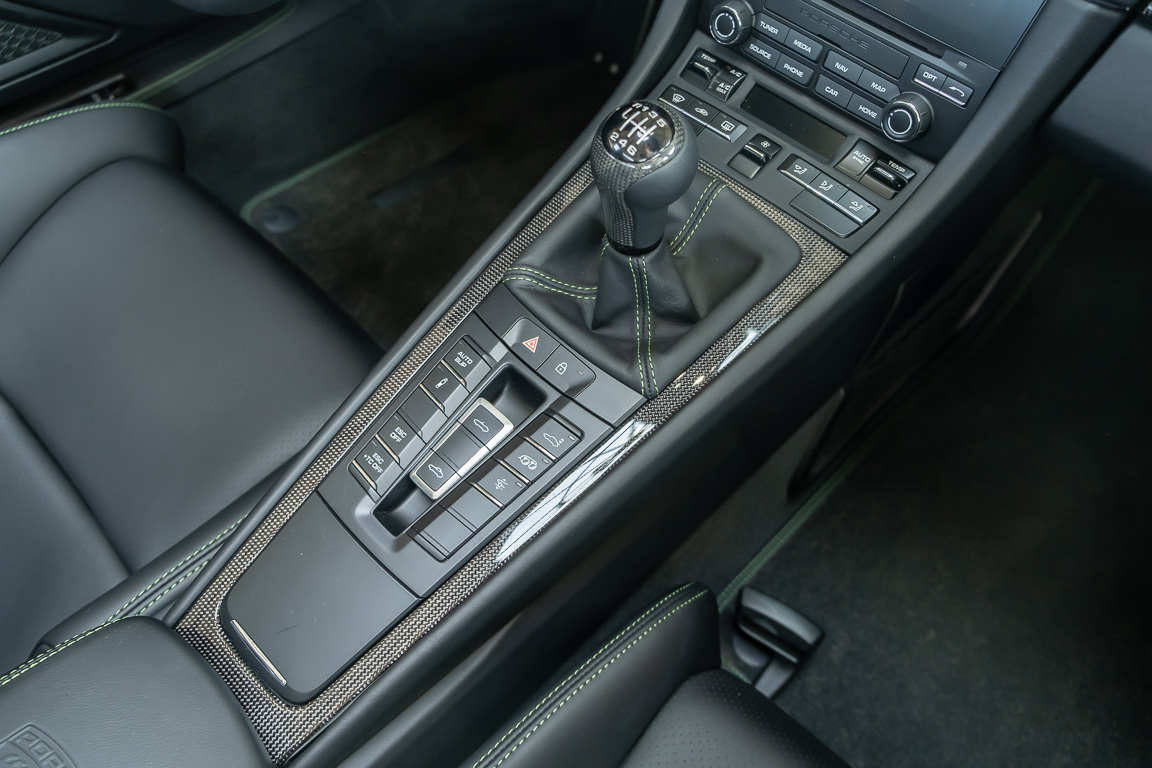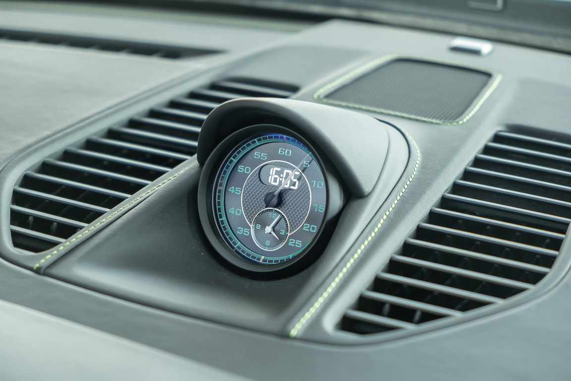 - Luftdüsen lackiert - Rahmen lackiert in Porsche Racinggreen Metallic Lamellen in Leder schwarz