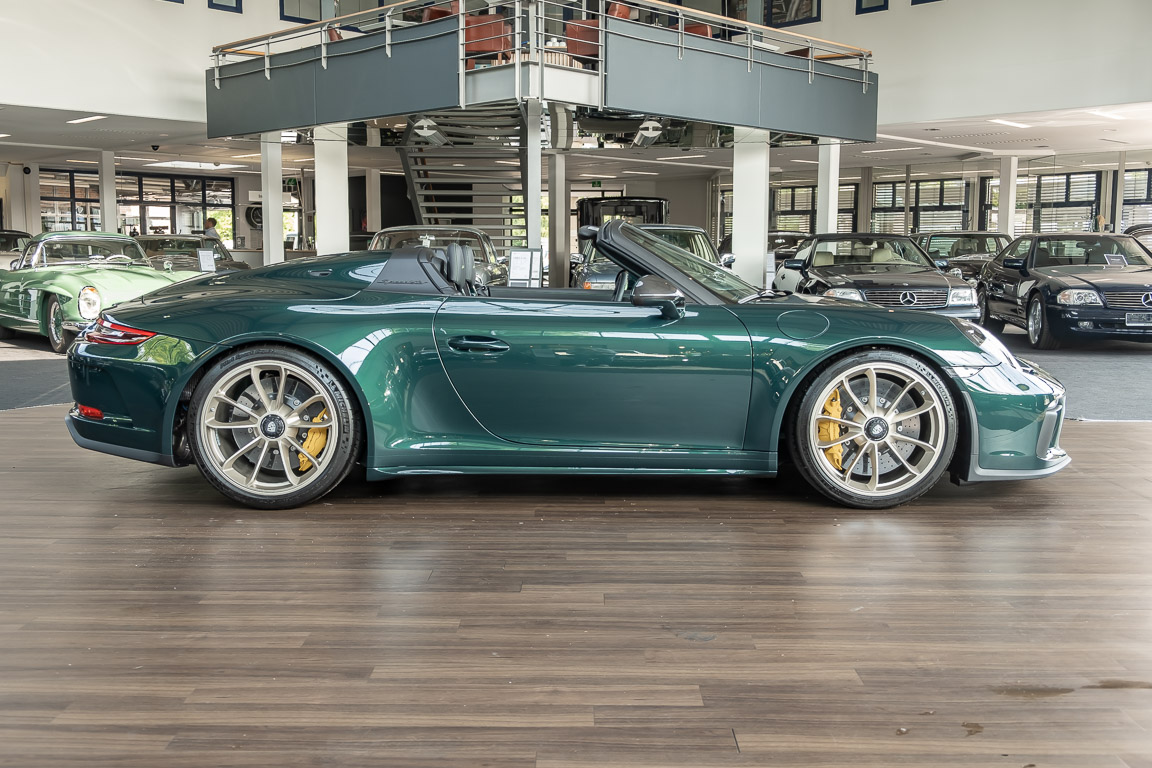 Wir freuen uns, Ihnen diesen ganz besonderen Vertreter der Baureihe 991 anbieten zu können. In der Speedster-Version der Zuffenhausener Sportwagenschmiede kommt die legendäre 911er-Form wohl in seiner schönsten Vollendung zur Geltung. Limitiert auf 1948 Fahrzeuge – in Anlehnung an das erste Serienfahrzeuges von Porsche aus dem Jahre 1948, dem Porsche 357 – setzt Porsche dem 911 ein weiteres Denkmal, das von seinen Liebhabern händeringend erwartet wurde. Als Höhe- und Schlusspunkt der Baureihe 991 spendierte Porsche 510 PS Leistung, eine Handschaltung und den Verzicht auf allzu viel Komfortzubehör. Das Ergebnis ist eine traumhafte Hommage an vergangene 911er. Das Fahrzeug stammt aus erster Hand und wurde als Sammlerobjekt gehegt und gepflegt. Steigen Sie ein und erfahren Sie diese Ikone.