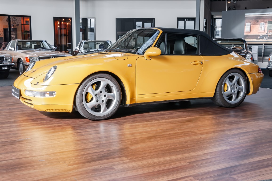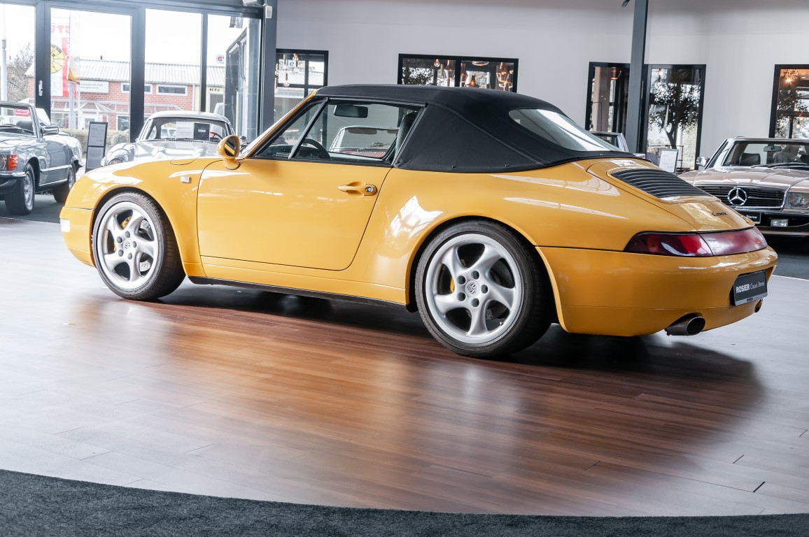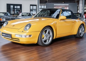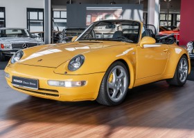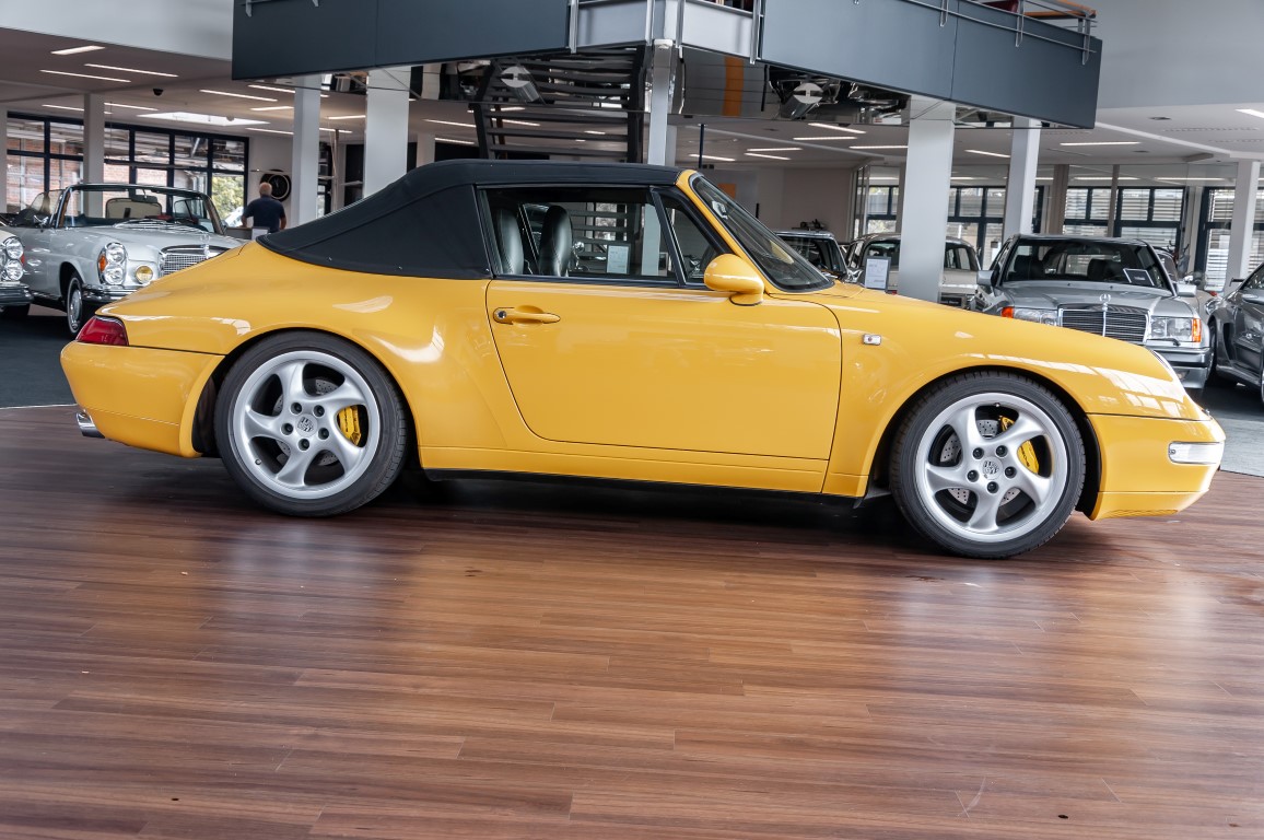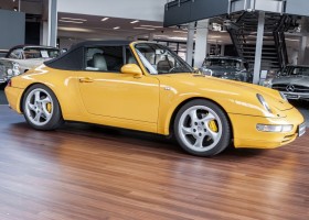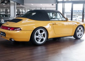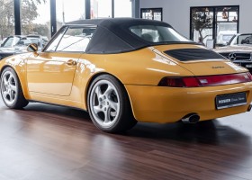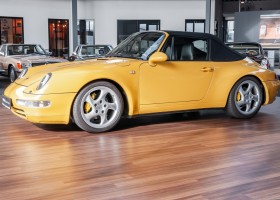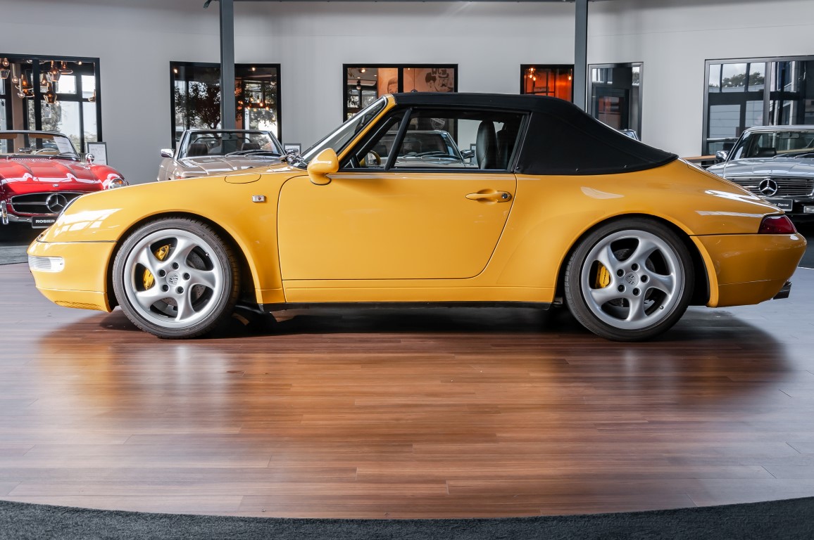 Dieses Porsche 993 Cabriolet wurde am 20. Februar 1995, in sportlichem Speedgelb und schwarzer Lederausstattung, an seinen Erstbesitzer im Bayrischen Germeringen ausgeliefert. Bei Ihm verblieb der Wagen die nächsten rund 14 Jahre. Etwa 80.000 km hatte er gelaufen und wurde bestens gepflegt. Etwa in 2010 fand er ein neues Zuhause in der malerischen Bodeseeregion, oberhalb von Lindau. Dort erwarb ihn sein bis heute letzter Besitzer für seine sorgfältig ausgewählte Sportwagensammlung.