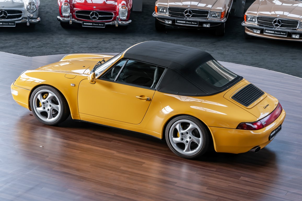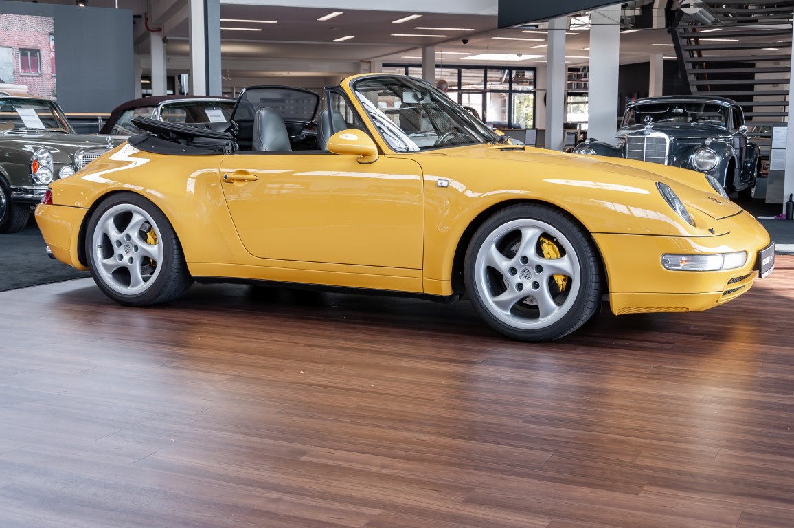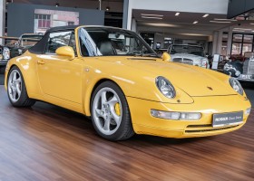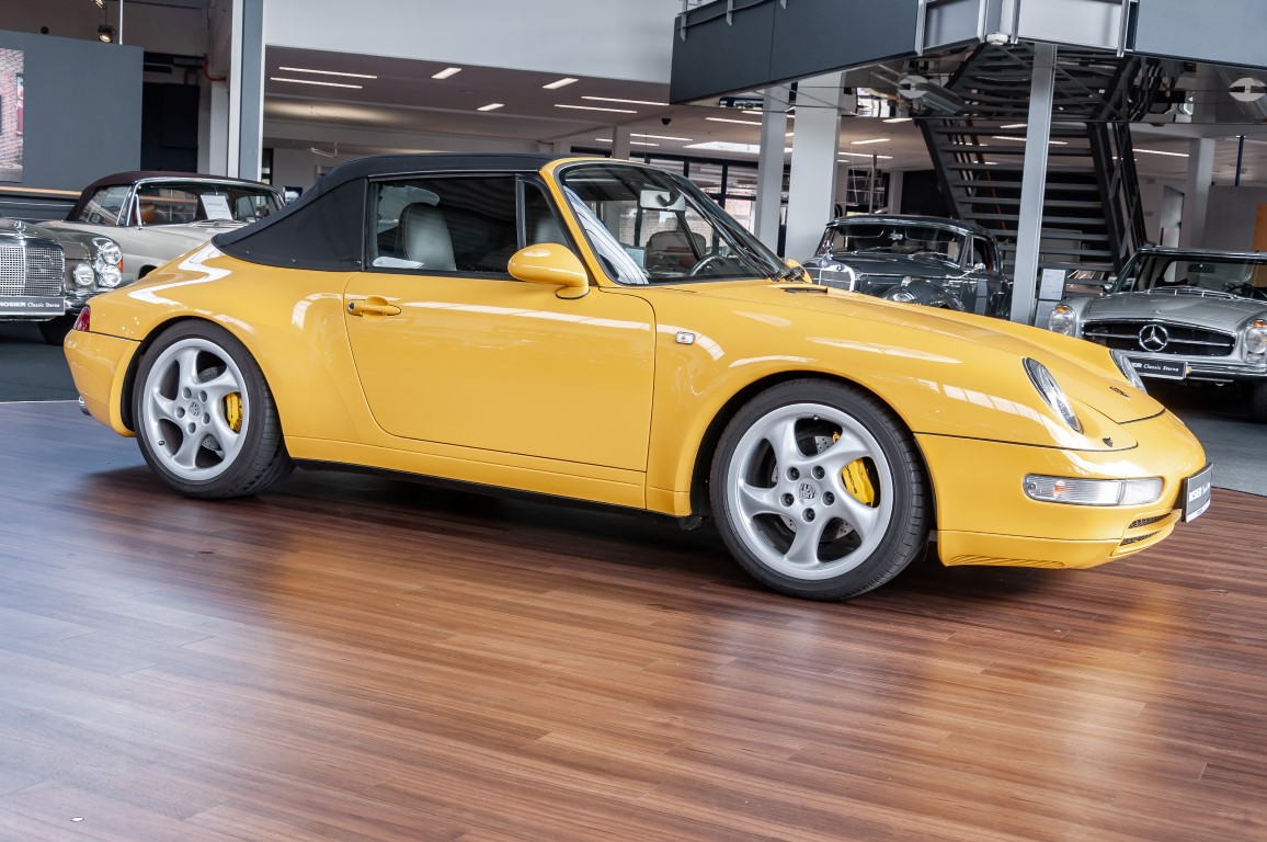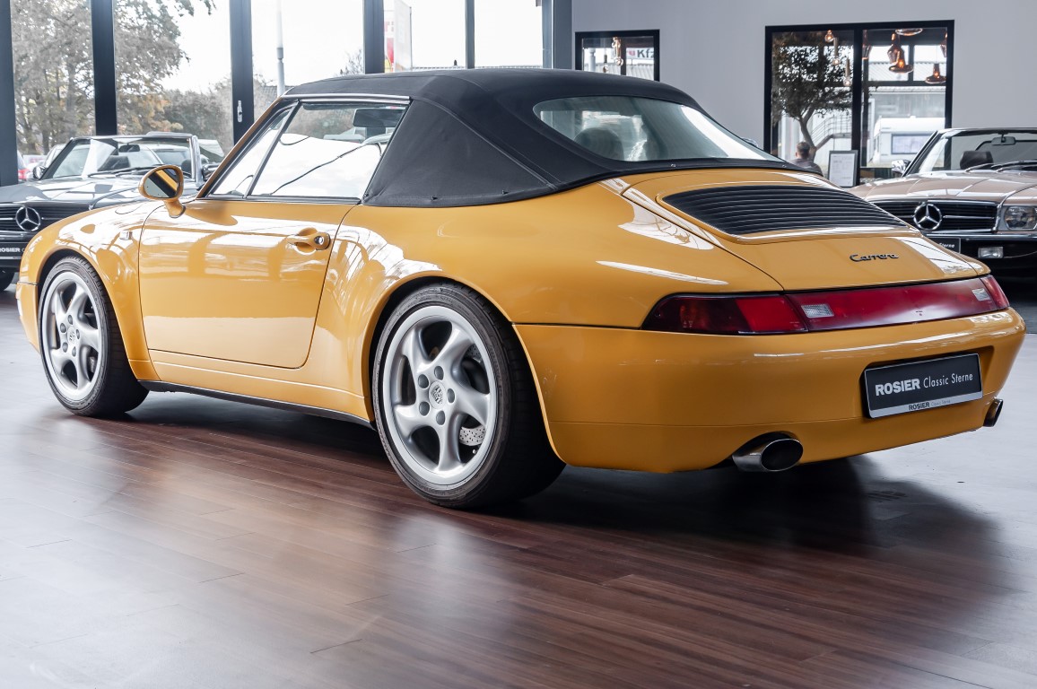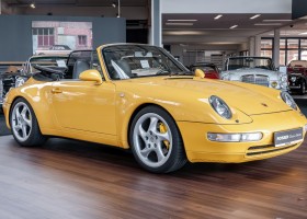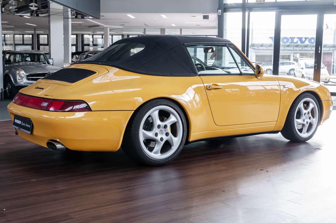 Dieses Porsche 993 Cabriolet wurde am 20. Februar 1995, in sportlichem Speedgelb und schwarzer Lederausstattung, an seinen Erstbesitzer im Bayrischen Germeringen ausgeliefert. Bei Ihm verblieb der Wagen die nächsten rund 14 Jahre. Etwa 80.000 km hatte er gelaufen und wurde bestens gepflegt. Etwa in 2010 fand er ein neues Zuhause in der malerischen Bodeseeregion, oberhalb von Lindau. Dort erwarb ihn sein bis heute letzter Besitzer für seine sorgfältig ausgewählte Sportwagensammlung.