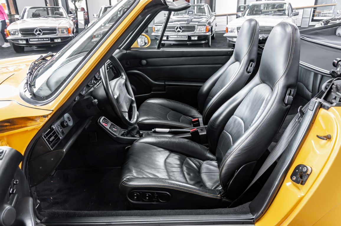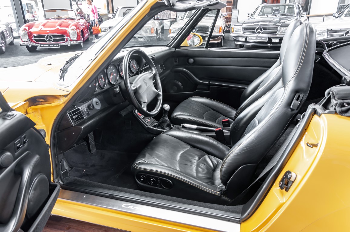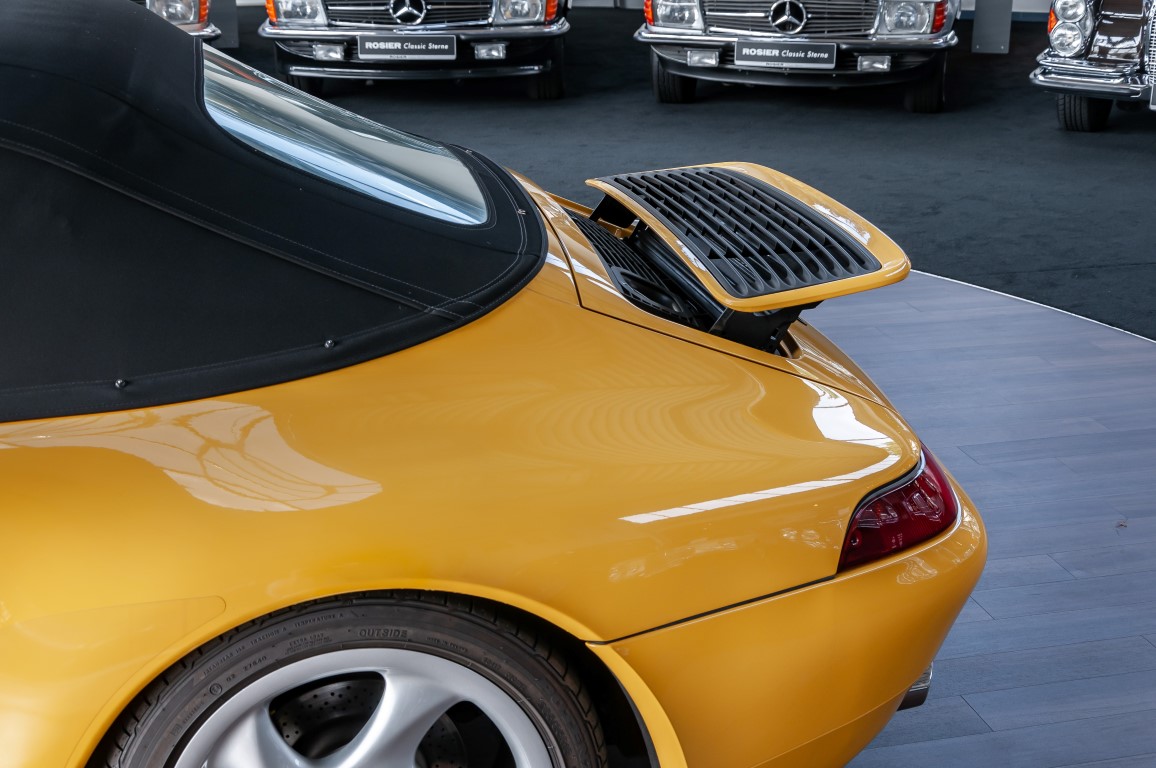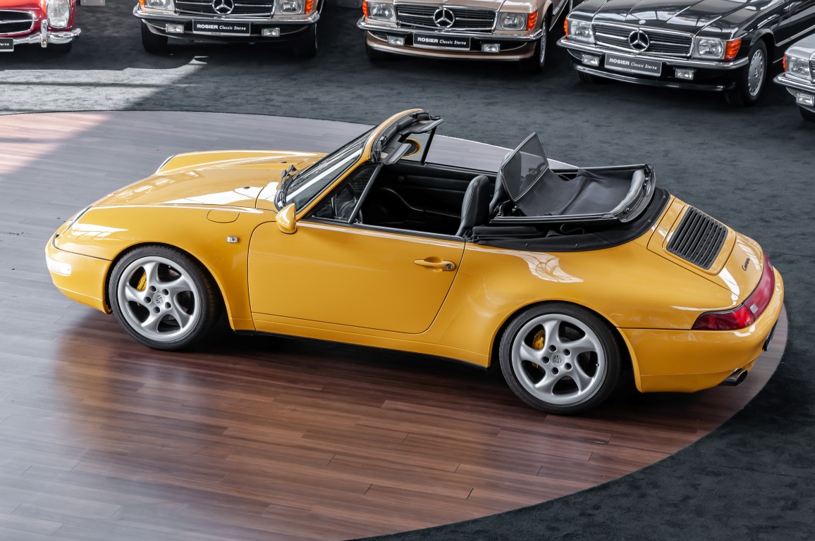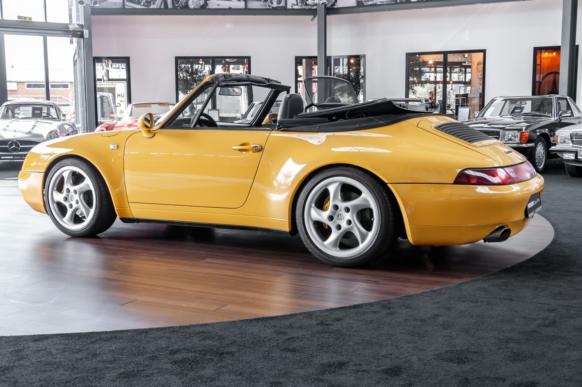 Dieses Porsche 993 Cabriolet wurde am 20. Februar 1995, in sportlichem Speedgelb und schwarzer Lederausstattung, an seinen Erstbesitzer im Bayrischen Germeringen ausgeliefert. Bei Ihm verblieb der Wagen die nächsten rund 14 Jahre. Etwa 80.000 km hatte er gelaufen und wurde bestens gepflegt. Etwa in 2010 fand er ein neues Zuhause in der malerischen Bodeseeregion, oberhalb von Lindau. Dort erwarb ihn sein bis heute letzter Besitzer für seine sorgfältig ausgewählte Sportwagensammlung.
