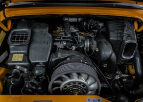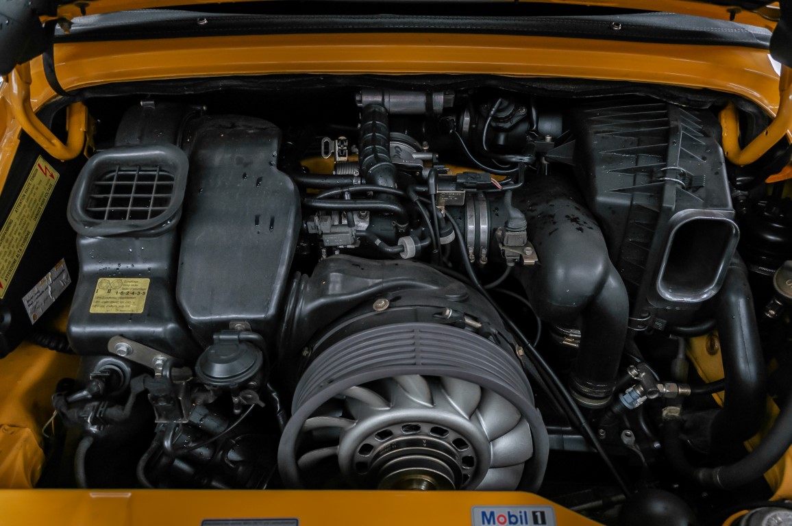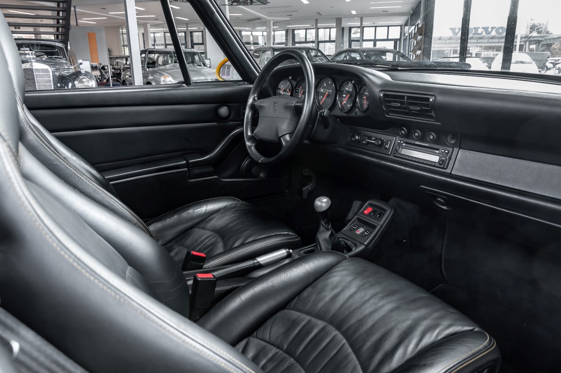 Die Kilometerleistung des Wagens von heute knapp 118.000 km ist nach vorliegenden Hauptuntersuchungsberichten hervorragend nachzuvollziehen. Der Wagen ist ausgerüstet mit einem 3.8 Liter Motor mit 210KW/286 PS, fährt sich kraftvoll und bereitet enorme Fahrfreude. Dank Klappenauspuffanlage und Motorsoundpaket klingt er wie ein dumpfes Gewittergrollen, das sich bei starker Beschleunigung bis zum Brüllen eines Kampfstieres entwickelt. Bei sanftem Gasfuss stellt er nachbarschaftsschonend seine Gentlemanqualitäten in den Vordergrund. Aus Leistungsgründen wurde der ursprüngliche C4 Antrieb auf den C2 üblichen Hinterradantrieb verändert, was das Beschleunigungsverhalten höchst positiv beeinflusst. Lassen Sie sich in seinen Bann ziehen, genießen Sie bei offenem Verdeck das große Konzert des leistungsstarken Porsche 6 Zylinder Boxermotors und werden Sie eins mit Straße und Sportwagen. Die heute so gesuchte 993 Serie war der letzte luftgekühlte „Elfer“ und hat heute in Porsche Kreisen „Kultstatus“.