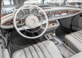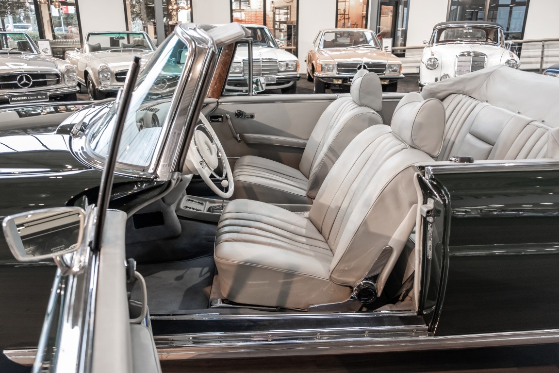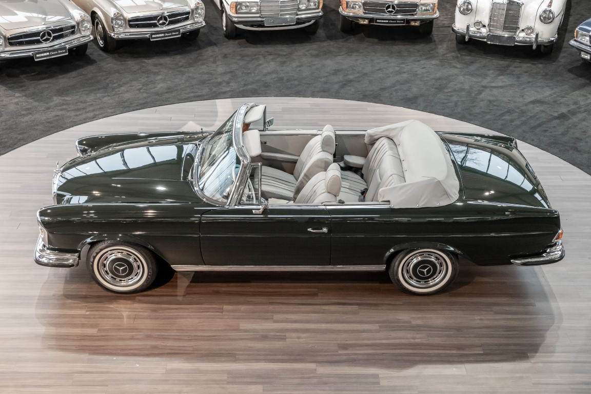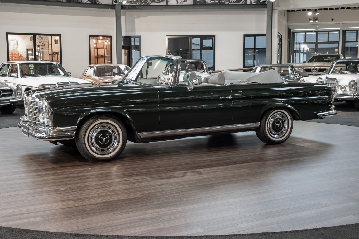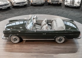 Ein S-Klasse Cabriolet aus dem Hause Mercedes-Benz gehört seit jeher zu den ganz besonders exklusiven Fahrzeugen in der ganzen Welt. Das hier angebotene Mercedes-Benz 280SE Cabriolet entstammt der so begehrten Flachkühler Serie von der nur etwa 1.390 Fahrzeuge gebaut wurden. Der Mercedes Händler aus Los Angeles in Kalifornien USA, hatte den Wagen geschmackvoll zusammengestellt und im Mercedes-Benz Werk bestellt. Schlichtweg eine Augenweide in elegantem Dunkelolivgrün und grauem Leder Interieur wurde geliefert. Ganz im Stil und Geschmack der vermögenden Käuferklientel. Schnell fand der Wagen einen Abnehmer, der mit ihm für die nächsten Jahre durch das sonnige Kalifornien cruiste. In 1989 kam er wohl in den Besitz von Elizabeth „Betsy“ Asher, einer Insiderin der Musikindustrie und Tochter aus gutem Hause. Sie arbeitete als Publizistin, war ein selbsternannter politischer Nachrichtenjunkie, widmete sich leidenschaftlich dem Tierschutz und kannte viele bestens bekannte Musiker und Songwriter der Rockmusik Szene. In 2013 kam das elegante Cabriolet nach Deutschland über ein Handelshaus für klassische Automobile in Rheinland-Pfalz in den Besitz eines Unternehmers aus Niedersachsen. In seinem Besitz wurde der Wagen liebevoll gepflegt und stets in bestem Zustand erhalten. Die letzten Arbeiten erfolgten in unserem Hause in 11.2020 und beinhalteten auch die umfangreiche Überholung des Automatikgetriebes. Nun soll der Wagen ein neues Zuhause bekommen. Eine tolle Chance auf eines der edlen Flachkühler Cabriolets zu interessantem Preis. Wir beraten Sie gerne.