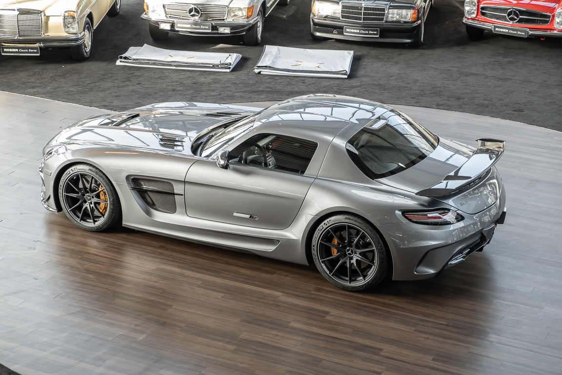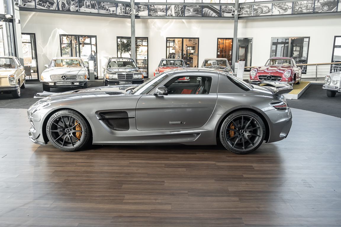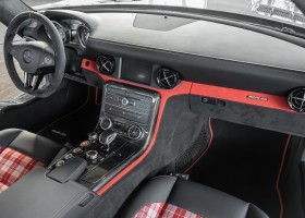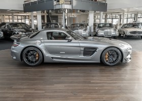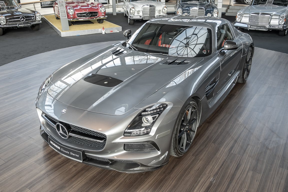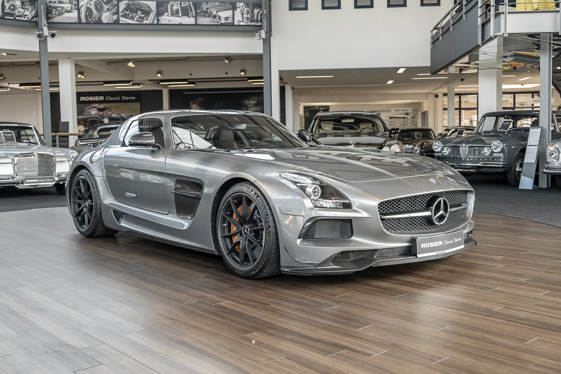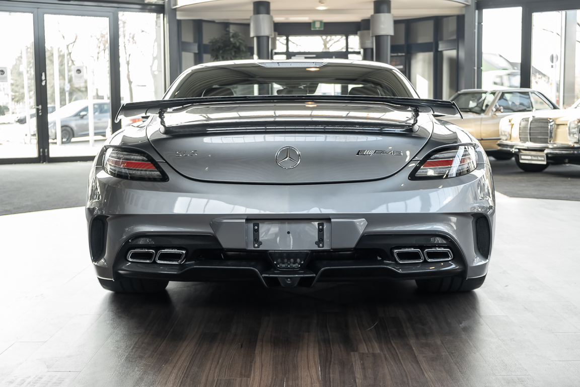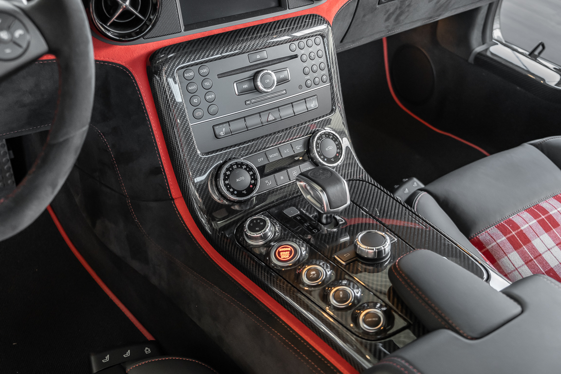 Wir freuen uns, Ihnen diese Sensation anbieten zu können: einen SLS AMG Black Series mit unglaublichen 850 Kilometern Laufleistung! Ein Black Series, dem man ganz ohne Zweifel den Neuwagenstatus attestieren kann – trotz seines Alters von mittlerweile 9 Jahren. Das Fahrzeug besitzt eine deutsche Zulassung wurde aber defakto nur zu Erhaltungsfahrten bewegt. In unserem Hause wurde der Innenraum dieses Flügeltür-Coupés einem sensationellen Finish unterzogen. Mit dem original Karostoff aus dem legendären 300 SL Flügeltürter wurden die Sitze durch unseren Polsterer aufgearbeitet und fügen sich nunmehr perfekt in die rot abgesetzten Details des Innenraums. Ein absoluter Überflieger, dessen Einmaligkeit außer Frage steht. Machen Sie sich ein eigenes Bild und verfallen Sie der Schönheit dieser Sensation!