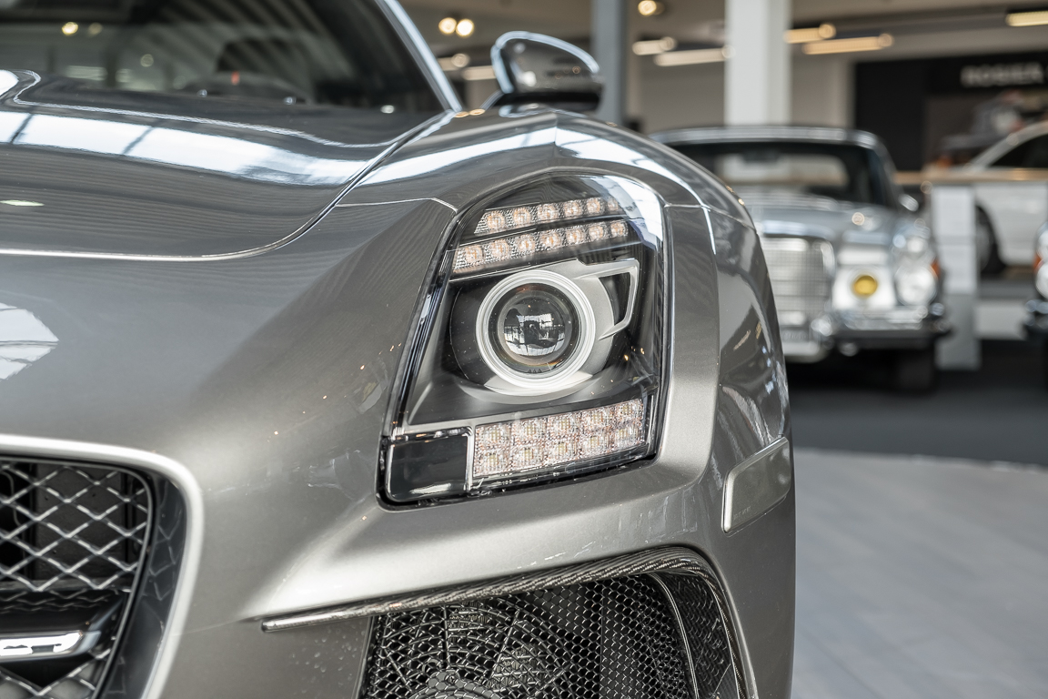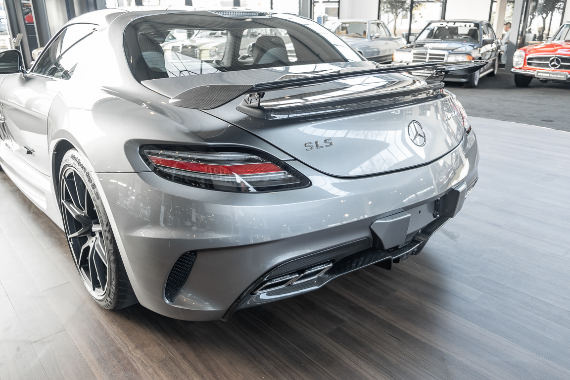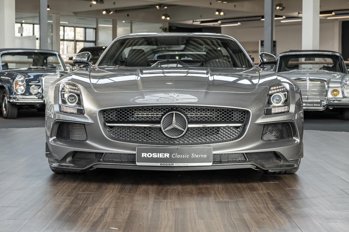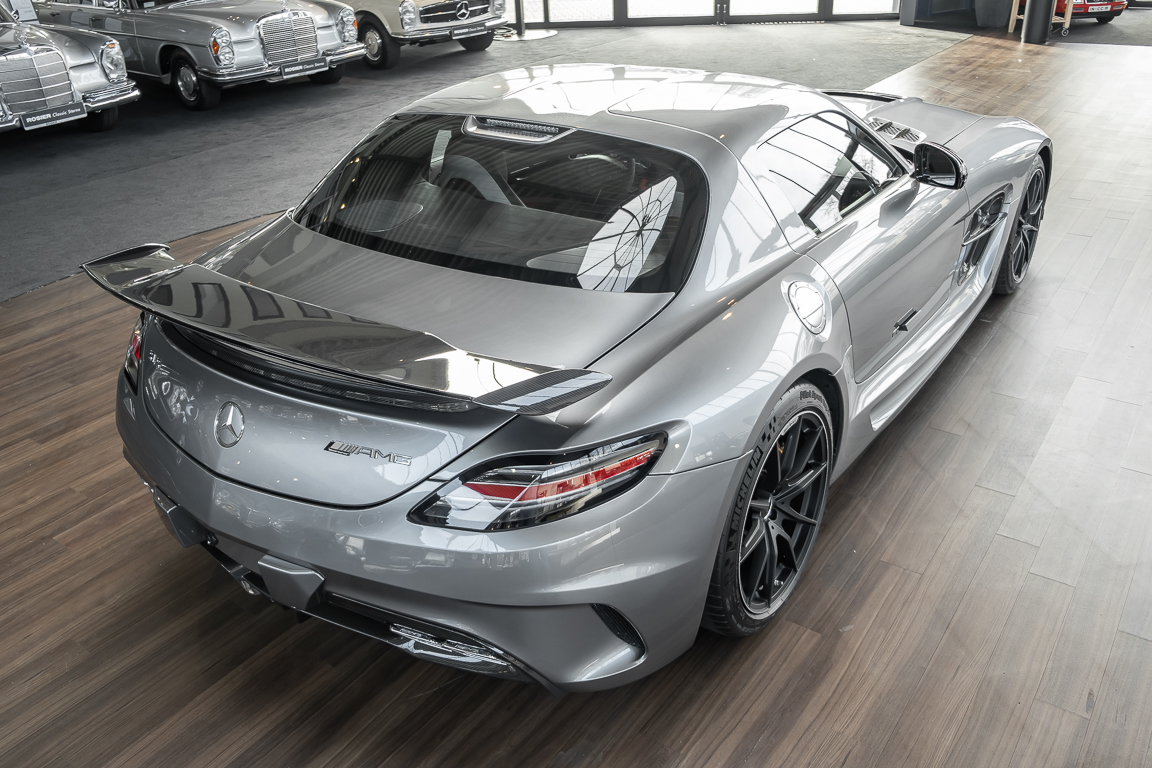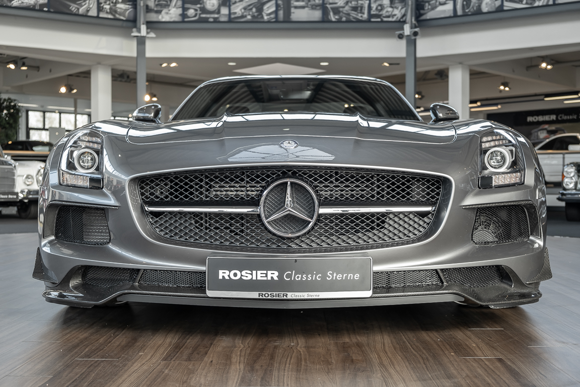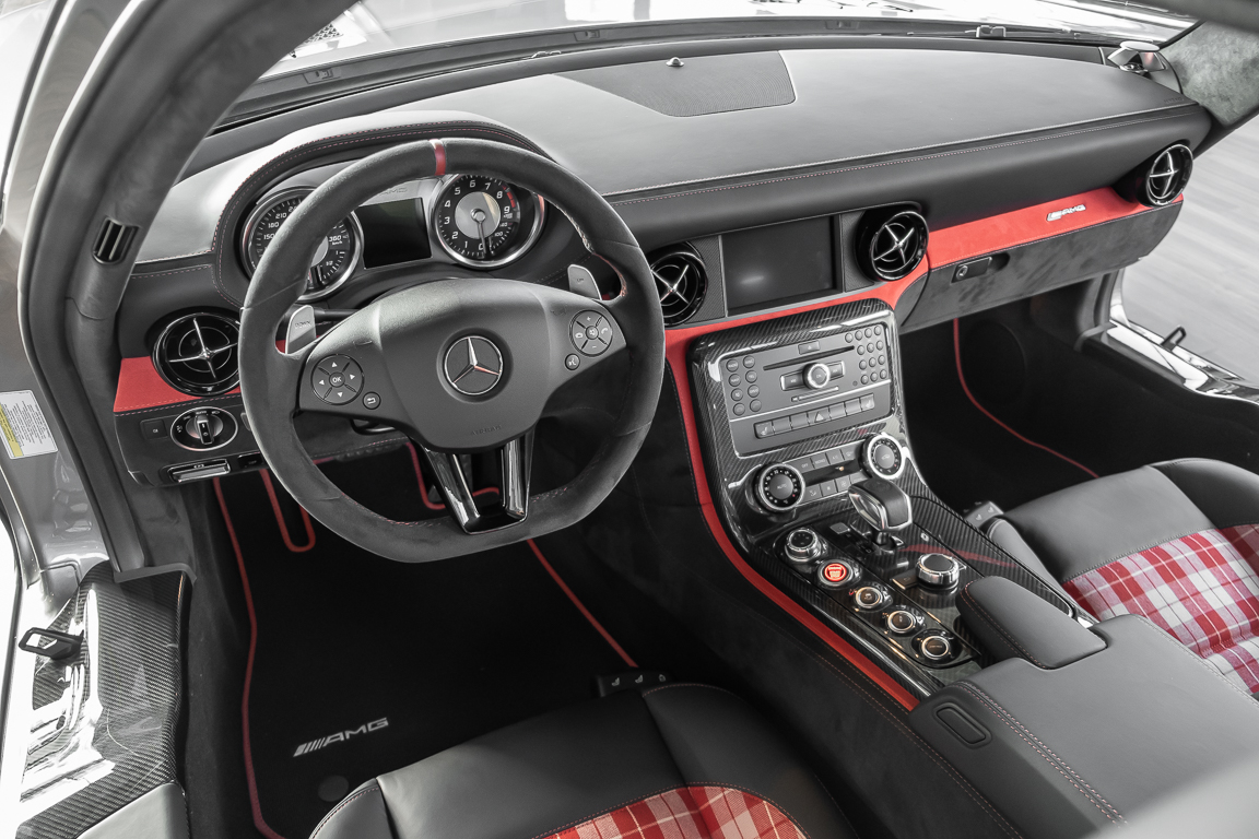 Wir freuen uns, Ihnen diese Sensation anbieten zu können: einen SLS AMG Black Series mit unglaublichen 850 Kilometern Laufleistung! Ein Black Series, dem man ganz ohne Zweifel den Neuwagenstatus attestieren kann – trotz seines Alters von mittlerweile 9 Jahren. Das Fahrzeug besitzt eine deutsche Zulassung wurde aber defakto nur zu Erhaltungsfahrten bewegt. In unserem Hause wurde der Innenraum dieses Flügeltür-Coupés einem sensationellen Finish unterzogen. Mit dem original Karostoff aus dem legendären 300 SL Flügeltürter wurden die Sitze durch unseren Polsterer aufgearbeitet und fügen sich nunmehr perfekt in die rot abgesetzten Details des Innenraums. Ein absoluter Überflieger, dessen Einmaligkeit außer Frage steht. Machen Sie sich ein eigenes Bild und verfallen Sie der Schönheit dieser Sensation!