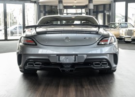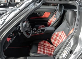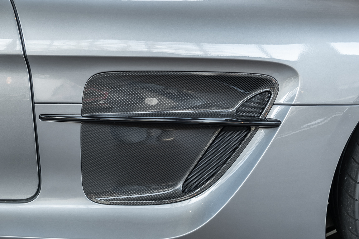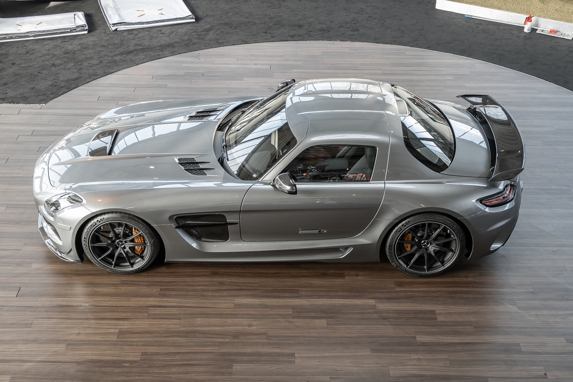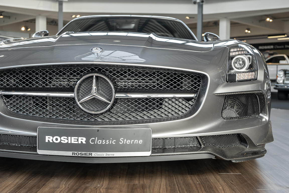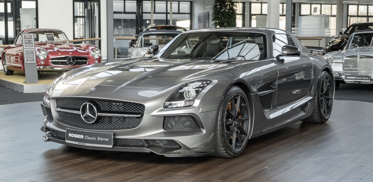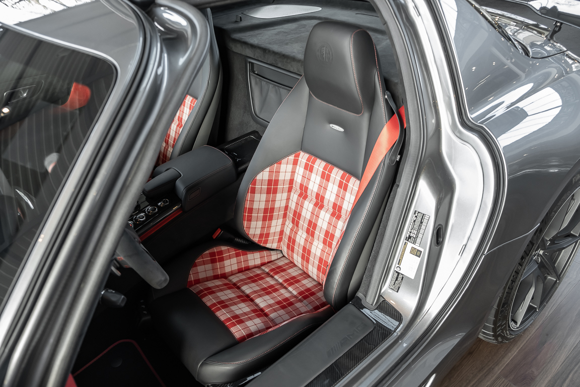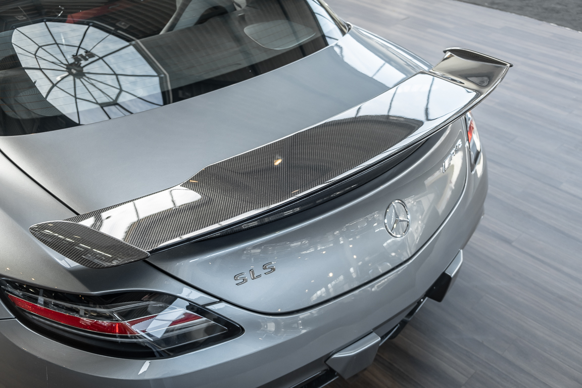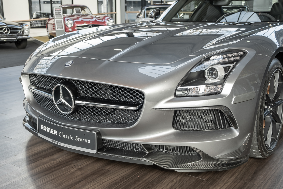 Wir freuen uns, Ihnen diese Sensation anbieten zu können: einen SLS AMG Black Series mit unglaublichen 850 Kilometern Laufleistung! Ein Black Series, dem man ganz ohne Zweifel den Neuwagenstatus attestieren kann – trotz seines Alters von mittlerweile 9 Jahren. Das Fahrzeug besitzt eine deutsche Zulassung wurde aber defakto nur zu Erhaltungsfahrten bewegt. In unserem Hause wurde der Innenraum dieses Flügeltür-Coupés einem sensationellen Finish unterzogen. Mit dem original Karostoff aus dem legendären 300 SL Flügeltürter wurden die Sitze durch unseren Polsterer aufgearbeitet und fügen sich nunmehr perfekt in die rot abgesetzten Details des Innenraums. Ein absoluter Überflieger, dessen Einmaligkeit außer Frage steht. Machen Sie sich ein eigenes Bild und verfallen Sie der Schönheit dieser Sensation!