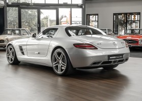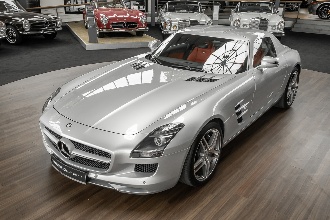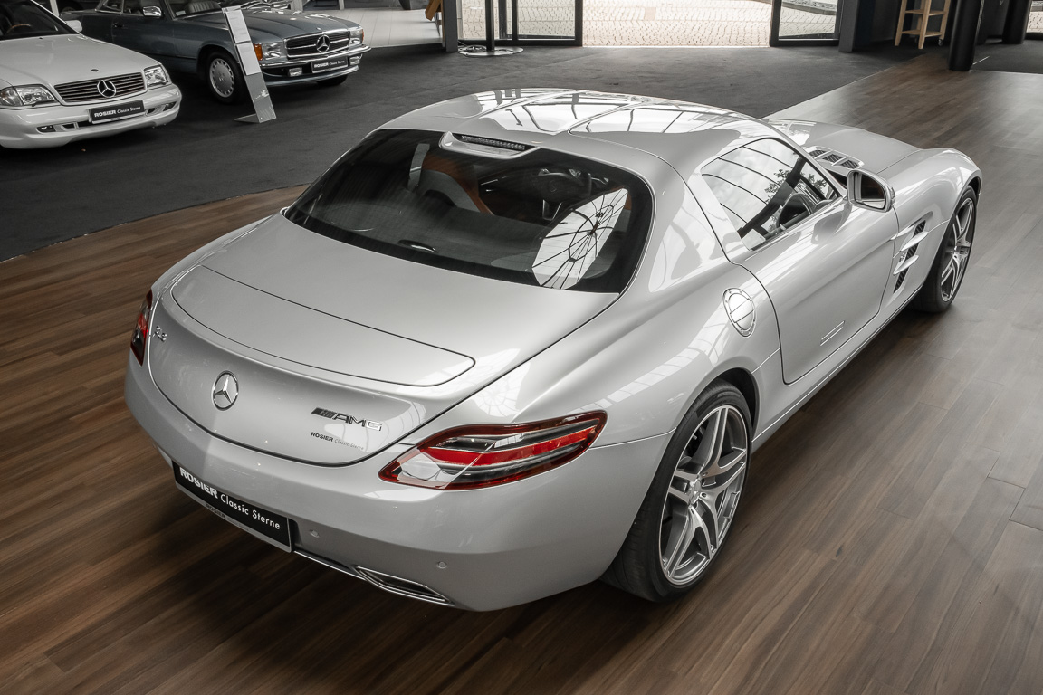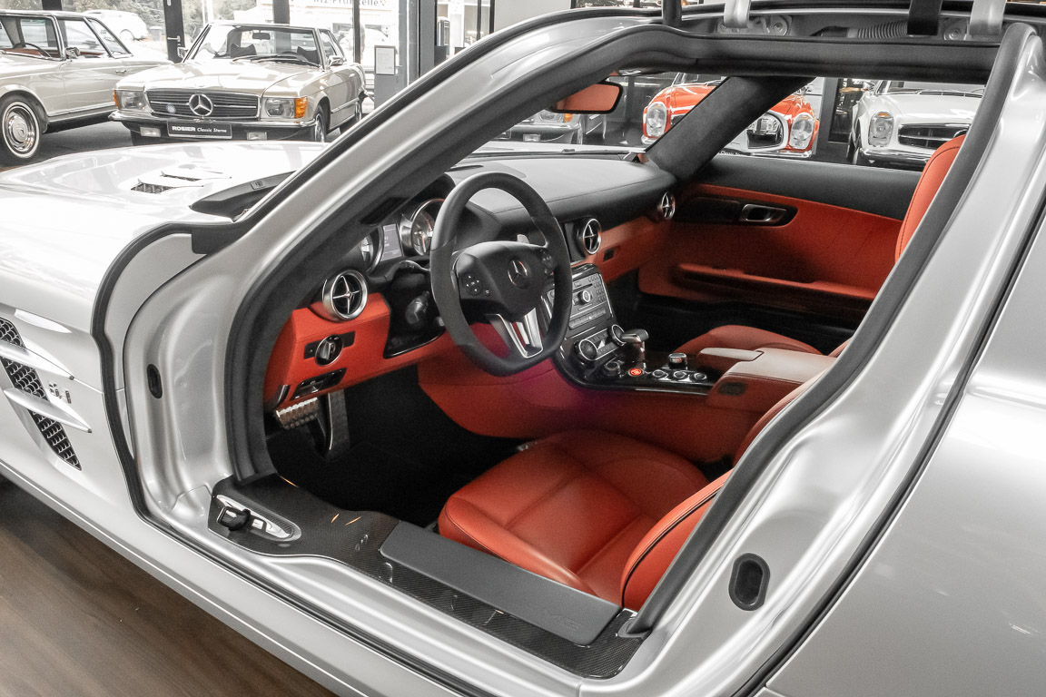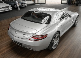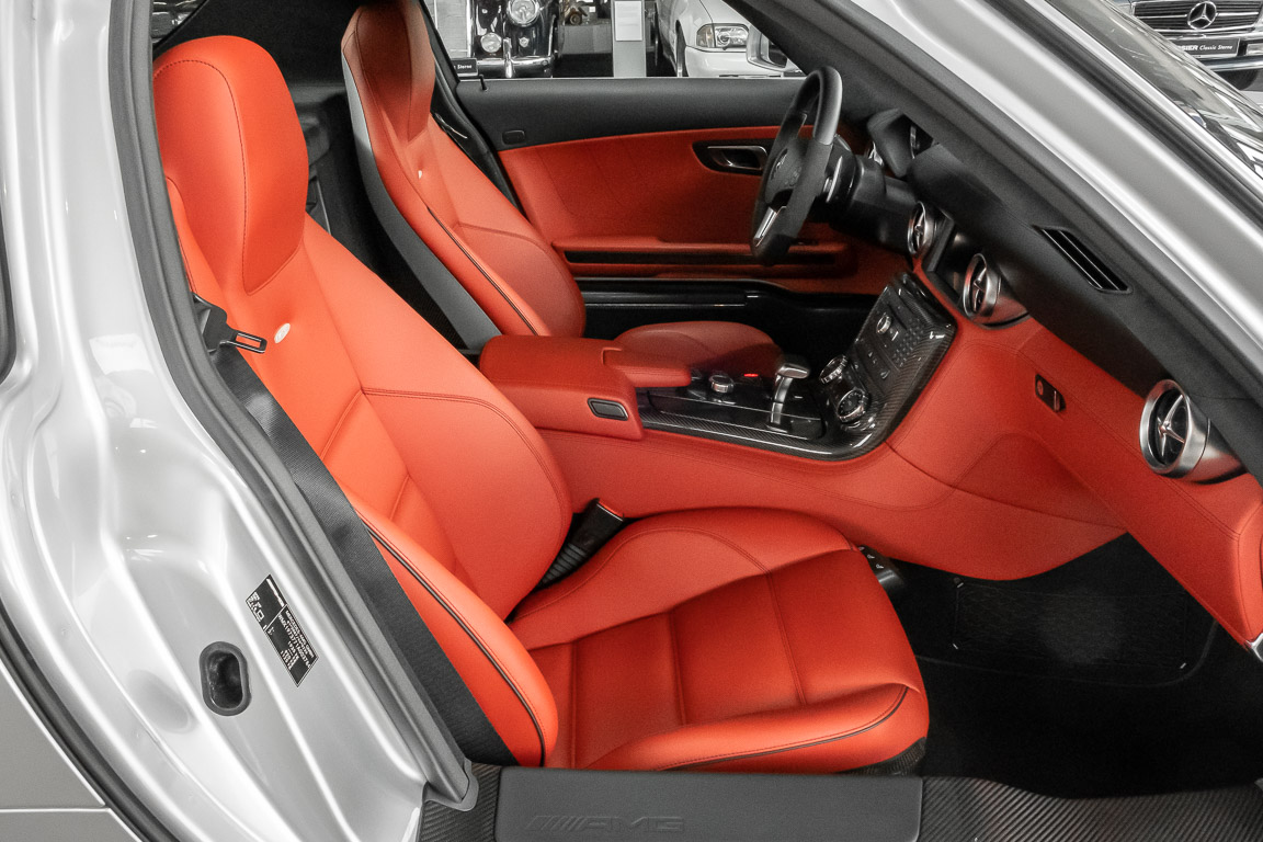 Wir freuen uns, Ihnen dieses SLS Sensations-Coupé anbieten zu dürfen. Das Fahrzeug präsentiert sich mit einer Laufleistung von nicht einmal 3.000 Kilometern im absoluten Neuwagenzustand. Der Besteller und bislang einziger Vorbesitzer sah wohl voraus, welch anziehender Mythos sich um diese Modelle bilden sollten und entschied sich, das Fahrzeug unbenutzt zu lassen. Lediglich zu Erhaltungs- und Servicefahrten – und stets behutsam – wurde das Fahrzeug bewegt. Nur so konnte das ungetrübte, perfekte Erscheinungsbild über all die Jahre erhalten bleiben. Der unbenutzte Innenraum und die neuwertige Technik lassen den Eindruck entstehen, in einem Neuwagen zu sitzen. Selbst der Neuwagengeruch scheint noch in der Luft zu liegen. Eine einmalige Gelegenheit für Sammler und Enthusiasten.