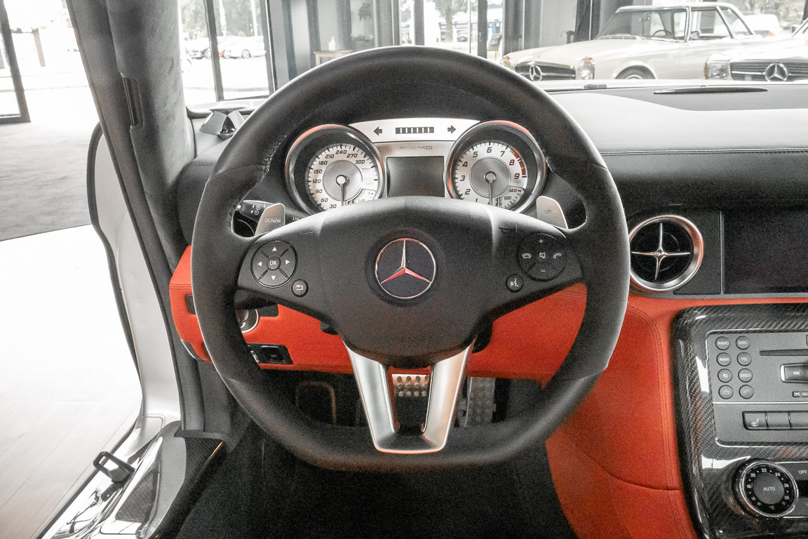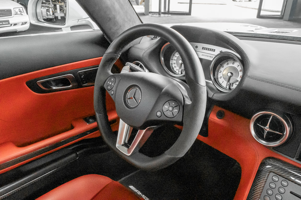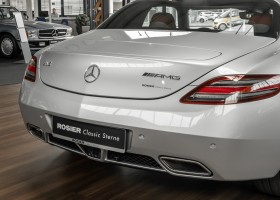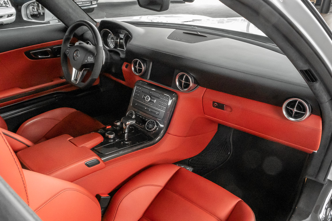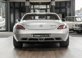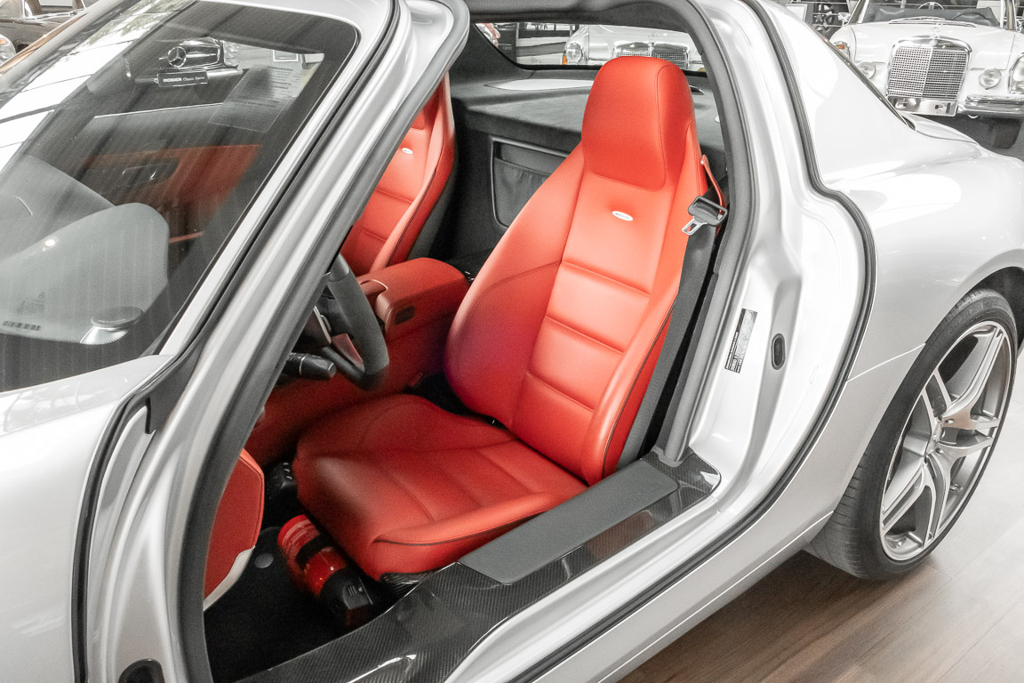 Wir freuen uns, Ihnen dieses SLS Sensations-Coupé anbieten zu dürfen. Das Fahrzeug präsentiert sich mit einer Laufleistung von nicht einmal 3.000 Kilometern im absoluten Neuwagenzustand. Der Besteller und bislang einziger Vorbesitzer sah wohl voraus, welch anziehender Mythos sich um diese Modelle bilden sollten und entschied sich, das Fahrzeug unbenutzt zu lassen. Lediglich zu Erhaltungs- und Servicefahrten – und stets behutsam – wurde das Fahrzeug bewegt. Nur so konnte das ungetrübte, perfekte Erscheinungsbild über all die Jahre erhalten bleiben. Der unbenutzte Innenraum und die neuwertige Technik lassen den Eindruck entstehen, in einem Neuwagen zu sitzen. Selbst der Neuwagengeruch scheint noch in der Luft zu liegen. Eine einmalige Gelegenheit für Sammler und Enthusiasten.