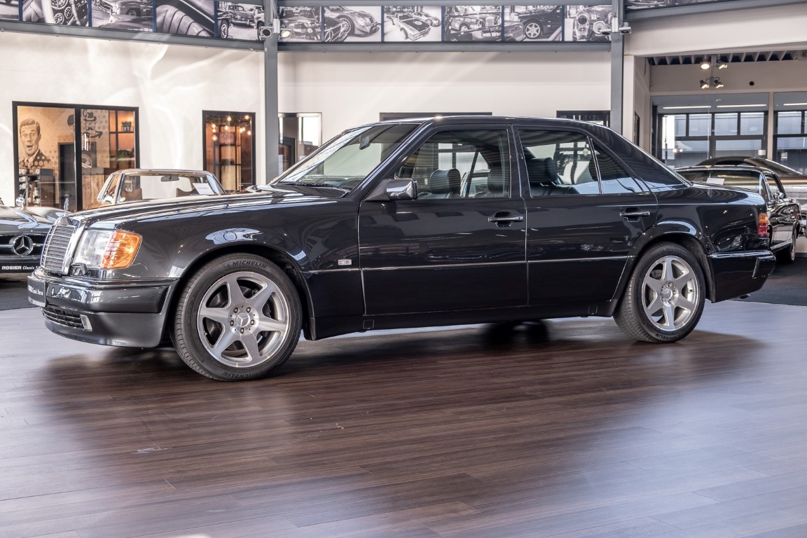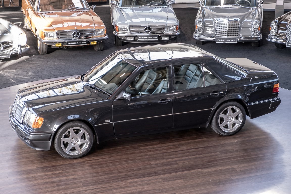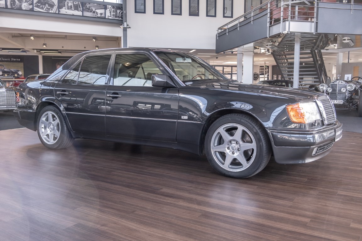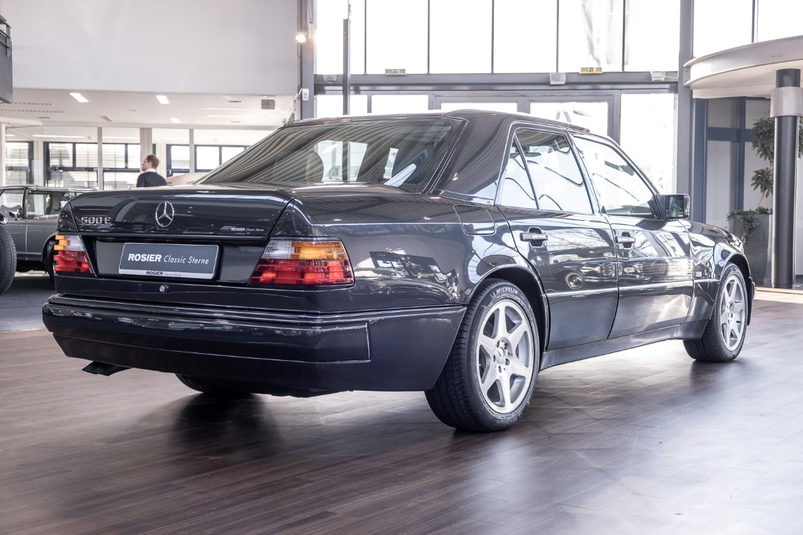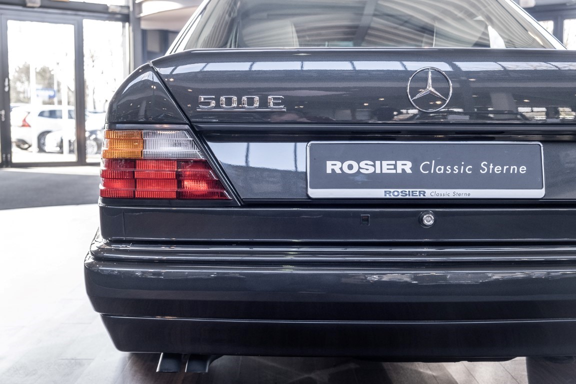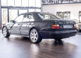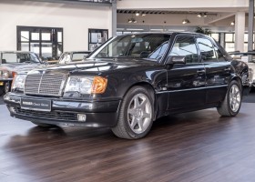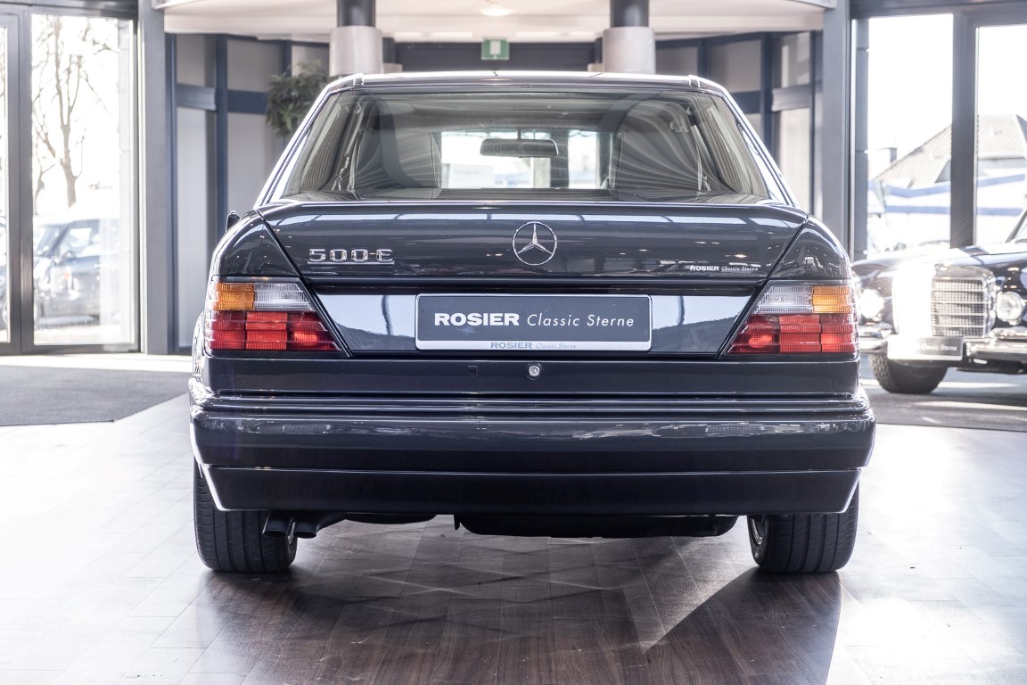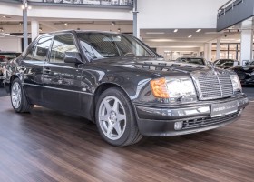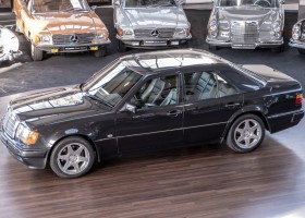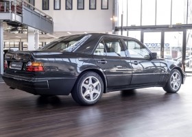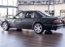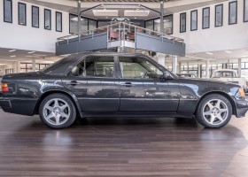Dieser wundervolle 500E der so hoch gelobten Baureihe 124 präsentiert sich in edlem Blauschwarz Metallic in Kombination mit perforiertem Leder in Schwarz. Im April 1993 wurde er an seinen Erstbesitzer in Deutschland ausgeliefert und ging im Anschluss ins ferne Japan. Dort verblieb das Fahrzeug bis es Ende 2019 nach Deutschland heimkehrte.