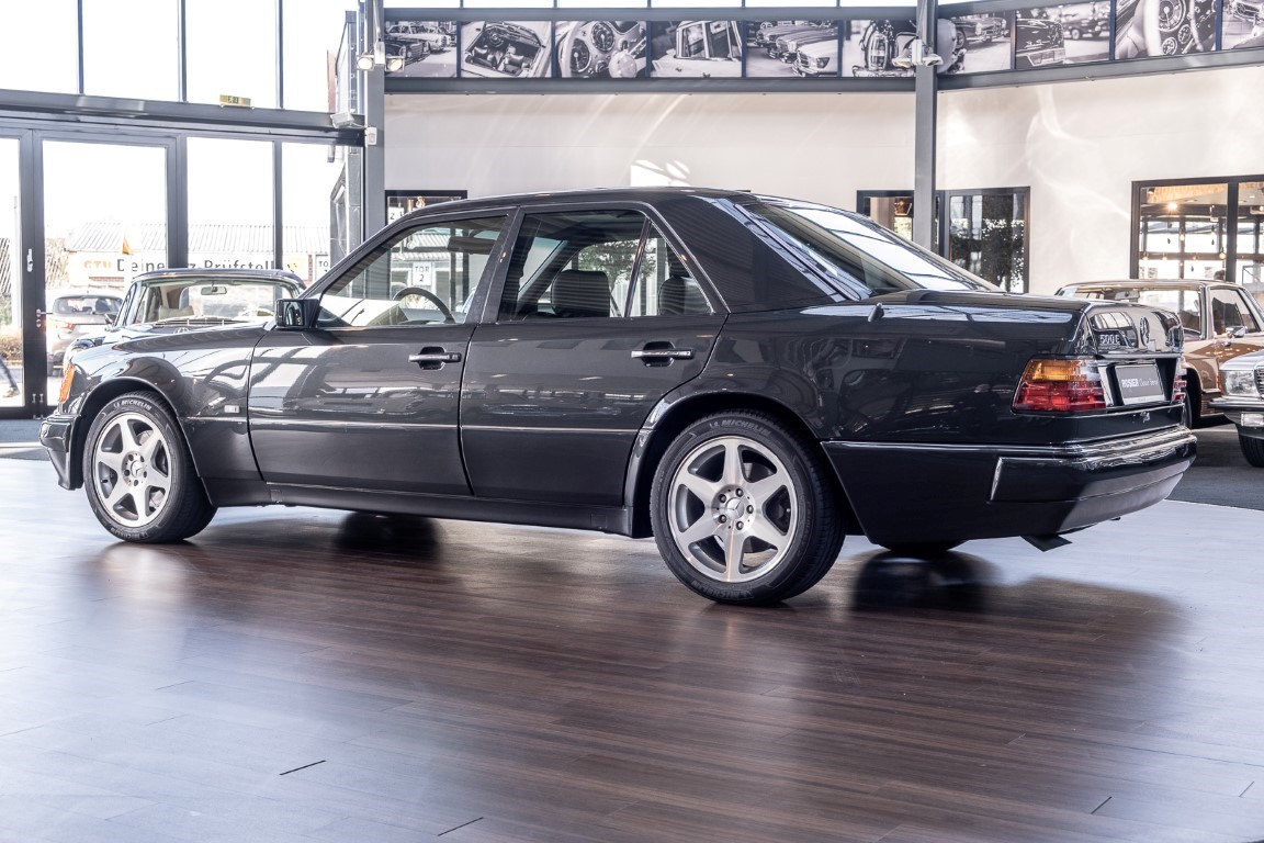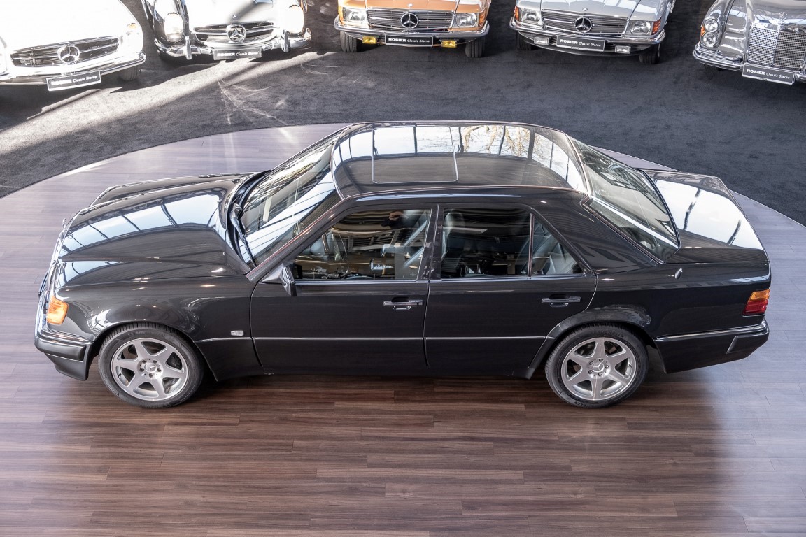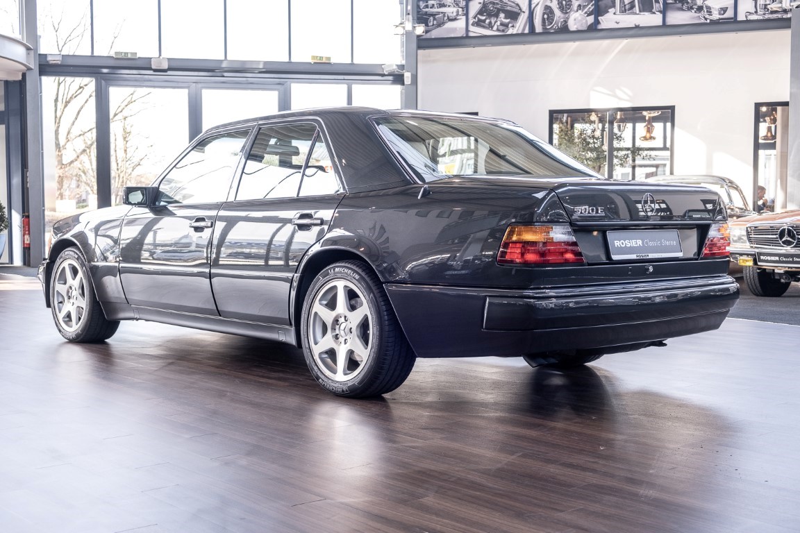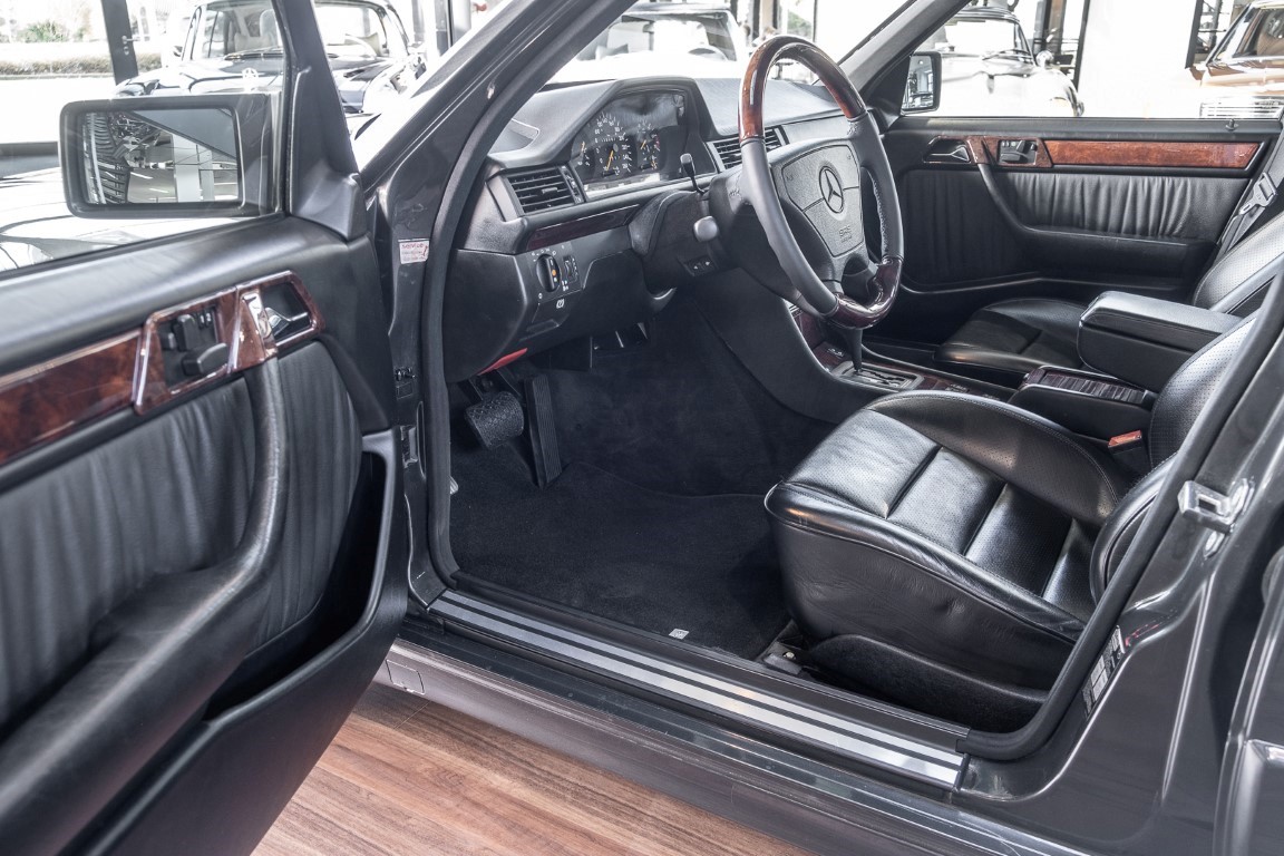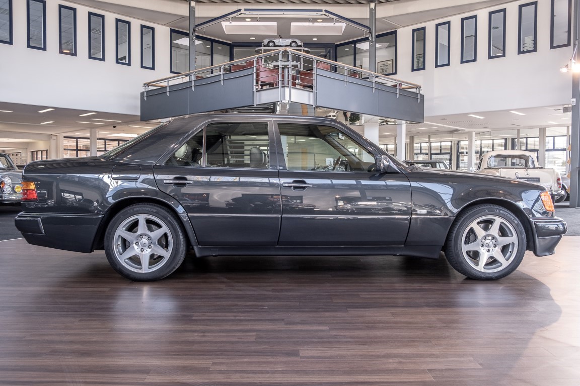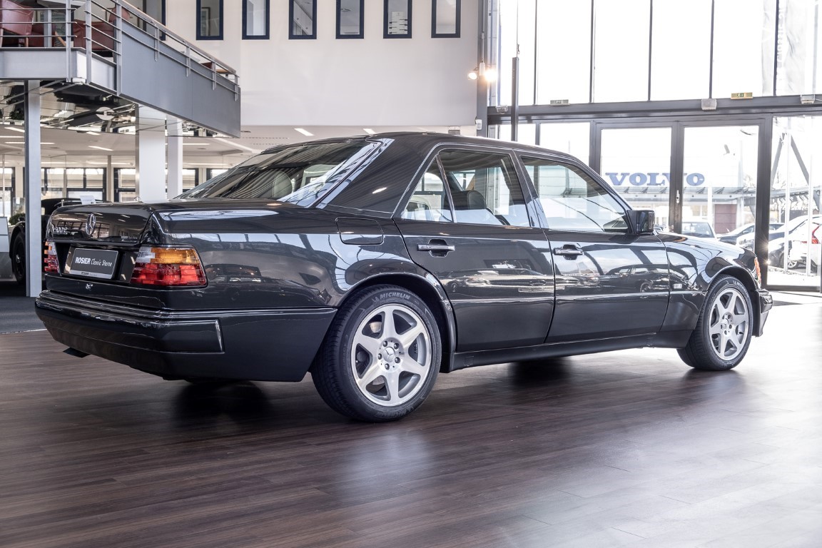 Dieser wundervolle 500E der so hoch gelobten Baureihe 124 präsentiert sich in edlem Blauschwarz Metallic in Kombination mit perforiertem Leder in Schwarz. Im April 1993 wurde er an seinen Erstbesitzer in Deutschland ausgeliefert und ging im Anschluss ins ferne Japan. Dort verblieb das Fahrzeug bis es Ende 2019 nach Deutschland heimkehrte.