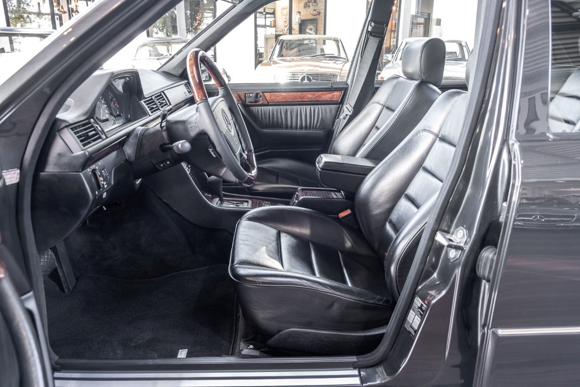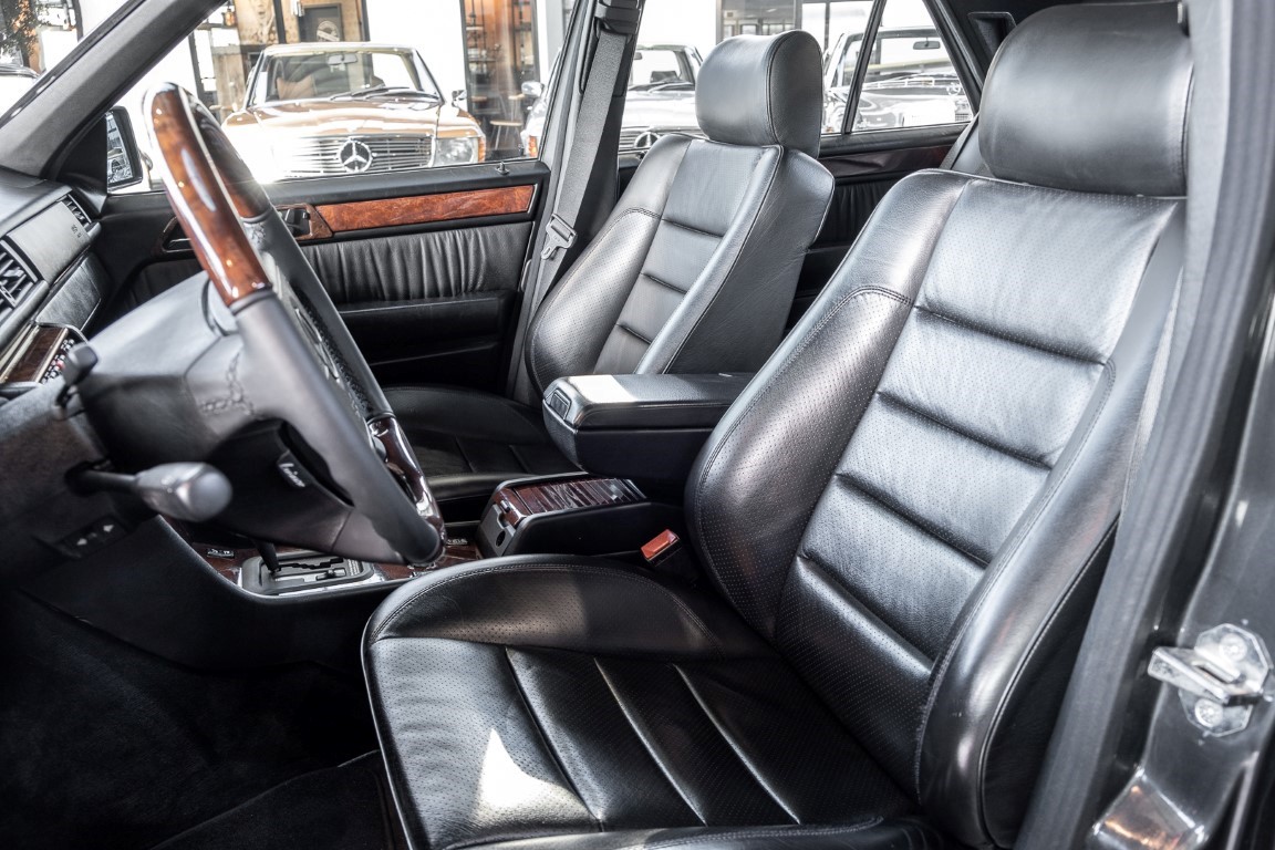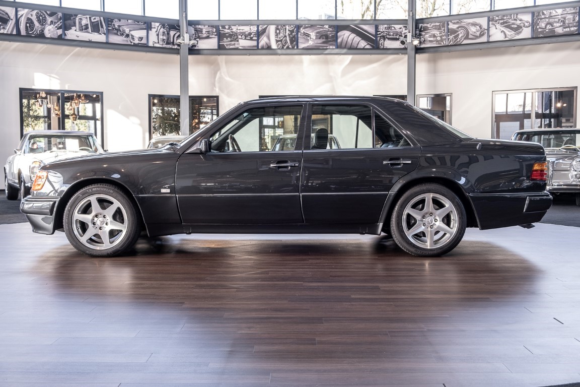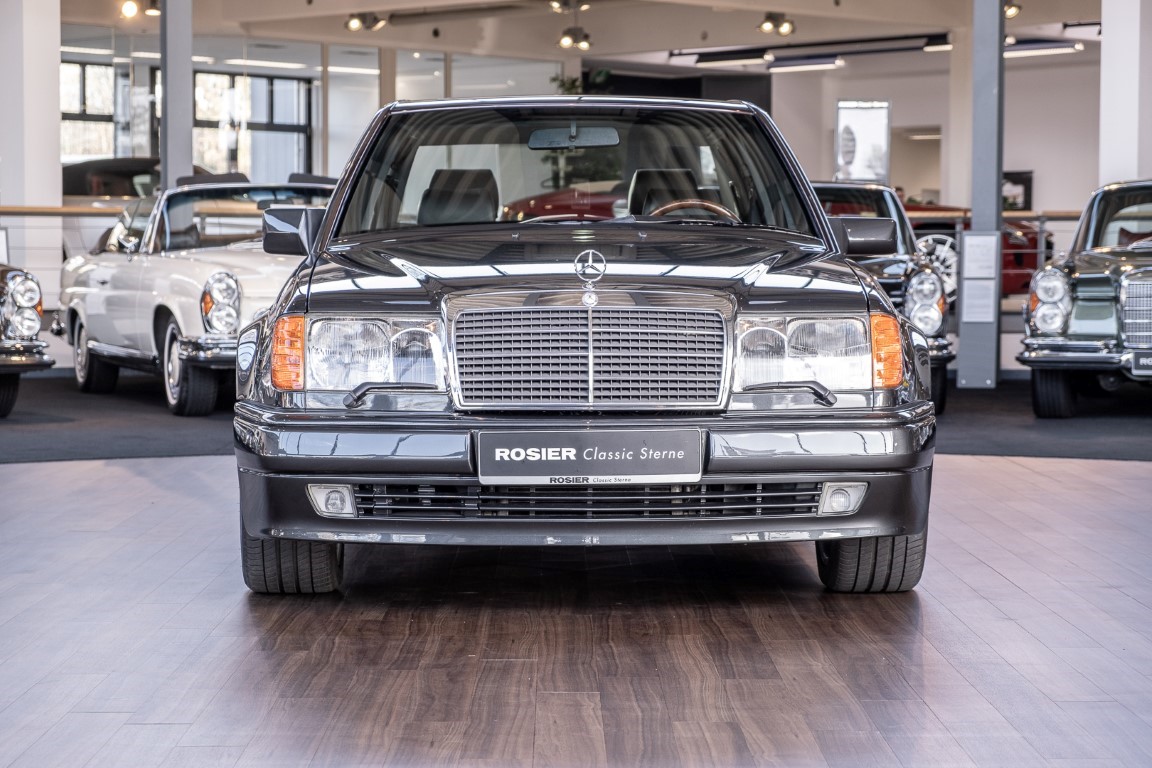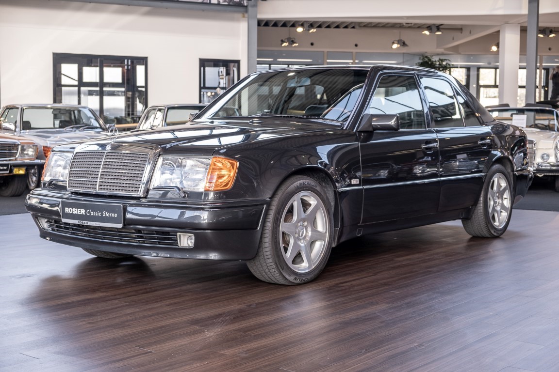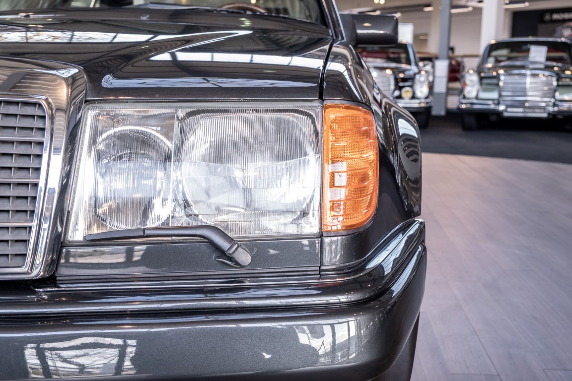 Dieser wundervolle 500E der so hoch gelobten Baureihe 124 präsentiert sich in edlem Blauschwarz Metallic in Kombination mit perforiertem Leder in Schwarz. Im April 1993 wurde er an seinen Erstbesitzer in Deutschland ausgeliefert und ging im Anschluss ins ferne Japan. Dort verblieb das Fahrzeug bis es Ende 2019 nach Deutschland heimkehrte.