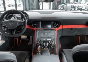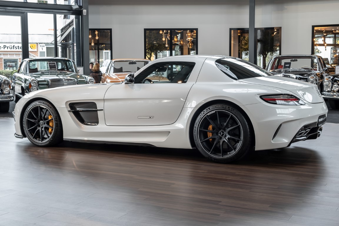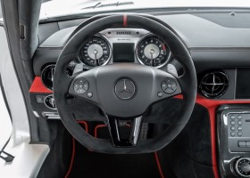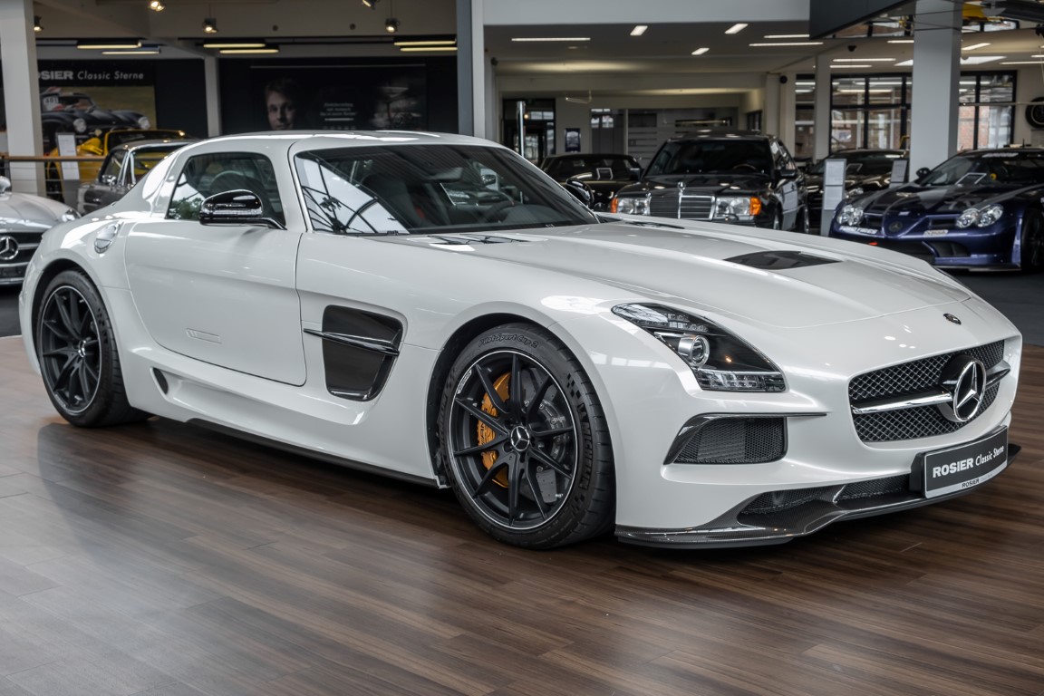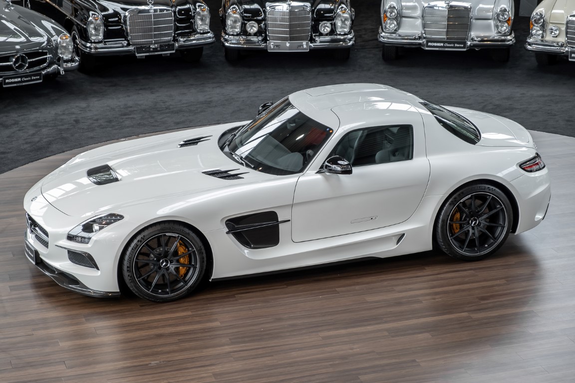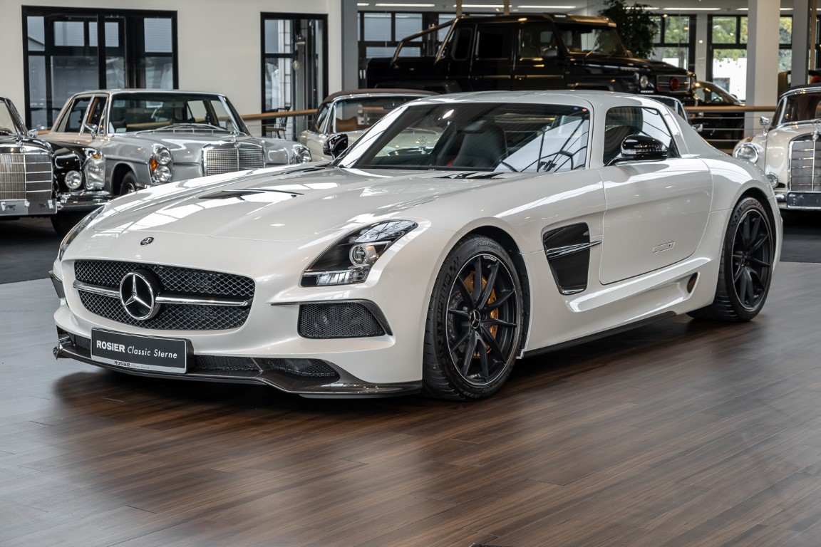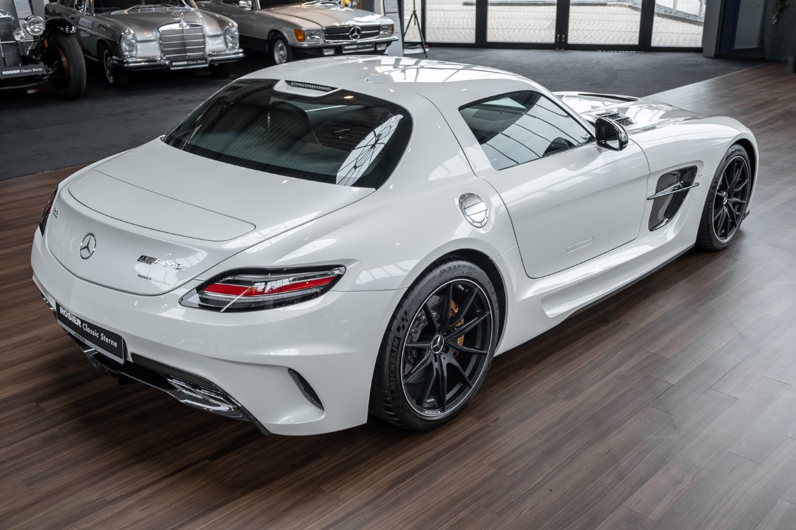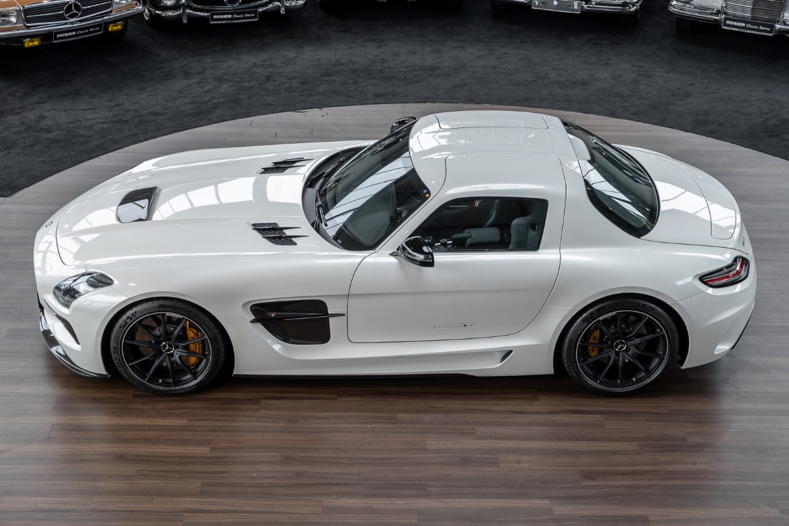 June 2013 saw the official sales launch of the high-end version of the gullwing, the SLS AMG Coupé Black Series. Whoever wanted this super sports coupé inspired by the racing version SLS AMG GT3 had to be fast: Because the mere 408 units were eagerly awaited by collectors from all over the world and were sold out immediately. The fifth Black Series model from Mercedes-AMG fascinated its enthusiasts with its breathtaking design, outstanding driving dynamics and consistent lightweight construction. With an unladen weight of 1550 kilograms and an engine output of 631 hp at 7400 rpm, the SLS AMG Black Series achieves a power-to-weight ratio of 2.45 kg/hp. This catapults the most dynamic street-legal gullwing to 100 km/h in just 3.6 seconds.