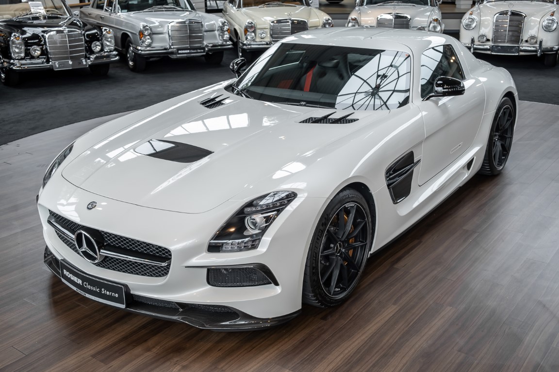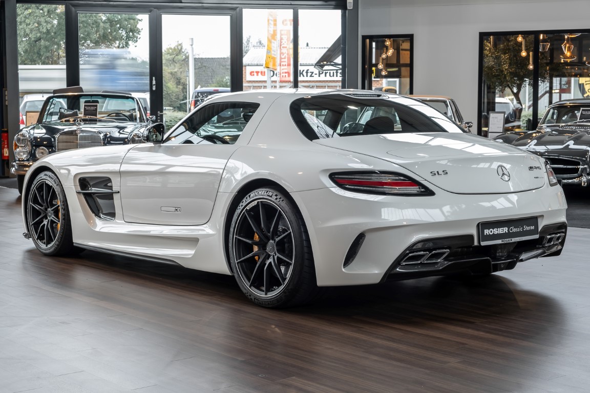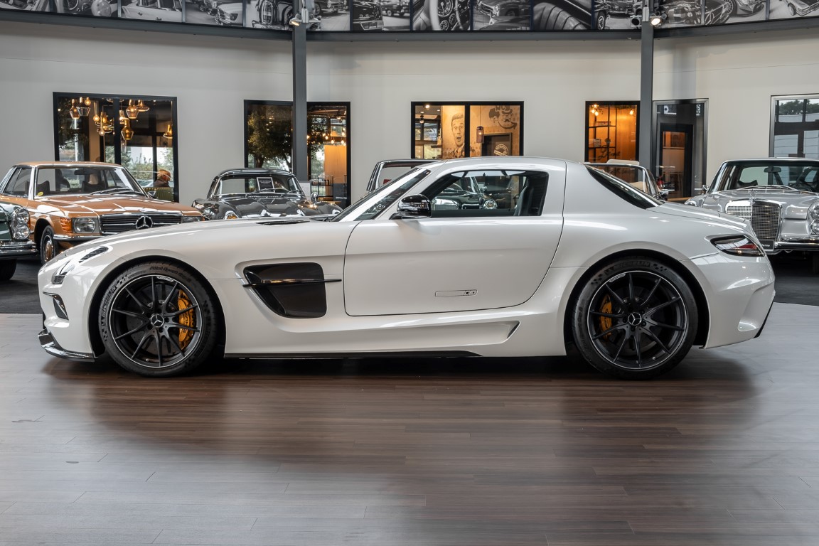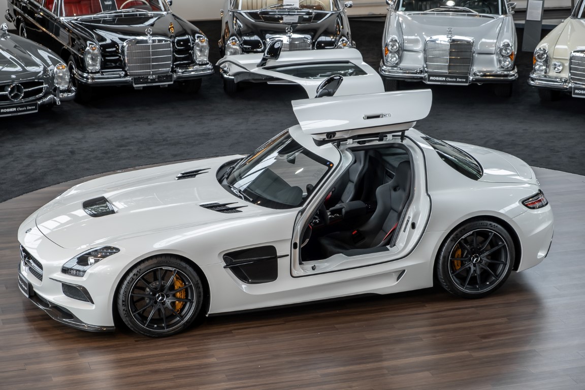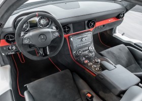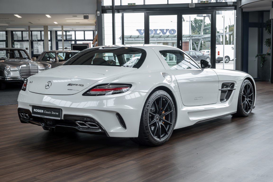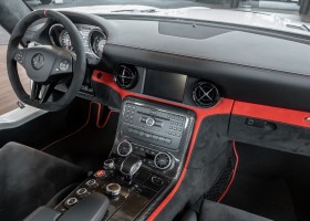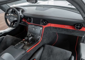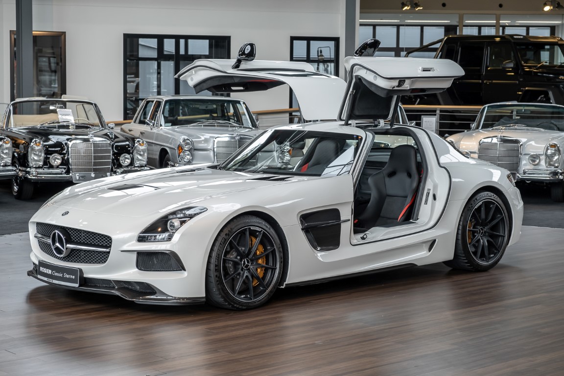 June 2013 saw the official sales launch of the high-end version of the gullwing, the SLS AMG Coupé Black Series. Whoever wanted this super sports coupé inspired by the racing version SLS AMG GT3 had to be fast: Because the mere 408 units were eagerly awaited by collectors from all over the world and were sold out immediately. The fifth Black Series model from Mercedes-AMG fascinated its enthusiasts with its breathtaking design, outstanding driving dynamics and consistent lightweight construction. With an unladen weight of 1550 kilograms and an engine output of 631 hp at 7400 rpm, the SLS AMG Black Series achieves a power-to-weight ratio of 2.45 kg/hp. This catapults the most dynamic street-legal gullwing to 100 km/h in just 3.6 seconds.