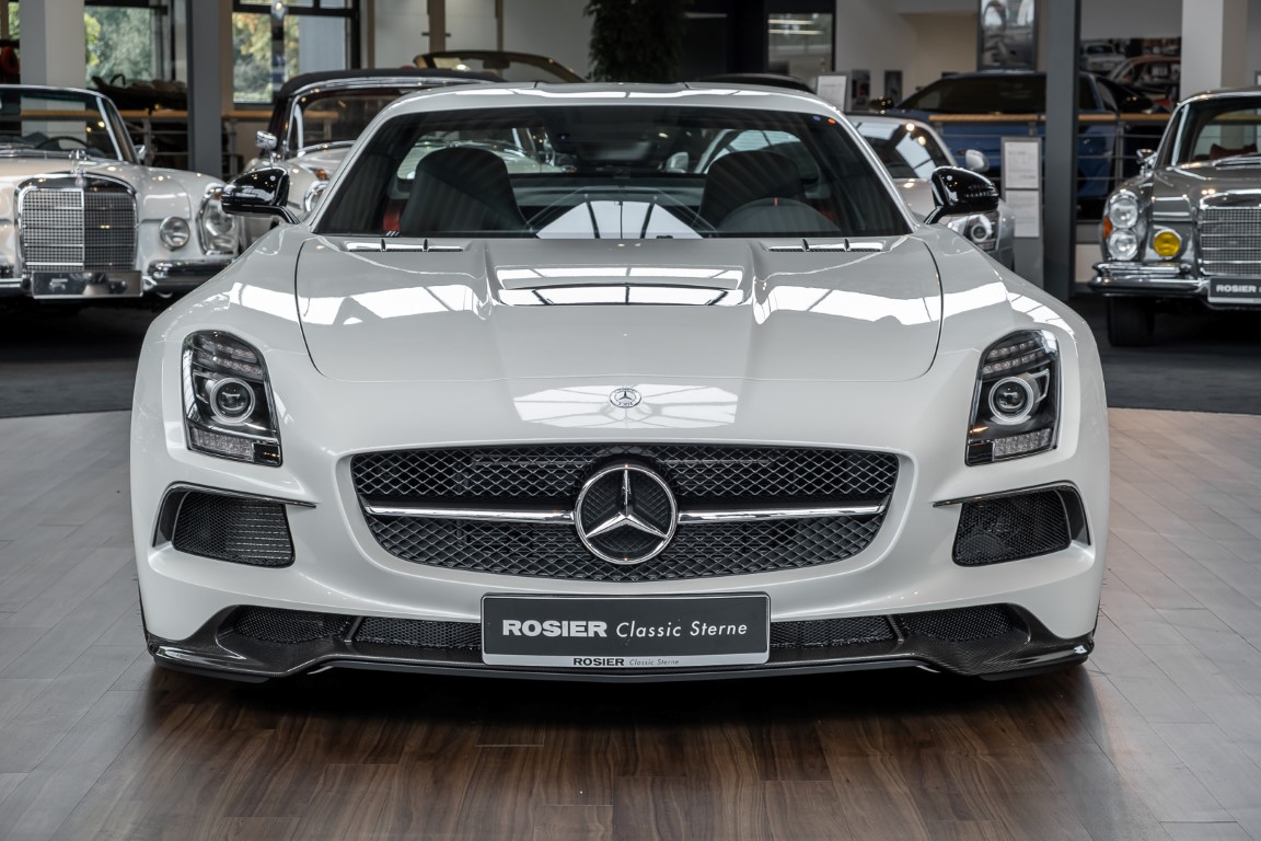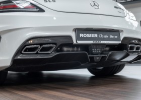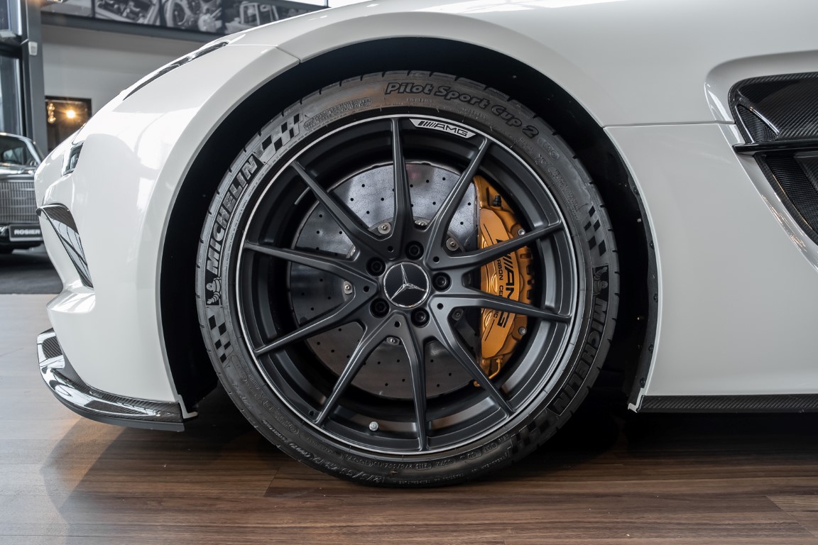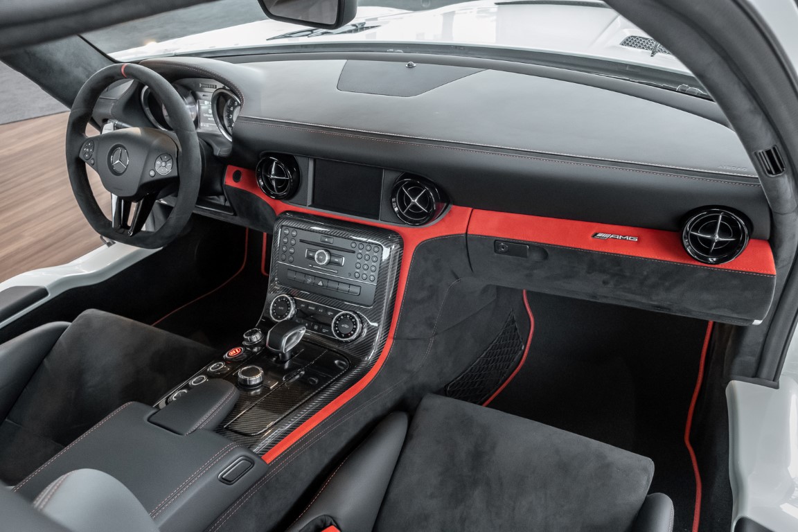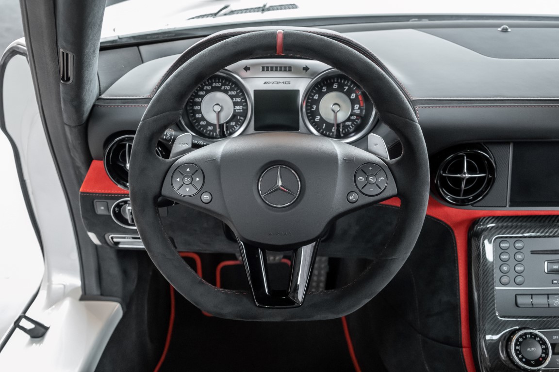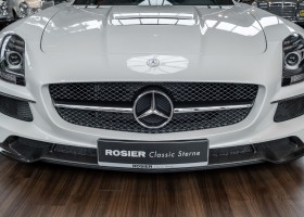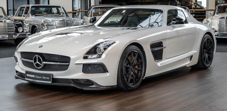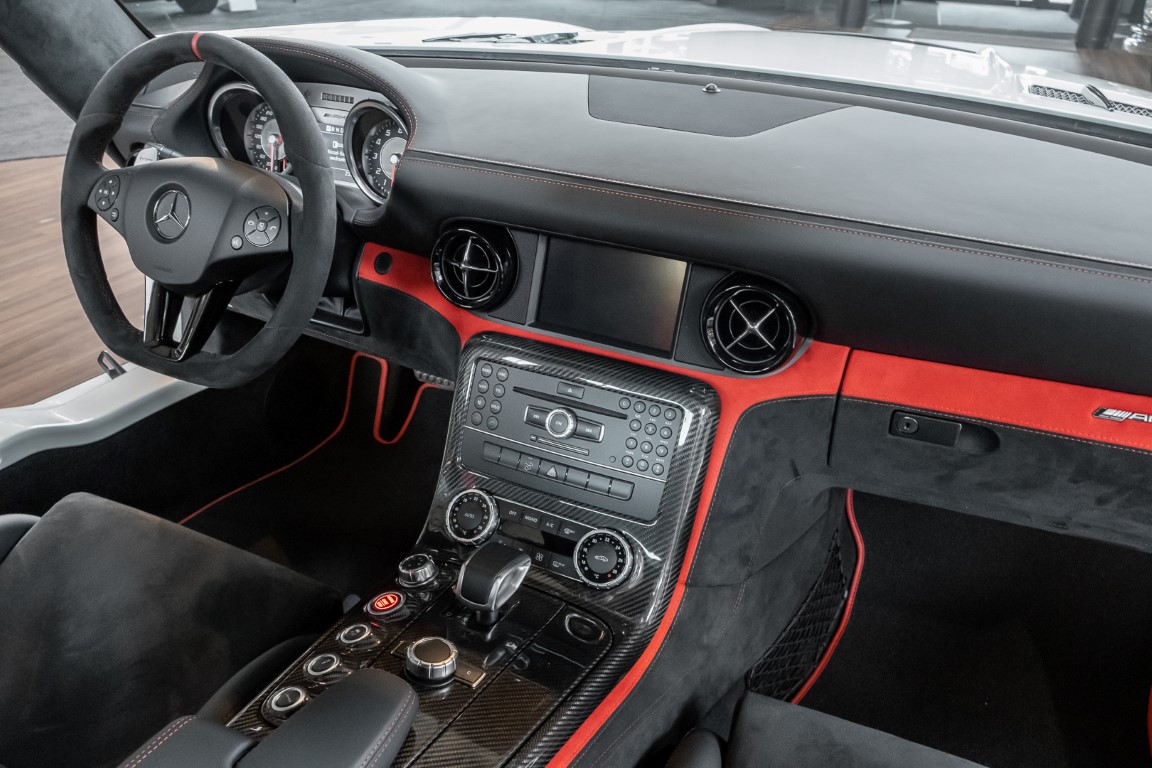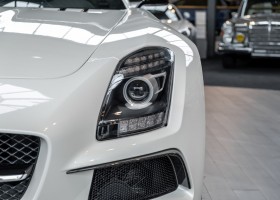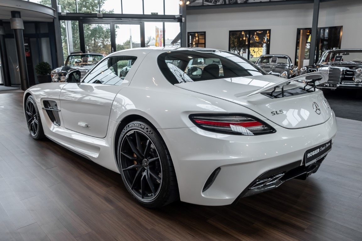 June 2013 saw the official sales launch of the high-end version of the gullwing, the SLS AMG Coupé Black Series. Whoever wanted this super sports coupé inspired by the racing version SLS AMG GT3 had to be fast: Because the mere 408 units were eagerly awaited by collectors from all over the world and were sold out immediately. The fifth Black Series model from Mercedes-AMG fascinated its enthusiasts with its breathtaking design, outstanding driving dynamics and consistent lightweight construction. With an unladen weight of 1550 kilograms and an engine output of 631 hp at 7400 rpm, the SLS AMG Black Series achieves a power-to-weight ratio of 2.45 kg/hp. This catapults the most dynamic street-legal gullwing to 100 km/h in just 3.6 seconds.