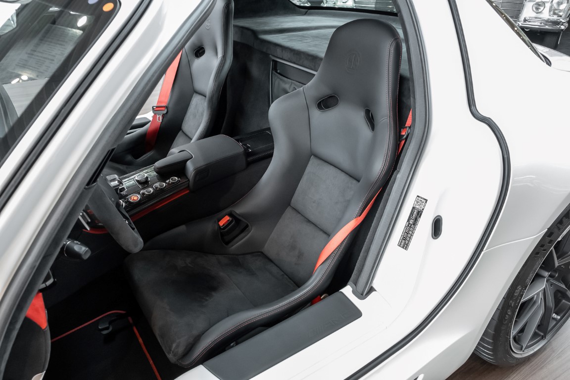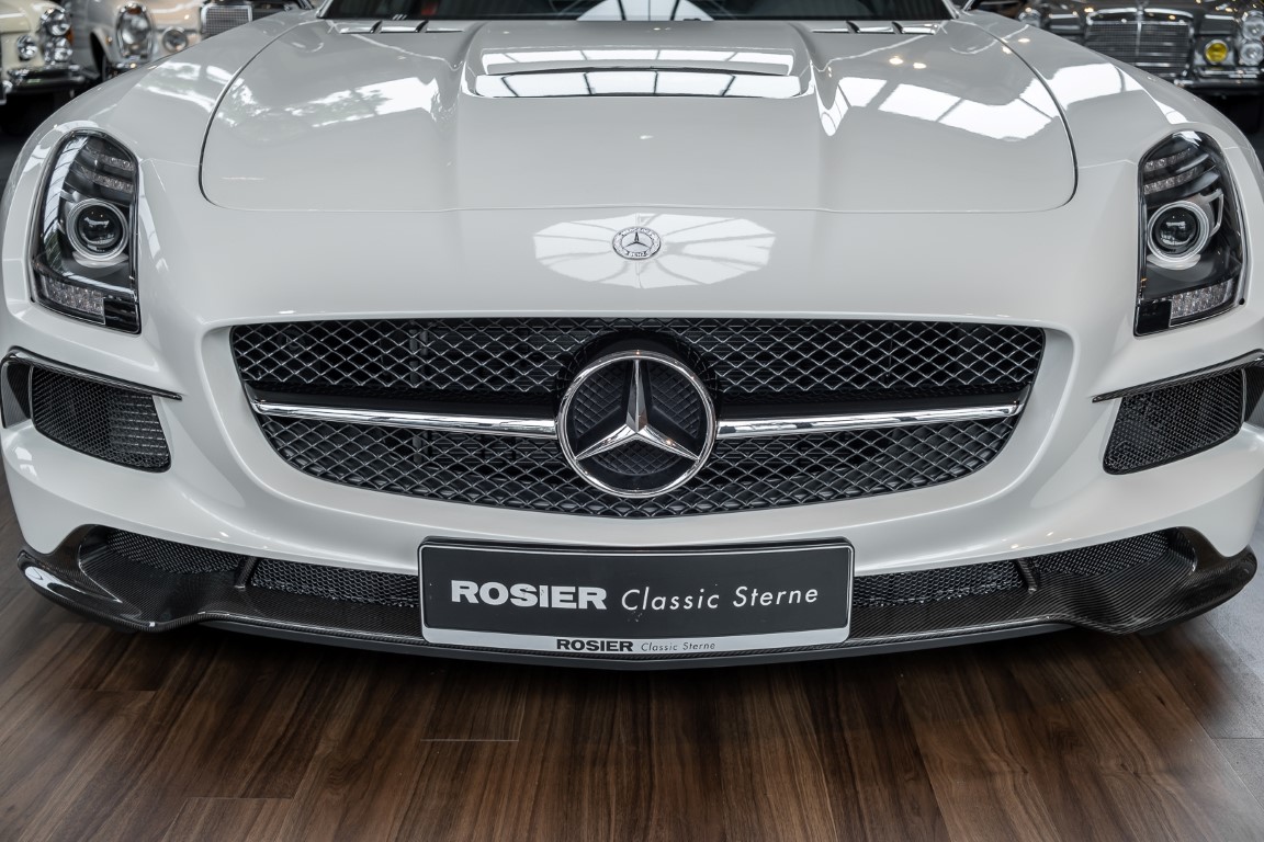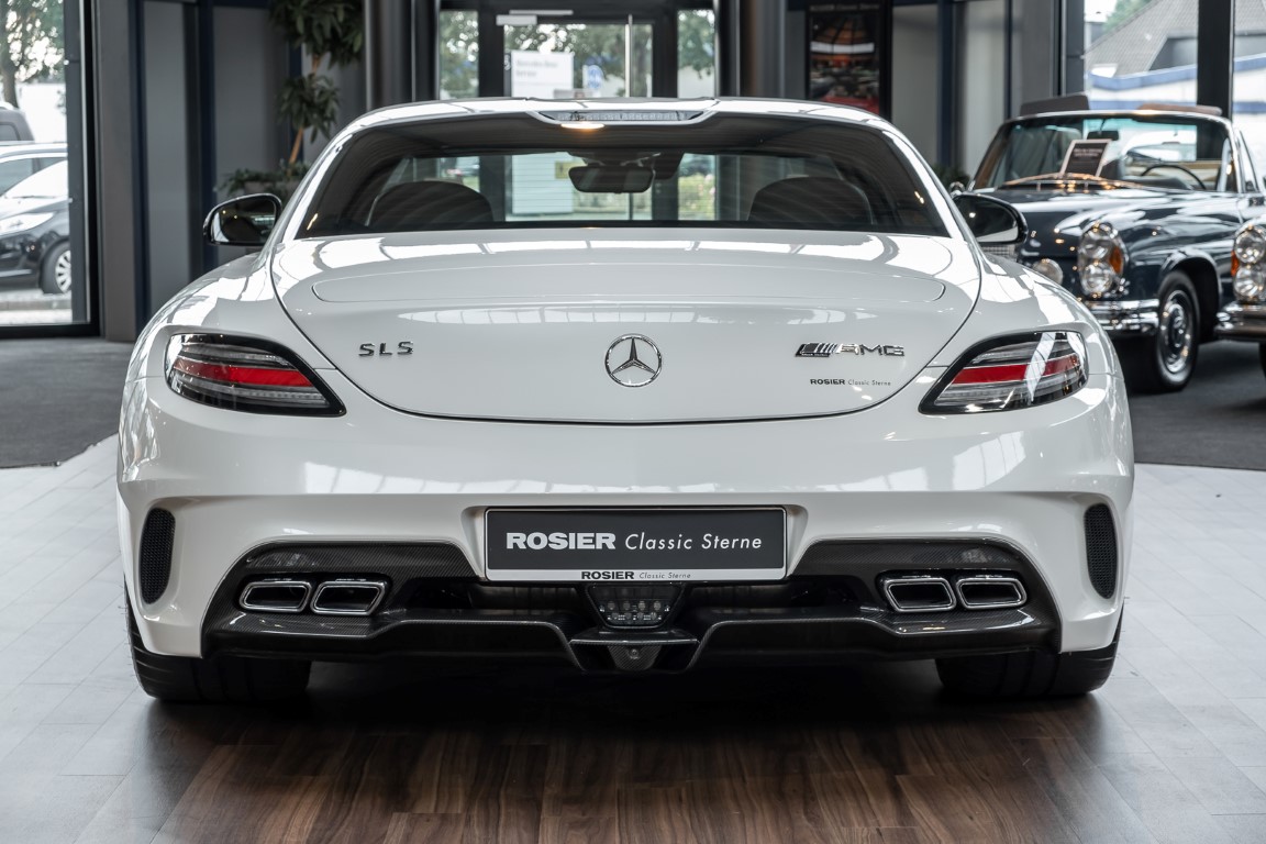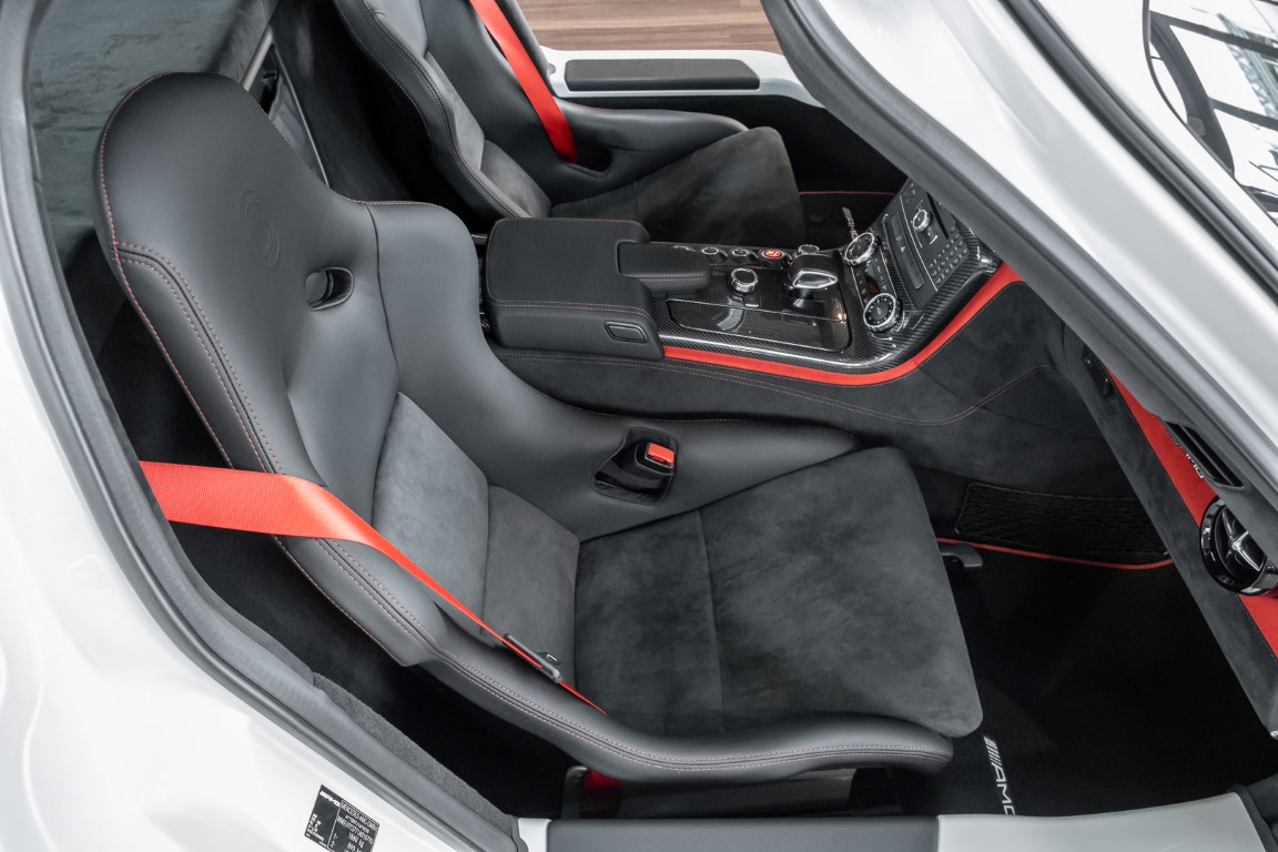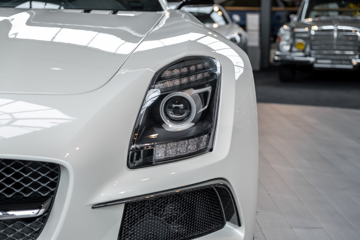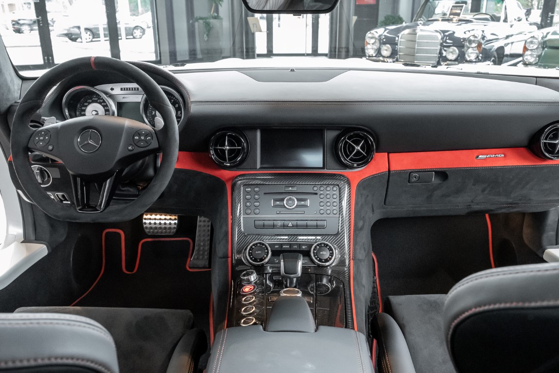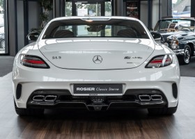 June 2013 saw the official sales launch of the high-end version of the gullwing, the SLS AMG Coupé Black Series. Whoever wanted this super sports coupé inspired by the racing version SLS AMG GT3 had to be fast: Because the mere 408 units were eagerly awaited by collectors from all over the world and were sold out immediately. The fifth Black Series model from Mercedes-AMG fascinated its enthusiasts with its breathtaking design, outstanding driving dynamics and consistent lightweight construction. With an unladen weight of 1550 kilograms and an engine output of 631 hp at 7400 rpm, the SLS AMG Black Series achieves a power-to-weight ratio of 2.45 kg/hp. This catapults the most dynamic street-legal gullwing to 100 km/h in just 3.6 seconds.