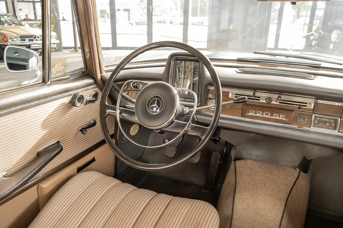 We are pleased to offer you this top-preserved, original 220 SEb sedan of the W111 series. The vehicle captivates by an indescribably great condition and a charm, which one can escape only with difficulty. According to the available documents, the elegant tail fin spent its first car life in southern Sweden near Gothenburg. A farmer born in 1946 is registered in the Swedish documents as vehicle owner. A marvelous imagination, which wonderful journeys by the dreamlike Göteburger surrounding countryside with this S-class were undertaken. With a sensational mileage of just 62,500 km, the vehicle presents itself in sensational top condition. An extensive conservation of all cavities and the underbody defied the sometimes rough Swedish climate and preserved the dream condition of this flagship sedan. A collector found the vehicle in 2016 and was immediately captivated by its 60s charm. Perfectly preserved, the fin generated a lot of interest and sympathy in his collection. From the collection, we may now sell the coveted matching numbers vehicle. Get in and experience the charm of this S-Class icon.