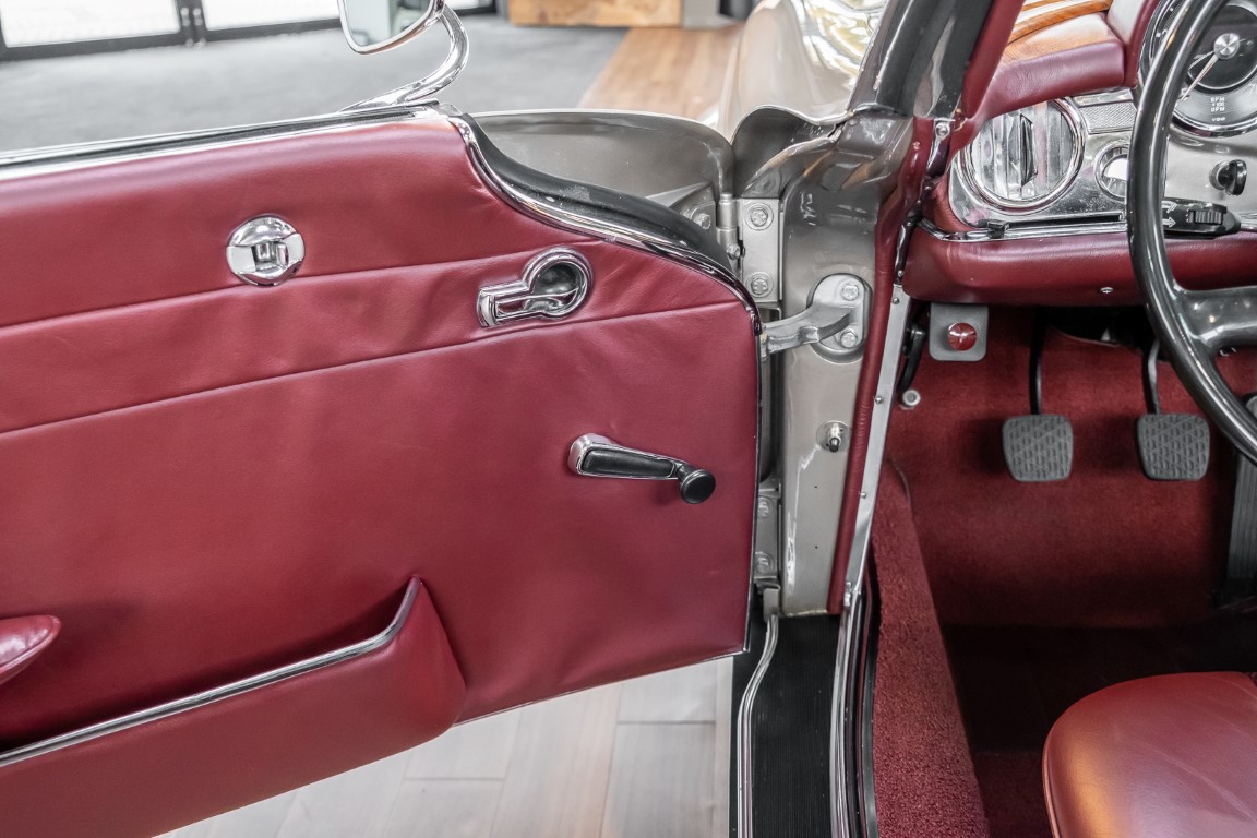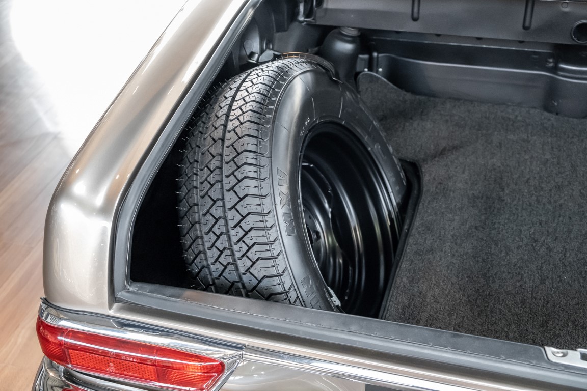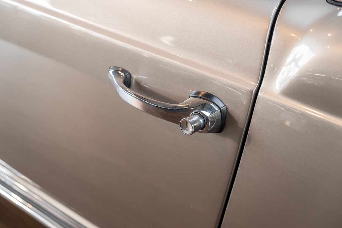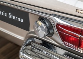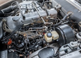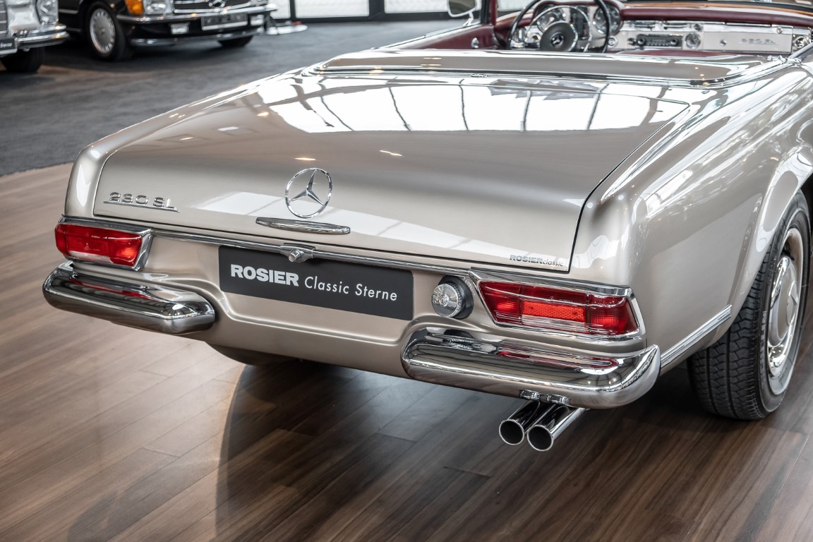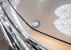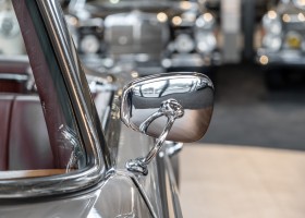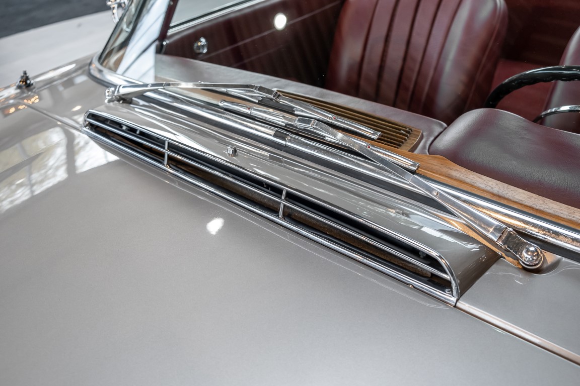 Here the car underwent a complete restoration: the body was completely stripped of all paint and received a new paint finish in the wonderfully matching color Beige Grey Metallic (DB 728). The engine, the transmission and the axles were overhauled. All auxiliary units were overhauled and renewed where necessary. A new interior in Bordeaux color and a new fabric top in Mercedes quality were installed. A power steering and color glass were retrofitted. In our manufactory, the vehicle had to undergo the strict glances of our specialists, who put their hands on the underbody of the vehicle once again to put the finishing touches on it.