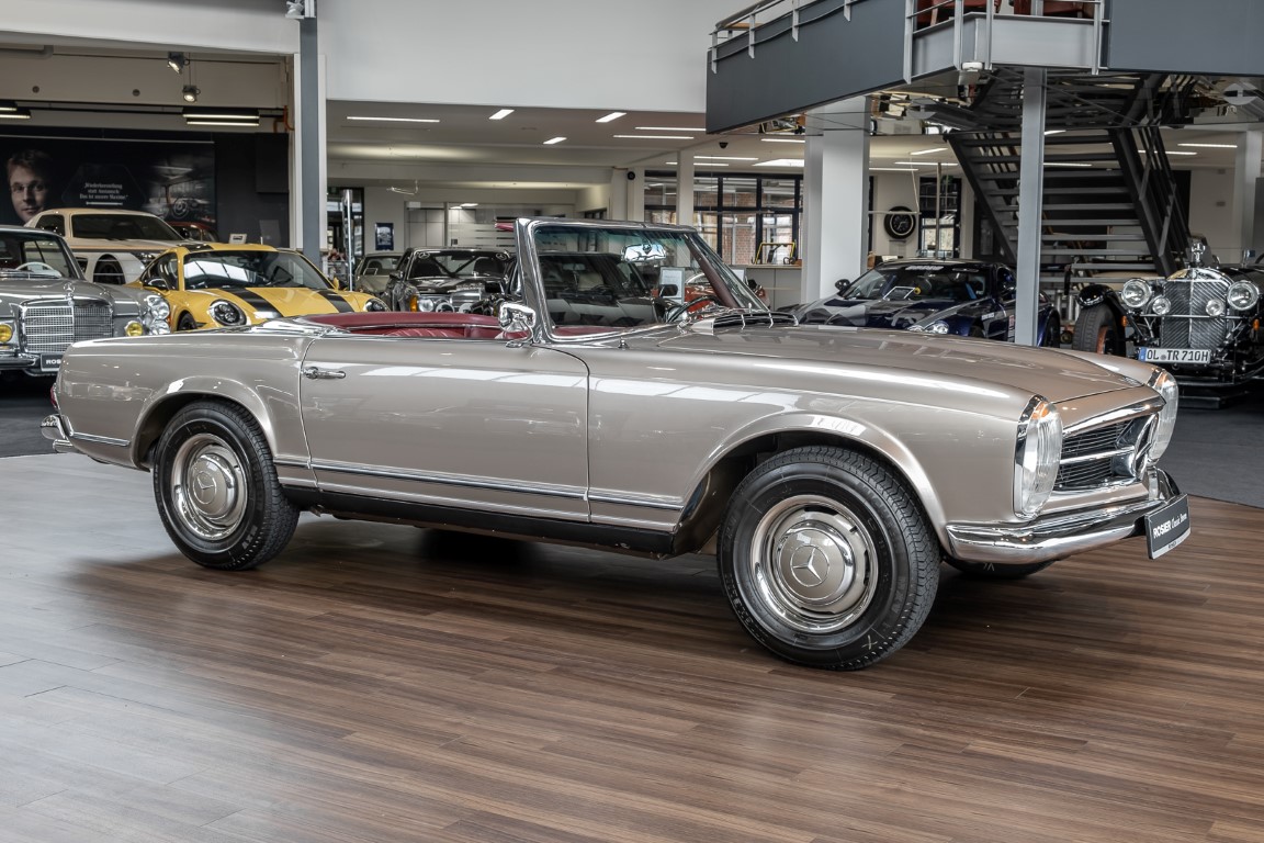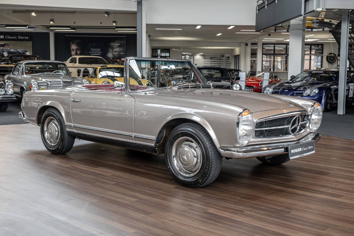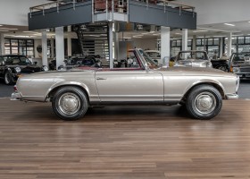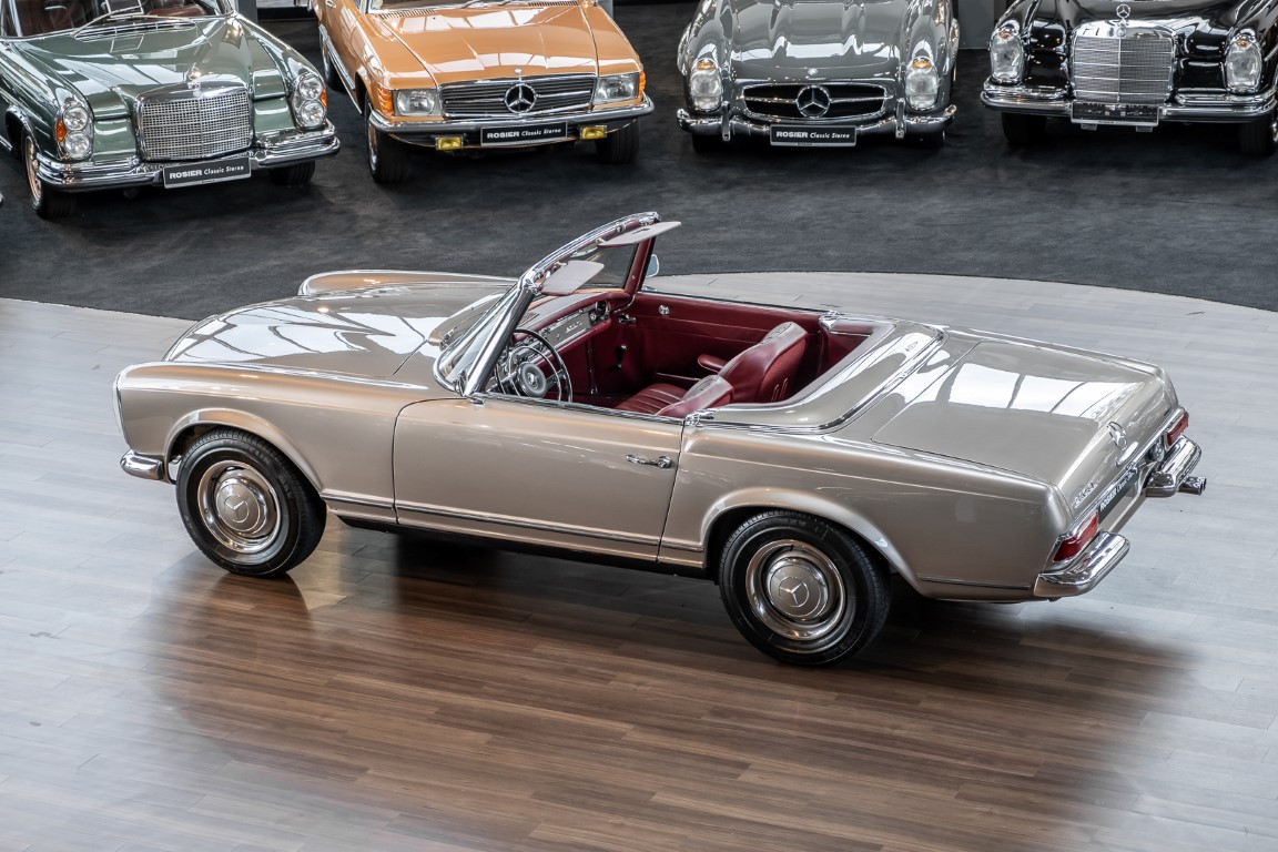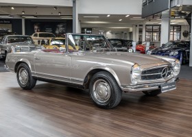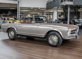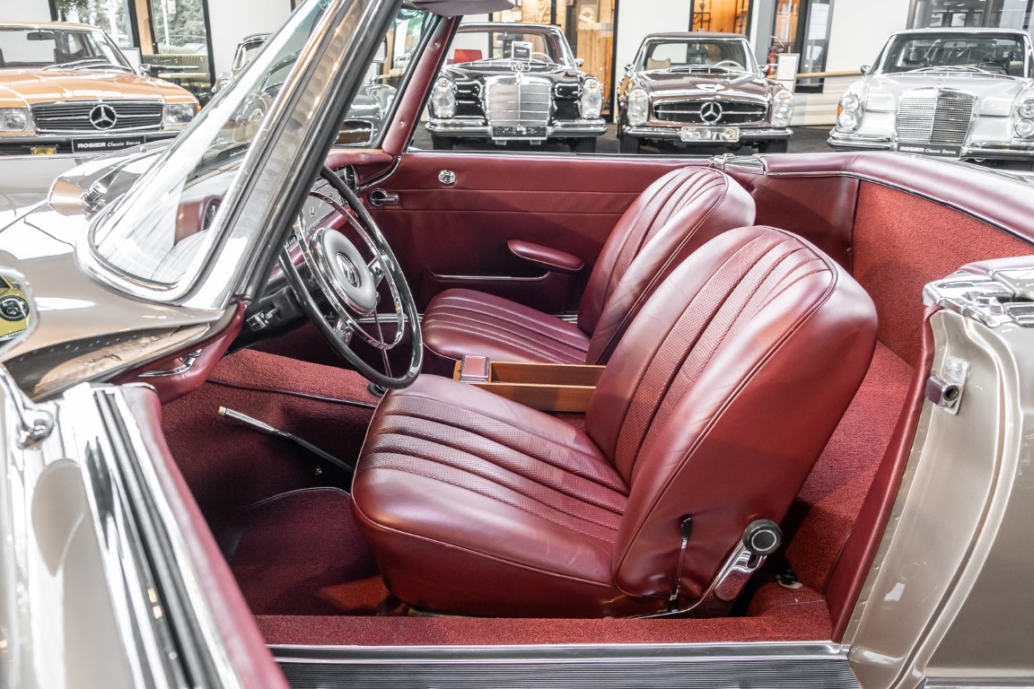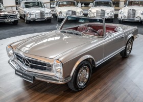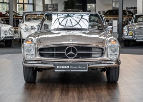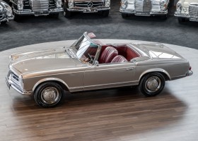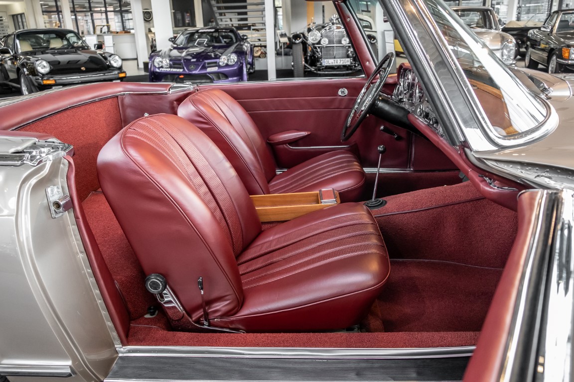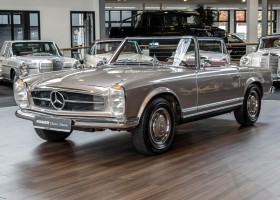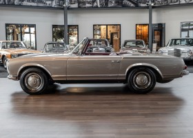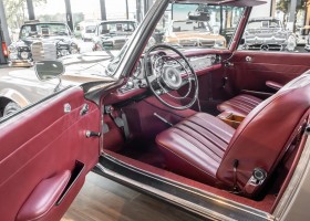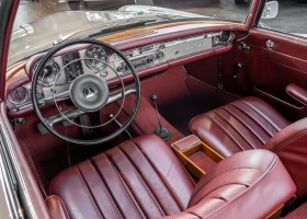 We are pleased to offer you this 230 SL pagoda from the first year of production 1963, which is very popular among collectors - which stands out from its later siblings due to the rare standing spare wheel. The vehicle comes from the sunny south of France, from the picturesque Coté d' Azur. A lady from neighbouring Italy owned this elegant pagoda for 32 years. In 2011, the pagoda, which was preserved in very good original condition, was sold and subsequently came to Germany.