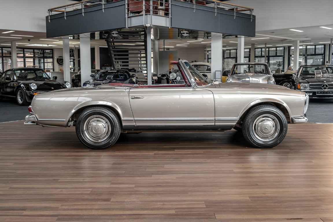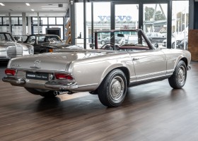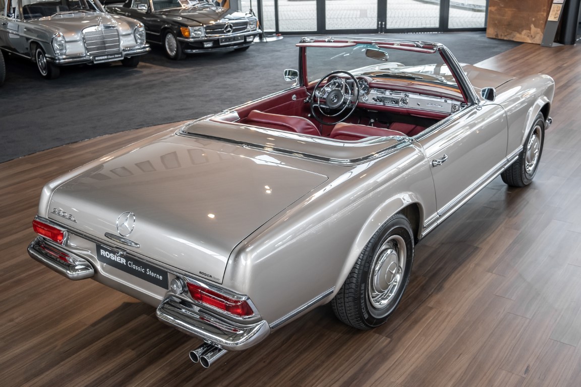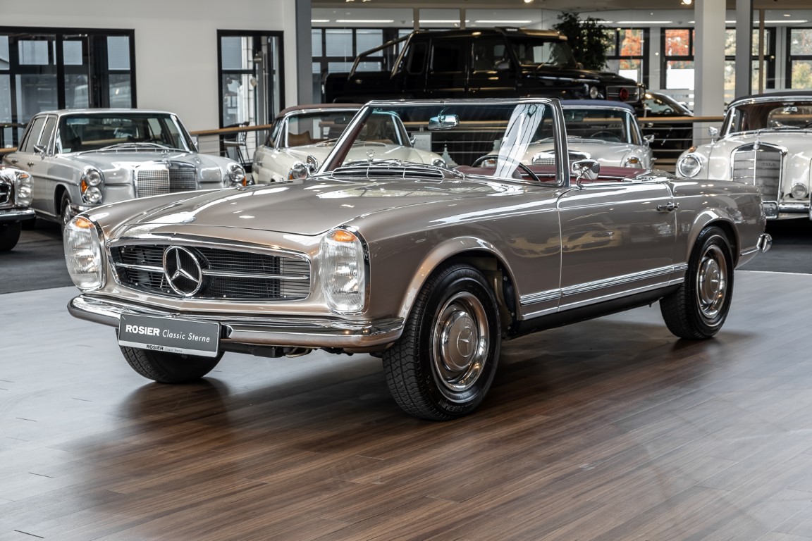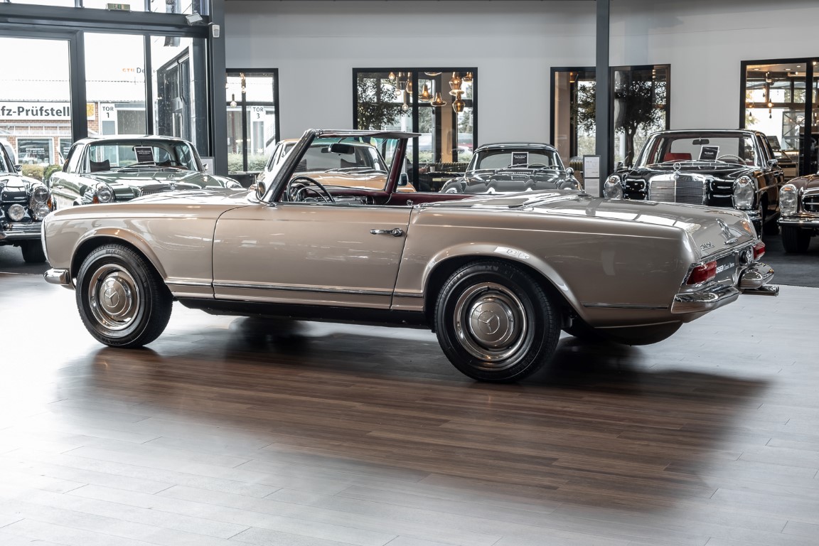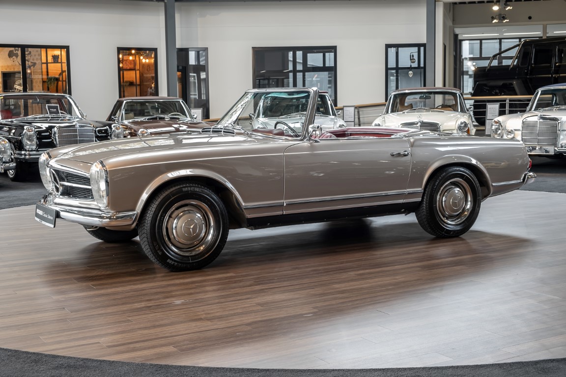 We are pleased to offer you this 230 SL pagoda from the first year of production 1963, which is very popular among collectors - which stands out from its later siblings due to the rare standing spare wheel. The vehicle comes from the sunny south of France, from the picturesque Coté d' Azur. A lady from neighbouring Italy owned this elegant pagoda for 32 years. In 2011, the pagoda, which was preserved in very good original condition, was sold and subsequently came to Germany.